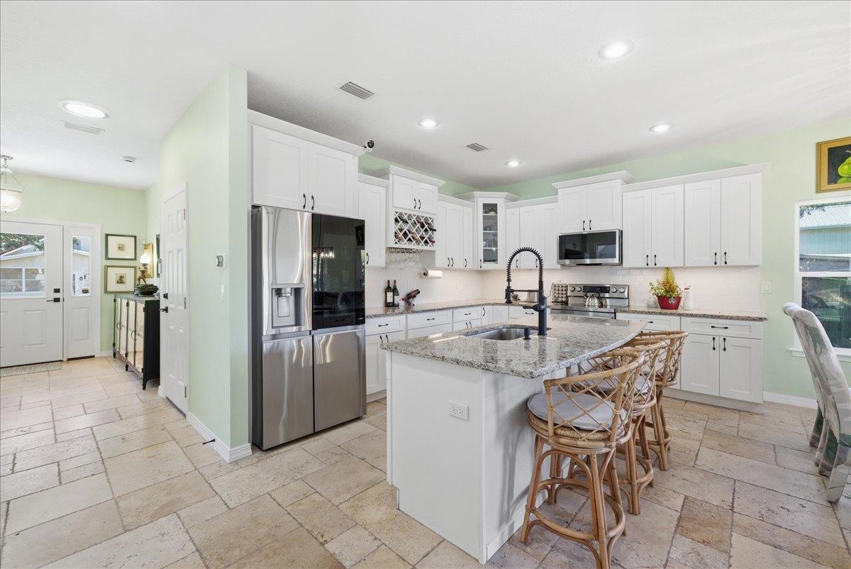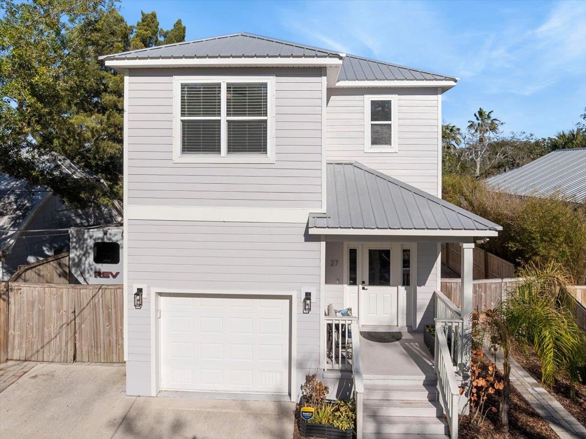 Tucked away on a quiet dead end street in the heart of Uptown St. Augustine, 27 Oak Street offers an incredible opportunity to enjoy marshfront living just minutes from the historic district and the beaches of Vilano. Located in the desirable Hildreth Back Bay section of Fullerwood Park and set at a high elevation, this 3 bedroom, 2. 5 bath home captures the essence of peaceful coastal living while remaining close to everything that makes St. Augustine special. Inside, the home welcomes you with fresh new interior paint, warm travertine tile floors, and a bright open layout designed for both everyday comfort and entertaining. The kitchen has been beautifully refreshed with refinished cabinetry, granite countertops, and brand new appliances, creating a clean and functional space that flows seamlessly into the main living areas. Upstairs, the primary suite is perfectly positioned to take in the tranquil marsh backdrop and features its own private balcony, an ideal place to enjoy your morning coffee while watching the sunrise over the marsh or unwind in the evening as coastal breezes roll in. Two additional bedrooms provide comfortable accommodations for family or guests, while a separate flex space offers versatility for a home office, reading nook, playroom, or loft style lounge. Outside, the spacious homesite offers sweeping marsh views and a peaceful natural setting, often visited by native birds and wildlife. The property also offers a rare level of functionality with space to discreetly store an RV or boat completely tucked away from view. Additional highlights include a garage wired for an EV charger and thoughtful interior updates that make the home completely move in ready. Located within an A rated school district and just moments from Uptown’s beloved coffee shops, restaurants, and boutiques, this home blends lifestyle, flexibility, and location. With no HOA restrictions, owners have the freedom to enjoy the property as a primary residence, second home, or short term rental. Marsh views, privacy, modern updates, and a prime Uptown location make 27 Oak Street a rare opportunity to experience the best of St. Augustine living.