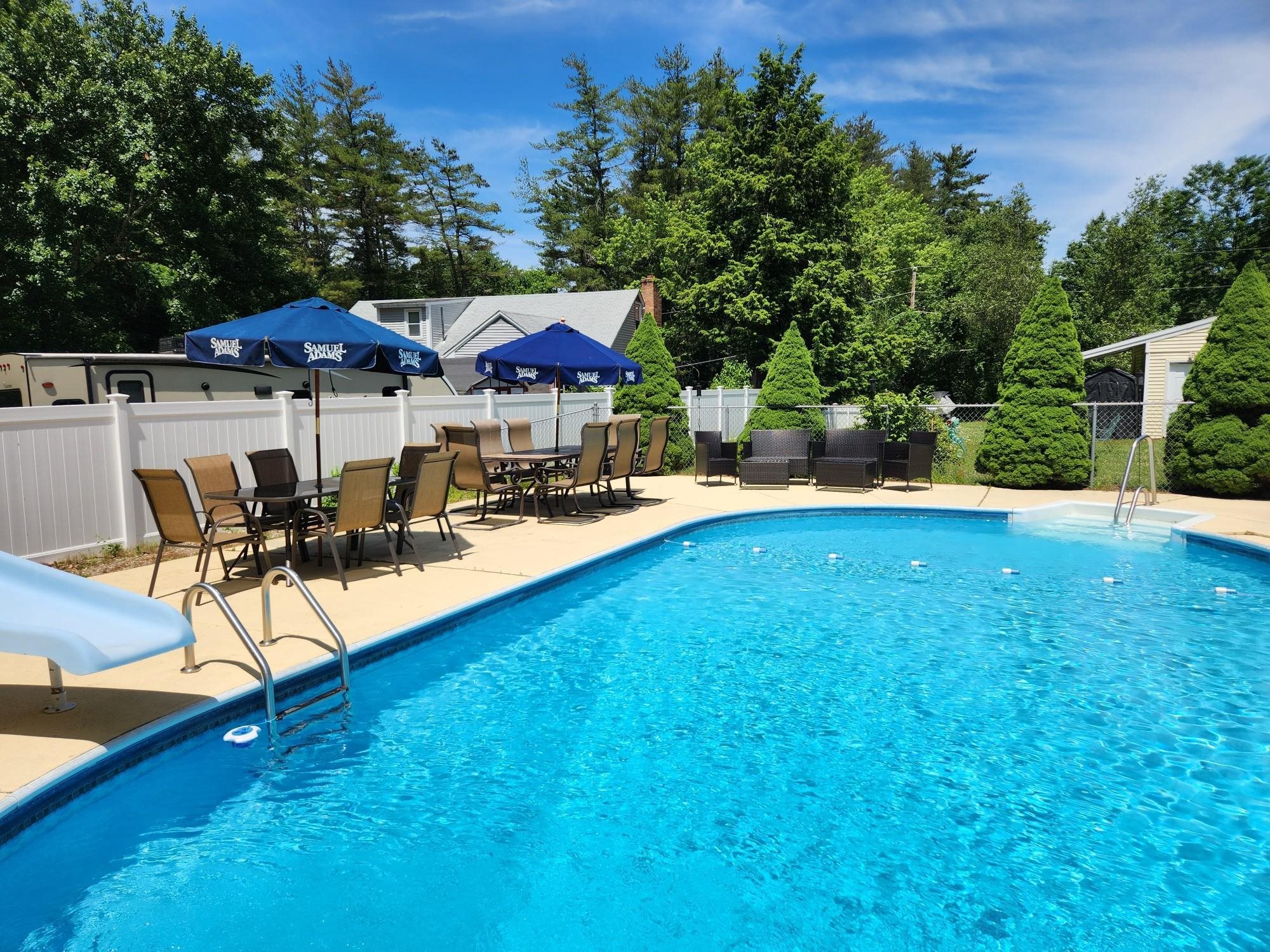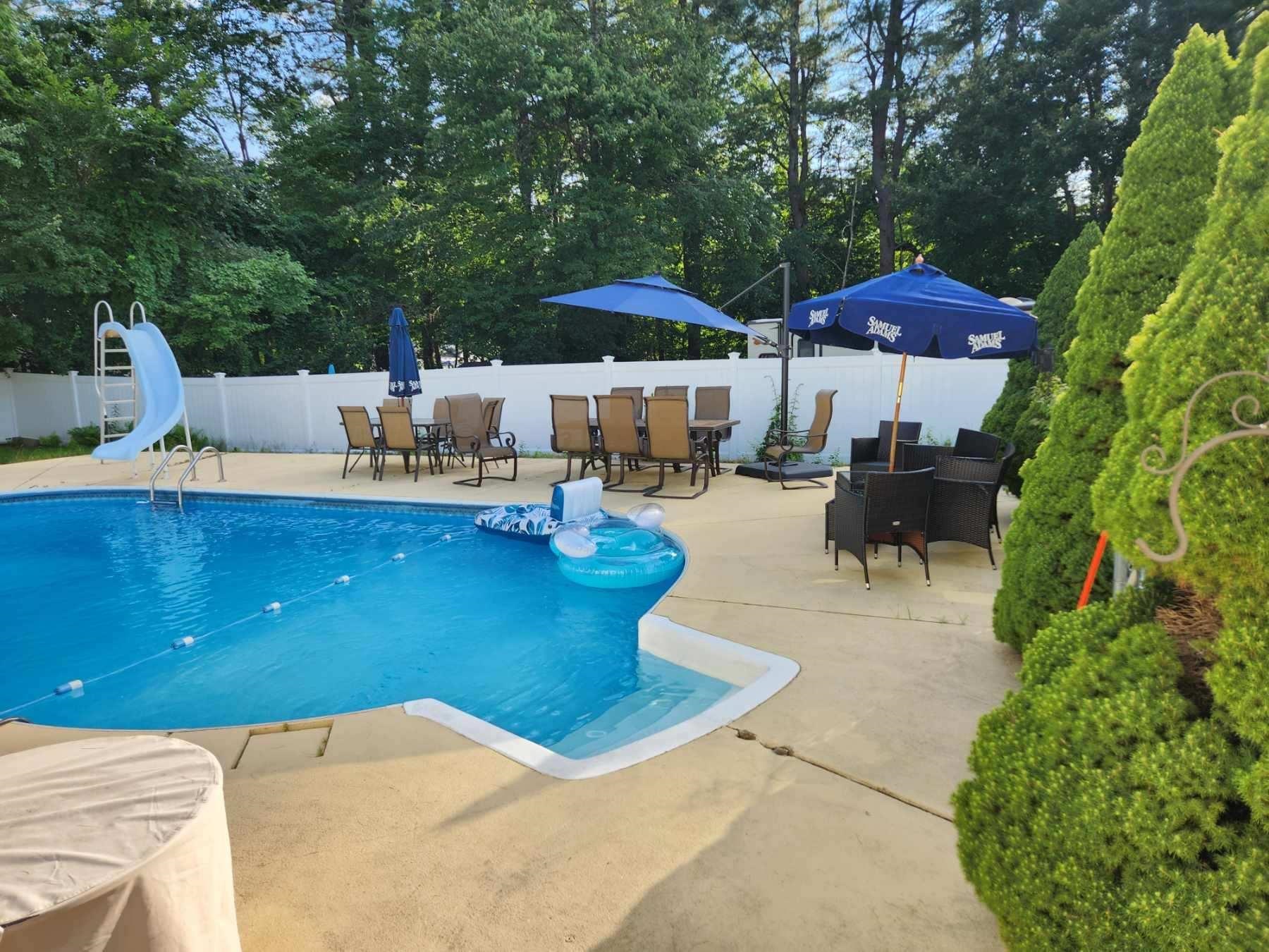 Live in one, rent the other—or create the perfect multigenerational living setup. A rare opportunity to combine lifestyle and income potential! This versatile multifamily ranch on a nearly one-acre corner lot in Merrimack offers over 2, 000 sq ft of single-level living across two separate spaces: a 3-bedroom, 2-bath main home and a 2-bedroom, 1-bath unit with cathedral ceilings and its own washer/dryer. Hardwood floors, LVP, and a renovated kitchen bring warmth and style to the main living space, while sliding doors lead to a deck overlooking the fenced in in-ground pool—perfect for summer entertaining. The property continues to impress with a detached two-level garage/workshop, two driveways, and a spacious level yard offering privacy and room to grow. Downstairs, a 1, 000+ sq ft partially finished (unheated) basement provides incredible potential for future expansion, recreation space, or storage. Additional upgrades include a brand-new furnace, French drain system, a new hot water heater (2024) and leased solar panels for energy efficiency. Just minutes from Route 3/Everett Tpke, this location offers easy commuting to Nashua, Manchester, and the MA border while placing you close to Merrimack Premium Outlets, dining, schools, and everyday conveniences. Opportunities like this don’t come often — First showings at this weekends Open House Sat + Sun 12-2PM!