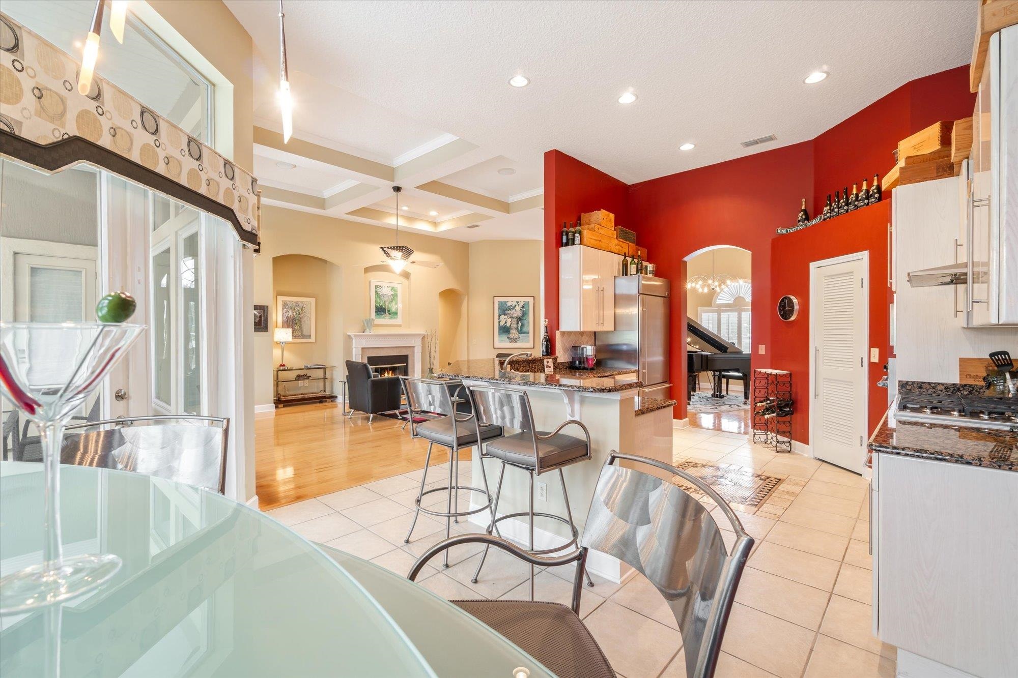 This lakefront 4BR/3BA pool home is located on the lovely tree lined street of Royal Pines at World Golf Village. When entering you will notice the soaring tray ceilings and artistic lighting and ceiling fan with intricate detail. The natural gas fireplace adds ambience as well as heat on those cool winter nights. The kitchen features Viking oven, microwave and cooktop, Faber hood vent, GE Monogram refrigerator, Fisher and Paykel dishwasher, Grohe faucet. Anderson windows were added across the LR, Kitchen and Master BR to maximize the expansive pool area and lake views. Custom plantation shutters across the front of the house including garage and master bath. Fanimation fans were added throughout. Engineered hickory wood floors in the main living area as well as the ofc and master BR. Bose surround sound. Royal Pines is conveniently located close to I-95, Publix, Costco, top rated schools and so much more yet feels very secluded with mature oak trees that line the streets and the wide sidewalks on each side. The neighbors are absolutely the best ever and will make you feel right at home. Come visit and see what makes Royal Pines community so special.