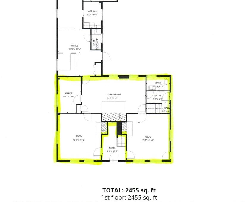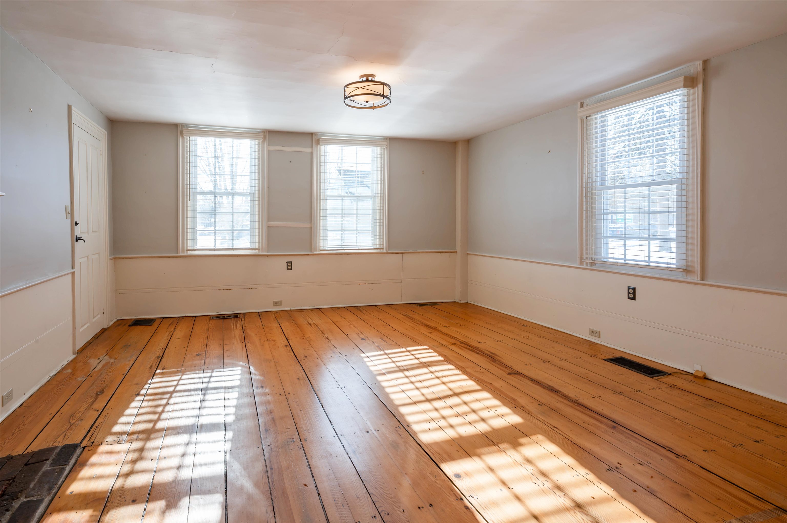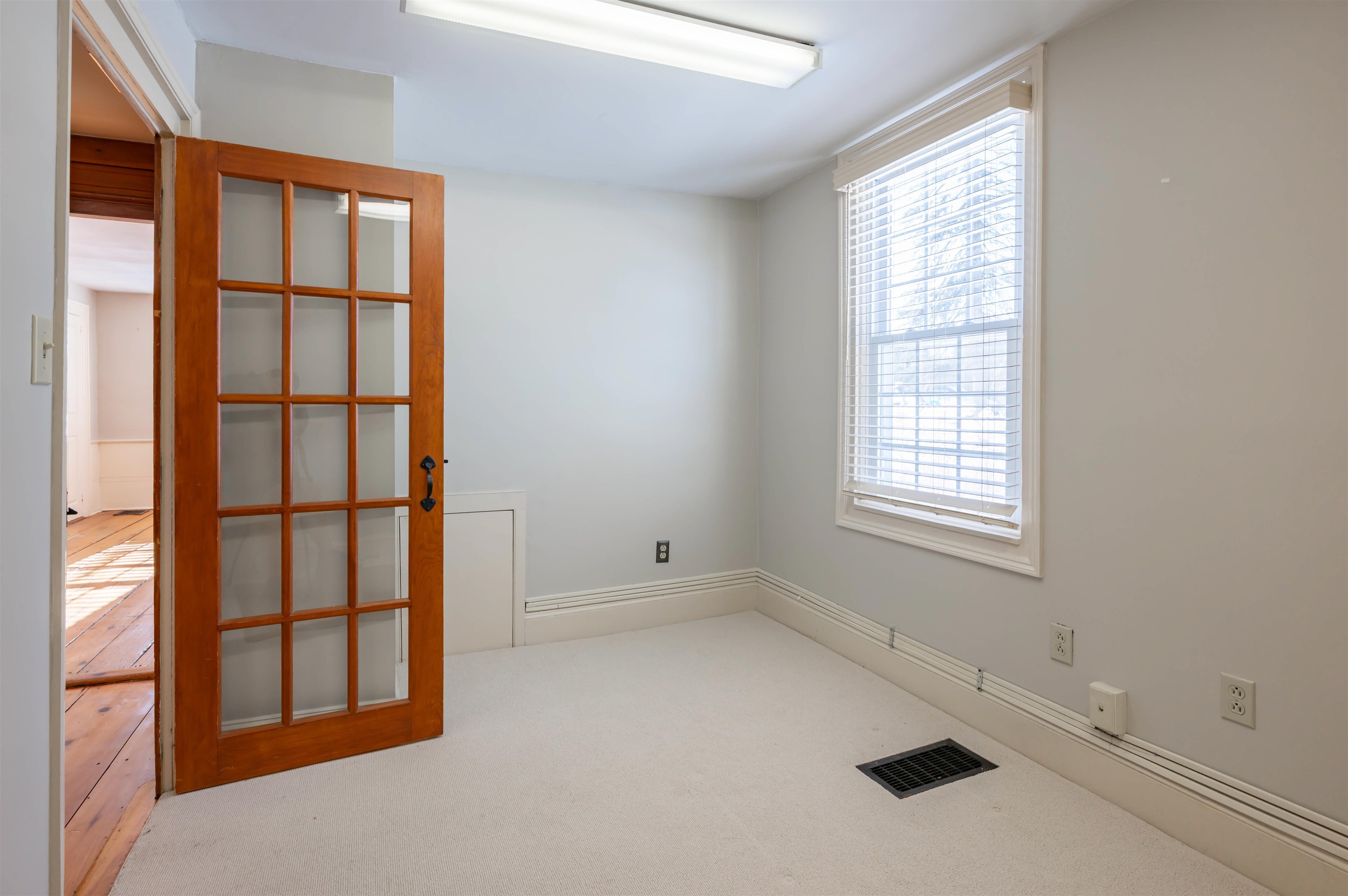 Stunning and stately first floor office space available for lease in downtown Hollis. This first-floor suite features fireplaces, wide-plank flooring, a private restroom and a private entrance. The layout includes four offices, three of which are large enough to function as conference rooms, providing flexibility for a variety of professional uses. The property offers ample parking for your clients and employees. Enjoy access to a kitchenette/breakroom upstairs. All utilities and services are included in the rent including heat, hot water, electricity, internet, trash removal, snow plowing, and landscaping. $2, 700 per month. Second floor room also available for lease for $550 per month (all inclusive. )