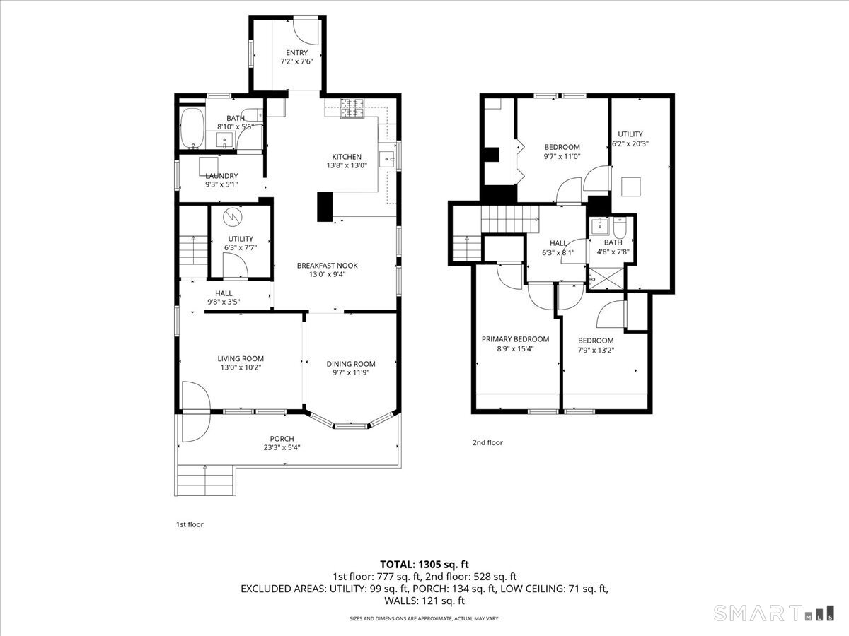 | Primary Bedroom | Hardwood Floor | 15.0 x 9.0 | Upper |