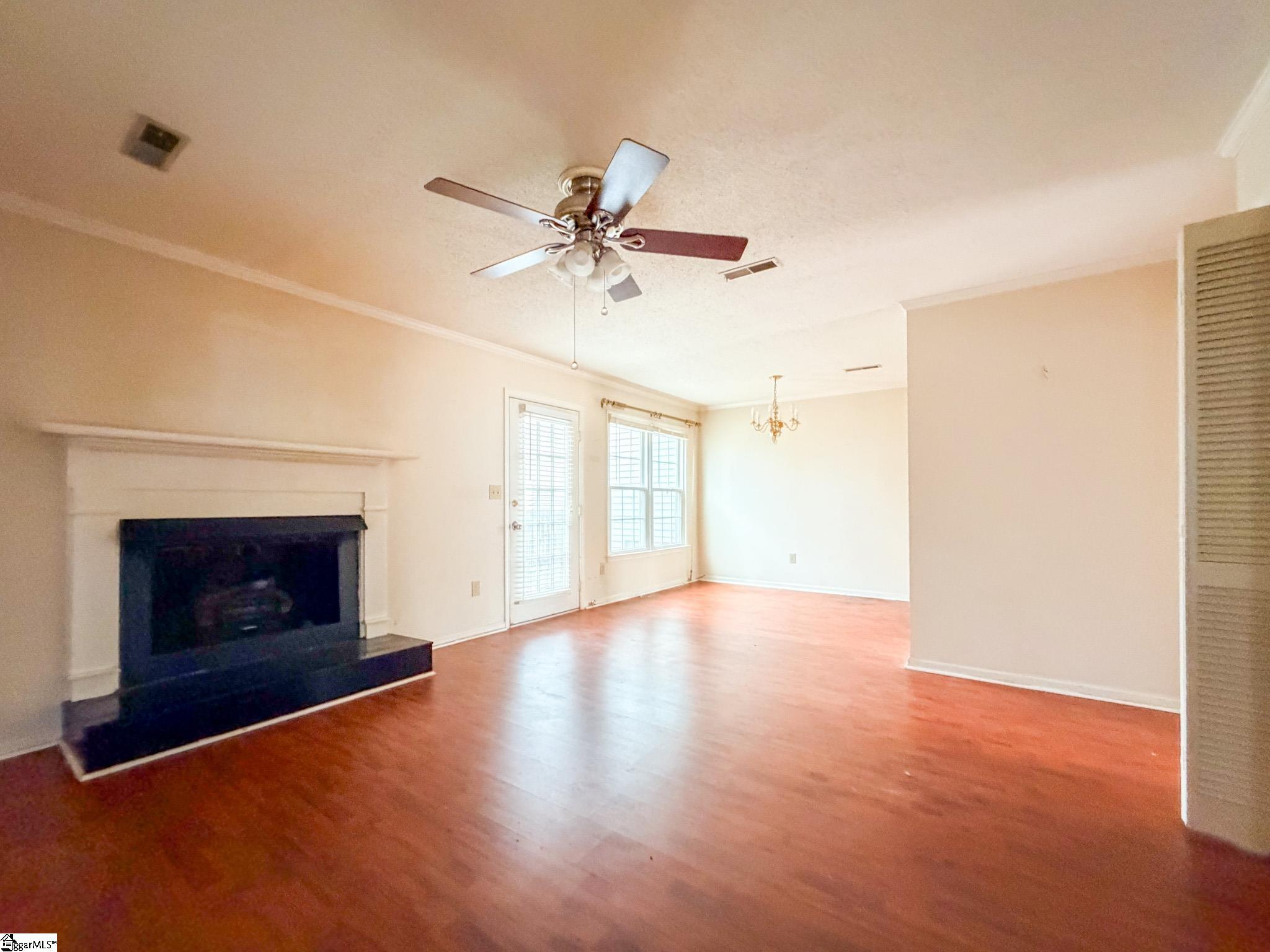 Bank-owned opportunity in the established Woodwind community of Mauldin offering exceptional value with 3 bedrooms, 3 bathrooms, and approximately 1, 528 square feet of living space. Built in 1983, this townhome features a traditional layout with spacious living areas and excellent renovation potential for buyers looking to update and build equity. The main living area includes a propane gas log fireplace that serves as a warm focal point for the space. The galley-style kitchen offers extensive wood cabinetry, ample countertop space, white appliances, and durable tile flooring, with an adjacent dining area that provides natural light and convenient access to the rear deck. Upstairs, two bedrooms feature private en-suite bathrooms, creating flexible living arrangements for families, guests, or roommates. The primary bedroom includes a large walk-in closet, and additional storage is available with a hallway linen closet and attic access via pull-down stairs. Outdoor space includes an 8 x 20 rear deck ideal for relaxing or grilling, along with an attached storage room with electricity that provides convenient space for tools, equipment, or hobby use. The homeowners association replaced the roof approximately one year ago following storm damage from Hurricane Helene. Woodwind is a quiet, well-established community with many long-term residents and mature landscaping. The neighborhood offers a community swimming pool located just a short walk from the home. The property is located directly across from Mauldin High School and within walking distance of the Mauldin Farmers Market and the Mauldin Senior Center. Interstate 385 is approximately half a mile away, providing quick access throughout the Greenville area. Downtown Greenville and Greenville-Spartanburg International Airport are both approximately 15 minutes away, and major employers, shopping centers, schools, and recreational facilities are all within a short drive. The property has been vacant for several years and is being sold strictly AS-IS. The home will require updating, including replacement of the existing carpet, which is reflected in the attractive price point. HOA dues are approximately $182 per month and include exterior maintenance, trash service, and access to the community pool. This property presents an excellent opportunity for investors, renovators, or buyers seeking an affordable home in a convenient Mauldin location.