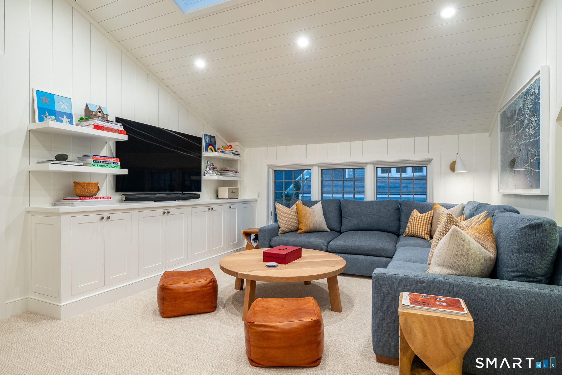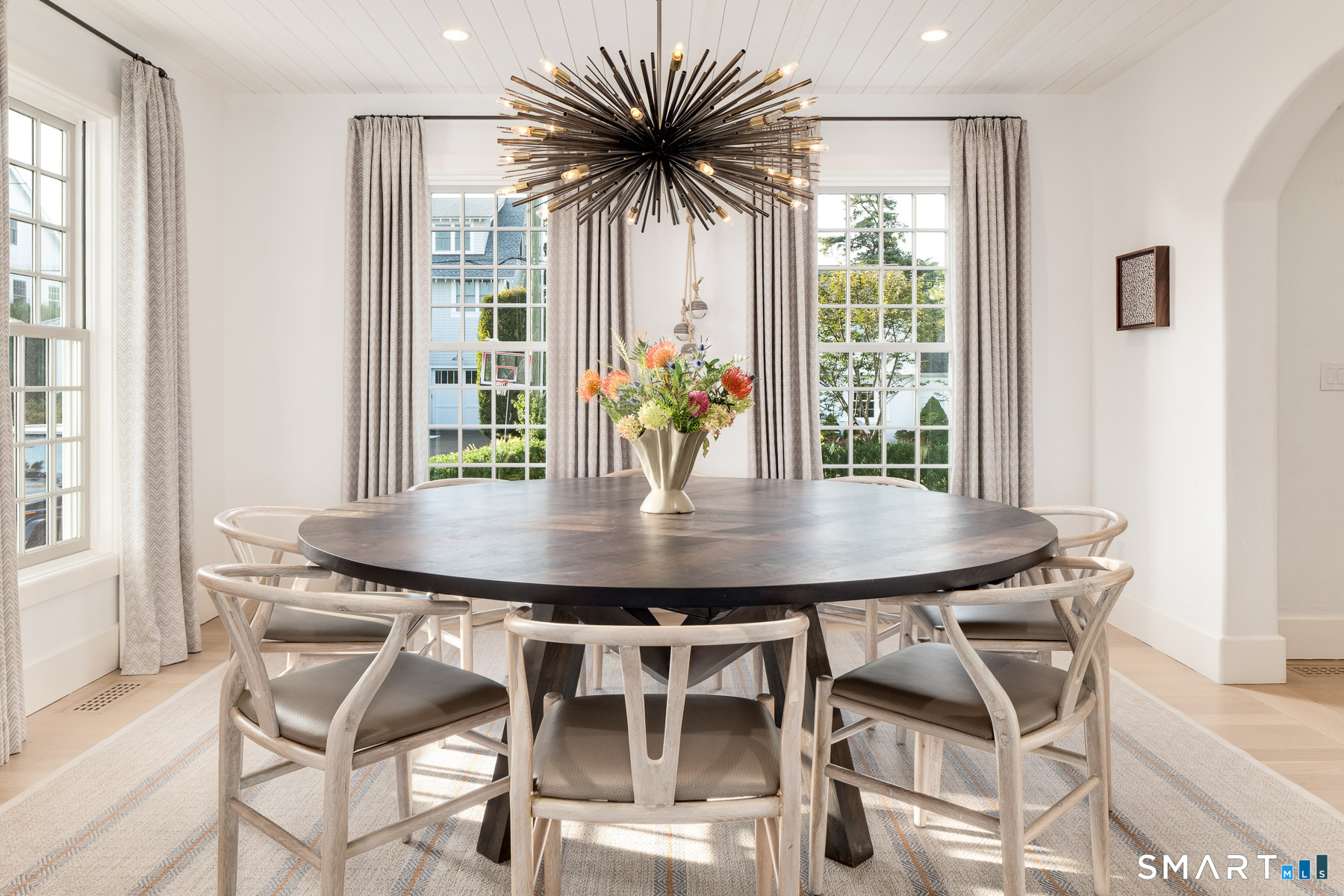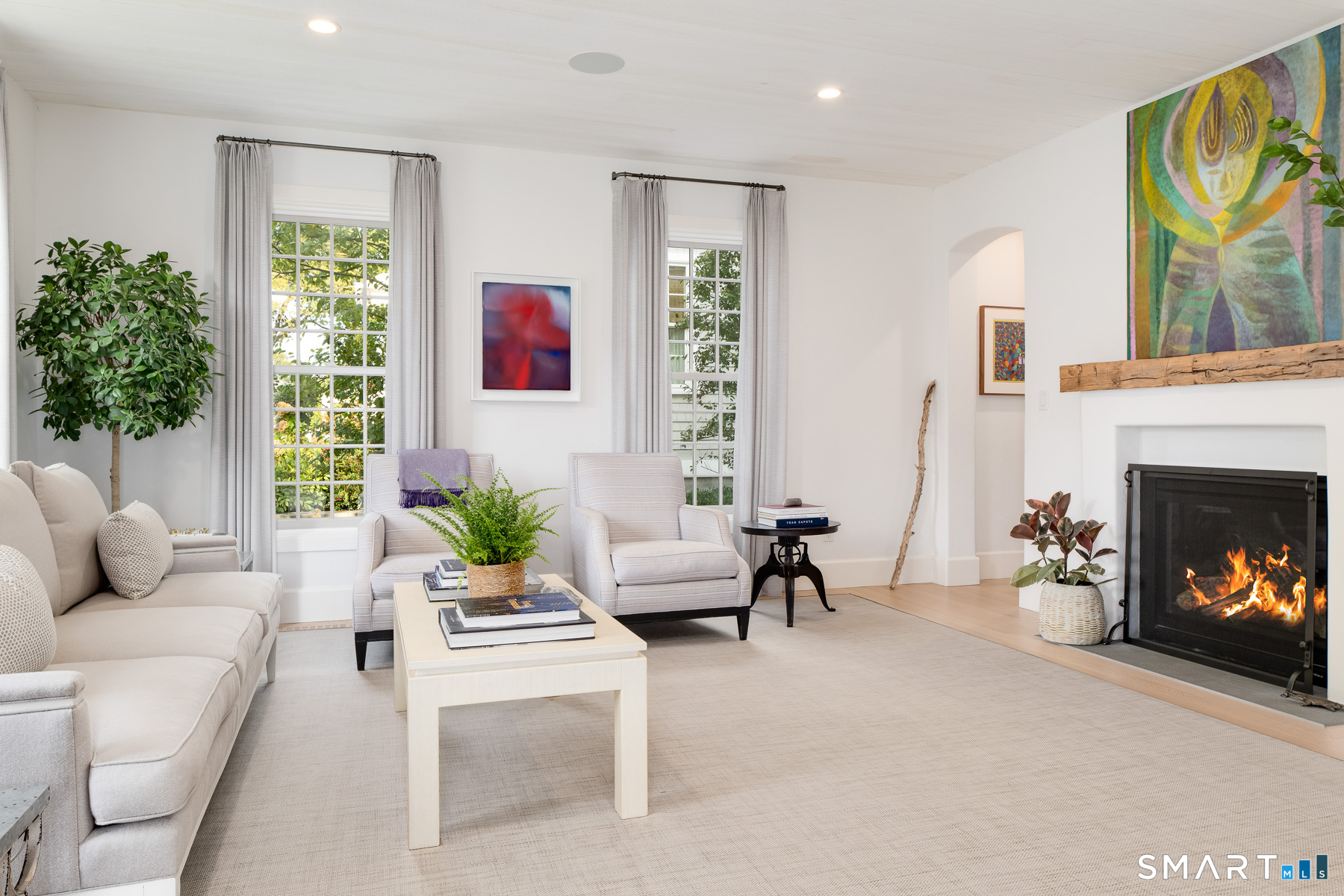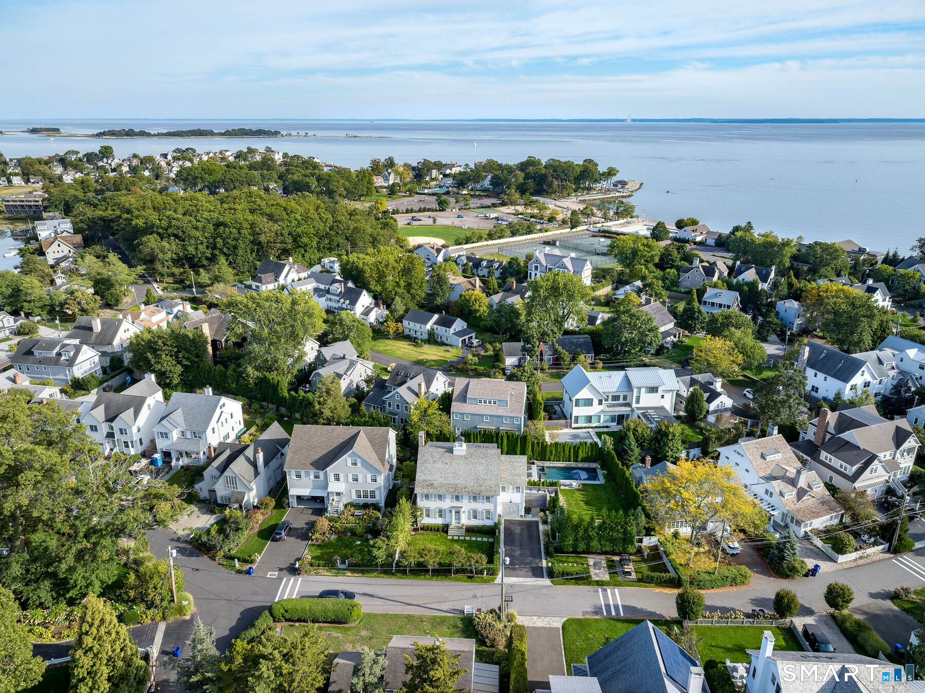 Masterpiece in Rowayton. Originally designed by legendary architect Bruce Beinfield, this exceptional home was expanded by its current owners, who merged two properties to create one of Rowayton's truly one-of-a-kind residences. Pool. Yard. Privacy. Just steps from the beach and a short stroll to town. Tucked behind 30-foot evergreen hedges lies a true sanctuary: a 35-foot gunite pool, outdoor kitchen, bluestone patios, and one of the largest, most private yards in Rowayton. With coveted southern exposure, the backyard and interior are bathed in beautiful natural light from morning to evening. Inside, plaster walls, reclaimed beams, and hand-finished cedar ceilings create warmth and character throughout. The chef's kitchen, featuring a large gas range, dual dishwashers, and striking marble, opens seamlessly to a family room with wood-burning fireplace. Gracious living and dining rooms complete the first floor. Upstairs, the tranquil primary suite features vaulted ceilings, reclaimed beams, a dressing hall with a walk-in closet, and a spa-like bath. Three additional bedrooms include one en-suite and two connected by a beautifully finished Jack-and-Jill bath with marble walls. A light-filled second-floor foyer ties the space together with architectural elegance. The third floor offers exceptional flexibility, including a private office set behind European glass-and-steel doors, an additional sunlit family room with paneled walls and ceiling, and a home gym. A Rowayton unicorn.
