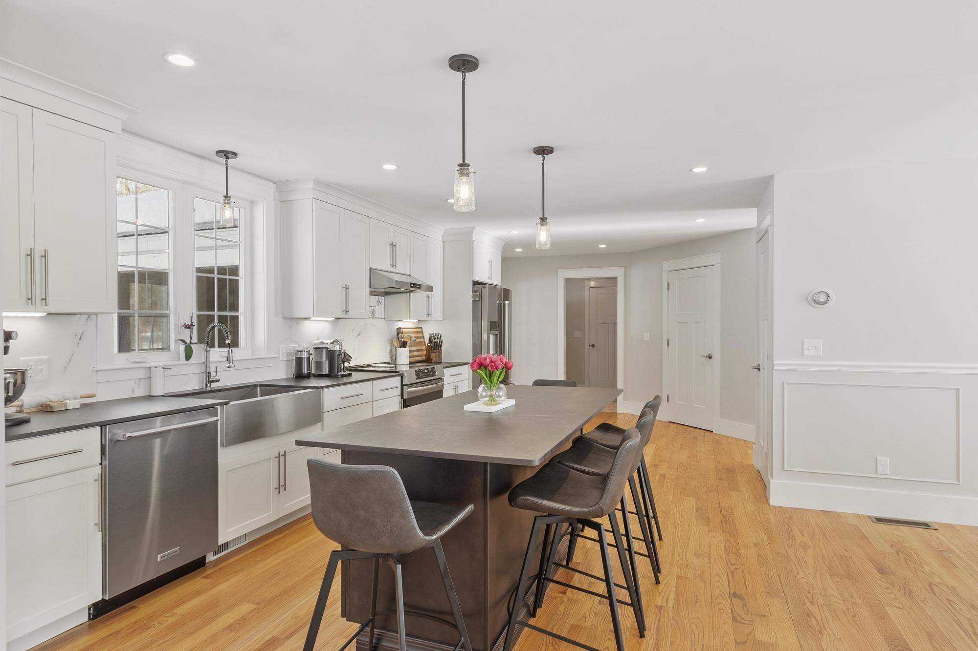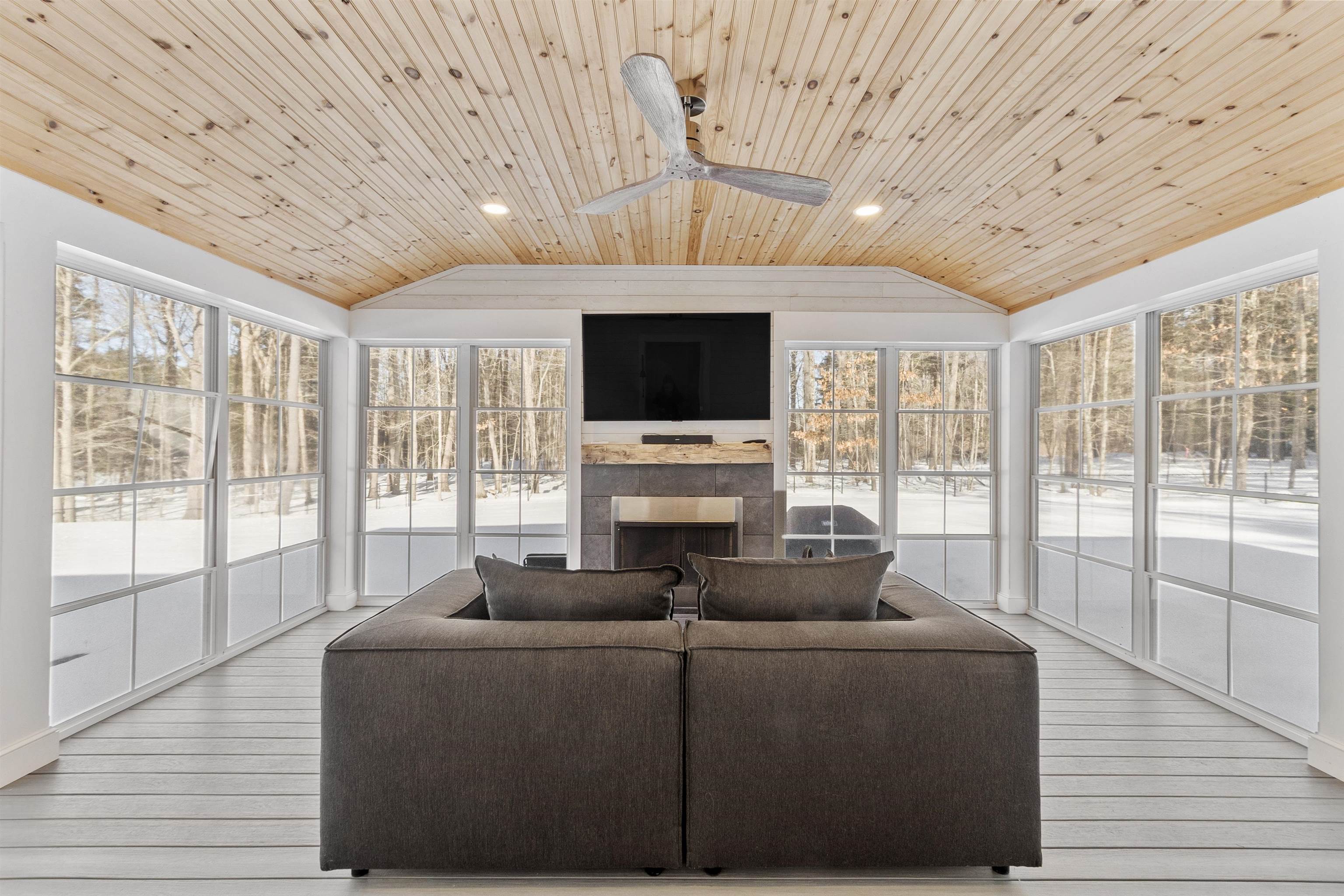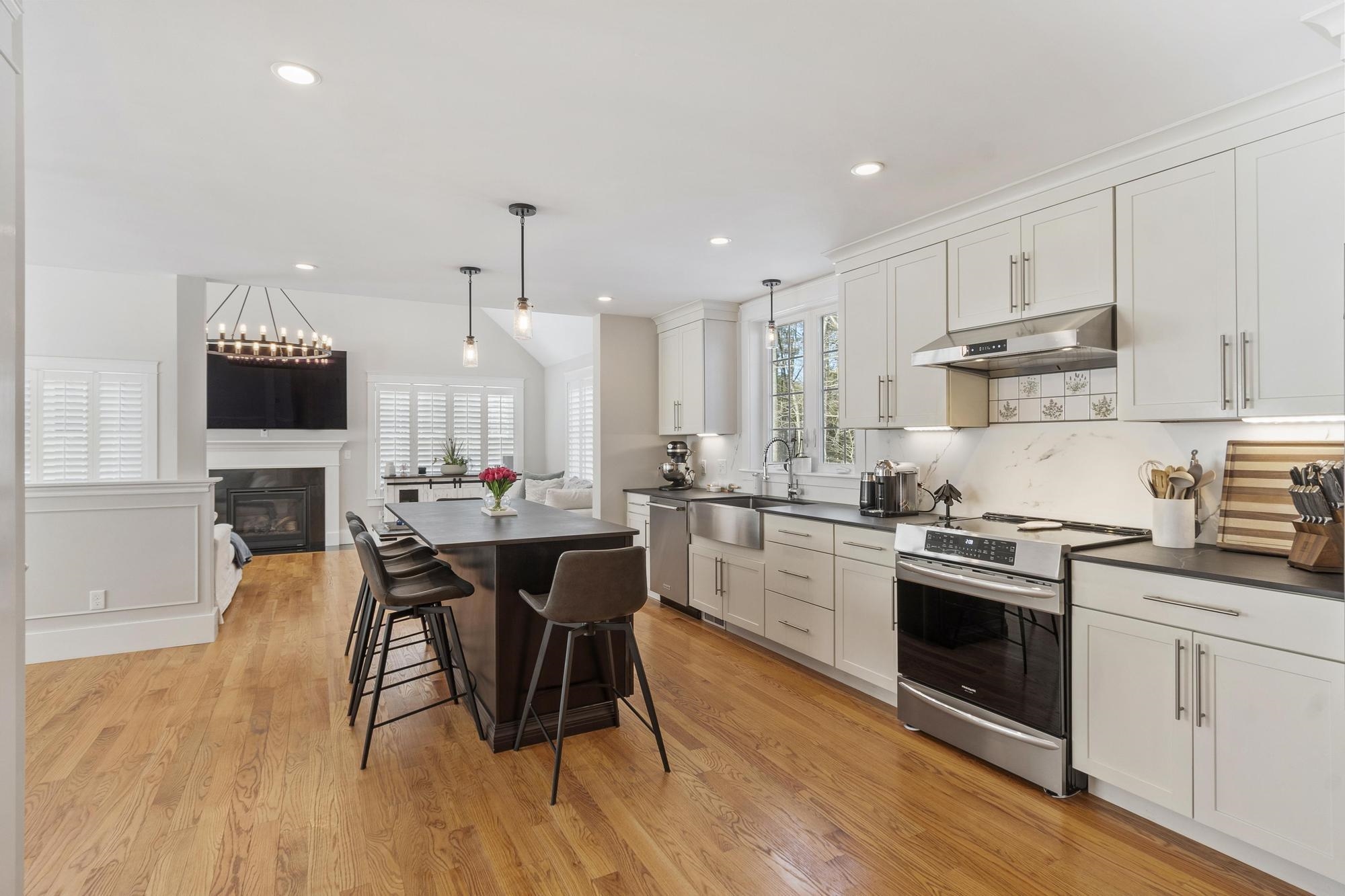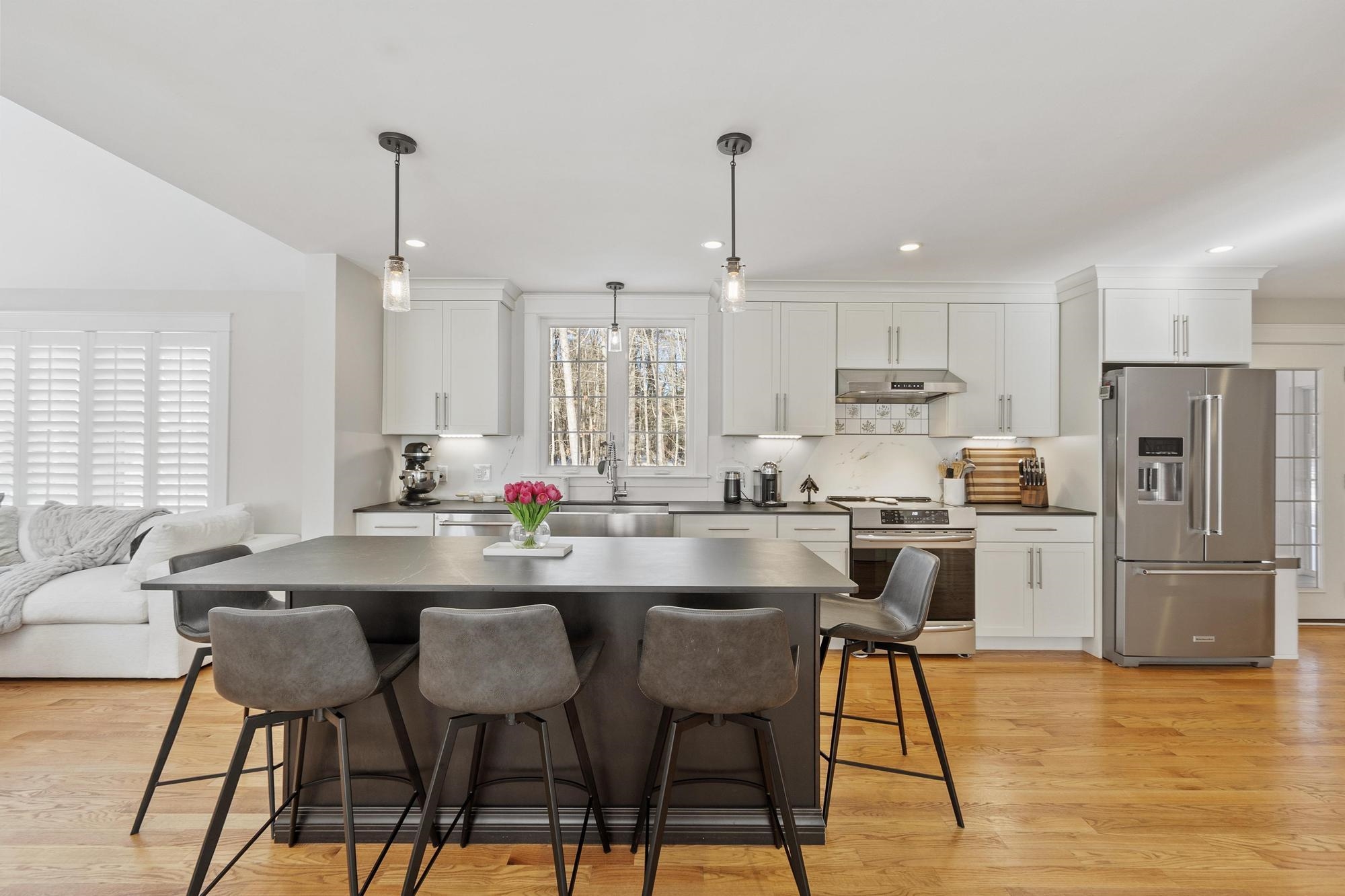 Beautifully crafted custom-built home on 2. 74 private acres, offering a perfect blend of quality design, adaptable living areas, and modern comfort. Built in 2017 and impeccably maintained, the first floor highlights a bright open-concept layout with hardwood flooring throughout. The chef’s kitchen delivers exceptional workspace with stainless steel appliances, Dekton counters, a stainless farmhouse sink, oversized island, and walk-in pantry—ideal for daily cooking and entertaining. A flexible dining area suits both formal and casual gatherings. The impressive front-to-back living room features soaring ceilings, a gas fireplace, and serene views of the private yard. A French-door office/den, mudroom, half bath, and inviting sunroom with a wood-burning fireplace complete the main level. Upstairs are four generous bedrooms, including a refined primary suite with a tiled shower, soaking tub, double vanities, and dual walk-in closets. 3 Miles from Hampton Beach