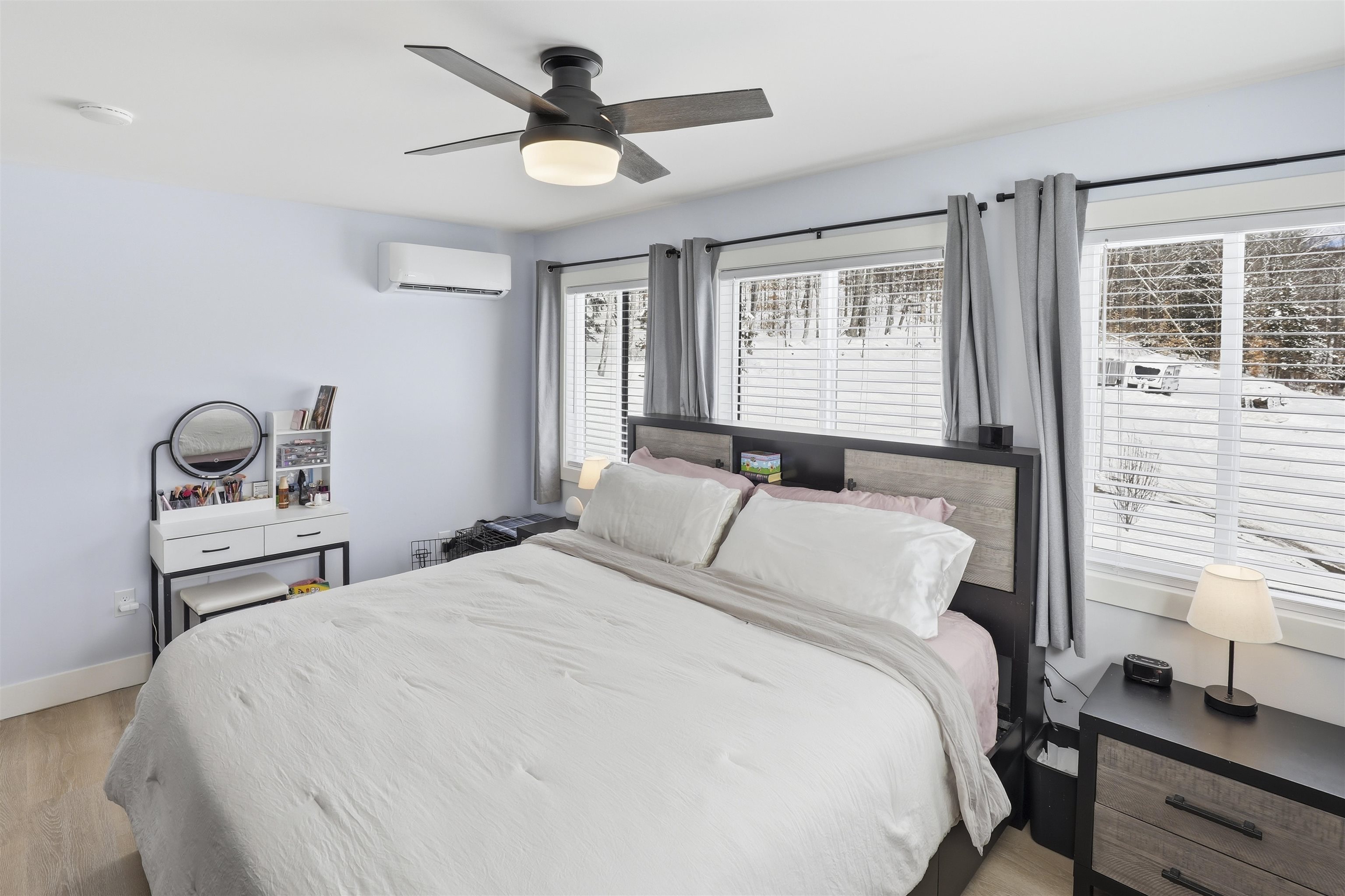 Location, privacy, and long-term upside—this one checks every box. Set on a paved, town-maintained road just minutes to I-93, this elevated property offers true seclusion without sacrificing convenience. No HOA. Just usable land, open sunny skies, and sweeping mountain views. The home spans three finished levels, including a bright walkout lower level with 9’ ceilings, a finished bedroom, second living/bar area, washer/dryer and utility room, and direct exterior access to the patio and hot tub through a 9’ slider—finished to the same standard as the main floor and fully heated and cooled for year-round living. The main level is designed for both daily living and entertaining, featuring an open kitchen, dining area, and living space positioned to capture natural light and mountain views, along with a full bath and direct access to the elevated rear deck—perfect for morning coffee or sunset evenings overlooking the landscape. Upstairs, the master suite and secondary bedroom enjoy some of the best vantage points in the home, creating a quiet retreat level that feels private while remaining connected to the surrounding scenery. The layout is flexible, functional, and intentionally designed for real life—whether hosting, working from home, or simply enjoying space and privacy. Built with foresight, the property includes an oversized well and 6-bedroom septic infrastructure providing capacity for future expansion or a potential second structure. That kind of forward-thinking investment is increasingly rare. The detached 4–6 car garage is a standout feature—ideal for car enthusiasts, contractors, hobbyists, or business owners needing serious storage and workspace. Efficient mini-splits paired with dual propane backup heat provide comfort and redundancy. Offered furnished, the home presents a true turnkey opportunity—move in and enjoy from day one. Showings begin 3/9/26. Broker interest.