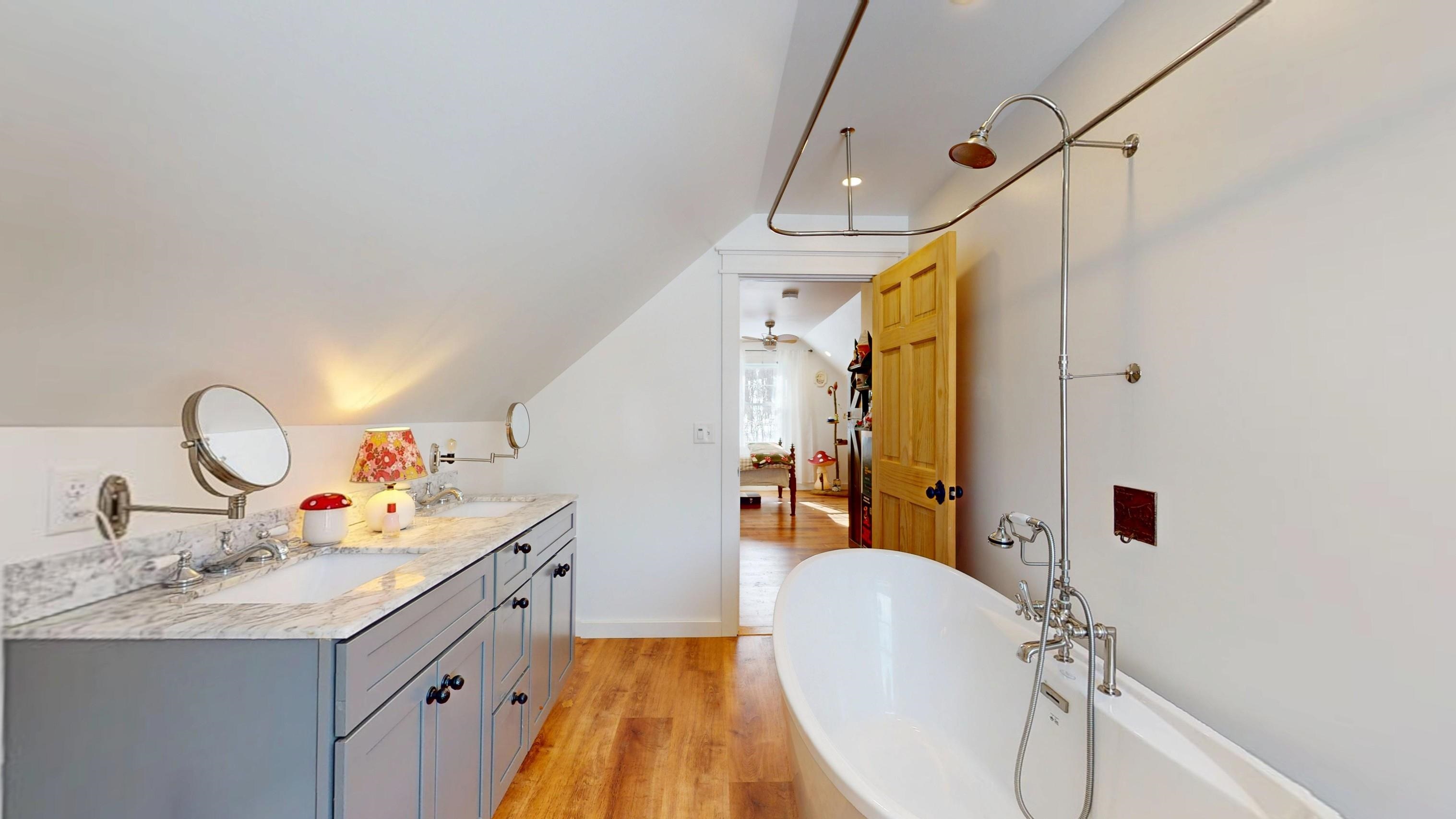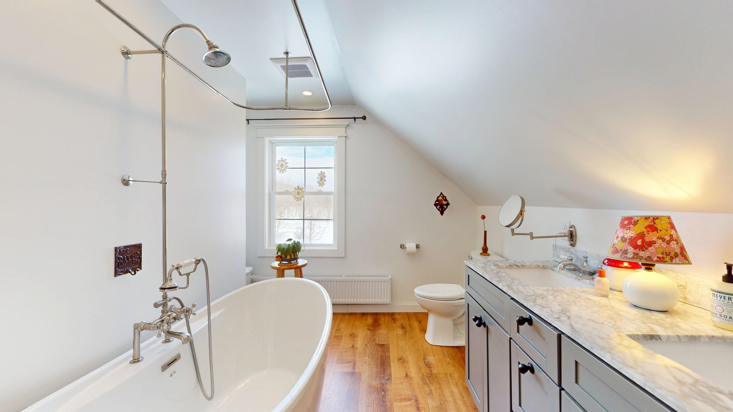 Wouldn't it be so nice to come home to a quiet and peaceful place? A place where you can stand in the kitchen and prepare a meal for your friends or family and enjoy their company while you do it? A place where a walk after dinner allows you time to visit with your not-too-close neighbors? Or sit on the deck in the summer and watch the ducks float on the pond? Welcome to 101 Young Road in the quaint town of Orwell, Vermont. A community that comes together and a place that exudes the bucolic lifestyle Vermont will afford you! Totally renovated in 2018 and continually updated by the current owners, all the heavy lifting has been done and this house is 100% move-in ready for you. The main living level offers an open floor plan between the kitchen, living room and dining area as well as a 3/4 bathroom and a spacious mudroom (a must have for a Vermont home!). On the second floor you'll find 3 bedrooms and a full bath attached to a laundry room and an office/walk-in closet - it has a window overlooking the back yard so you decide what to use it for! On the third floor is where the bedroom sanctuary is located. A very private space with built ins, storage and a lovely bathroom where you can ease the day away quietly, peacefully. With 4. 5 acres of land you can enjoy the privacy, plant a garden, let the dogs run wild! Orwell sits about equidistant to Middlebury and Castleton, about 20 minutes to Brandon and allows for easy access to NY attractions as well.