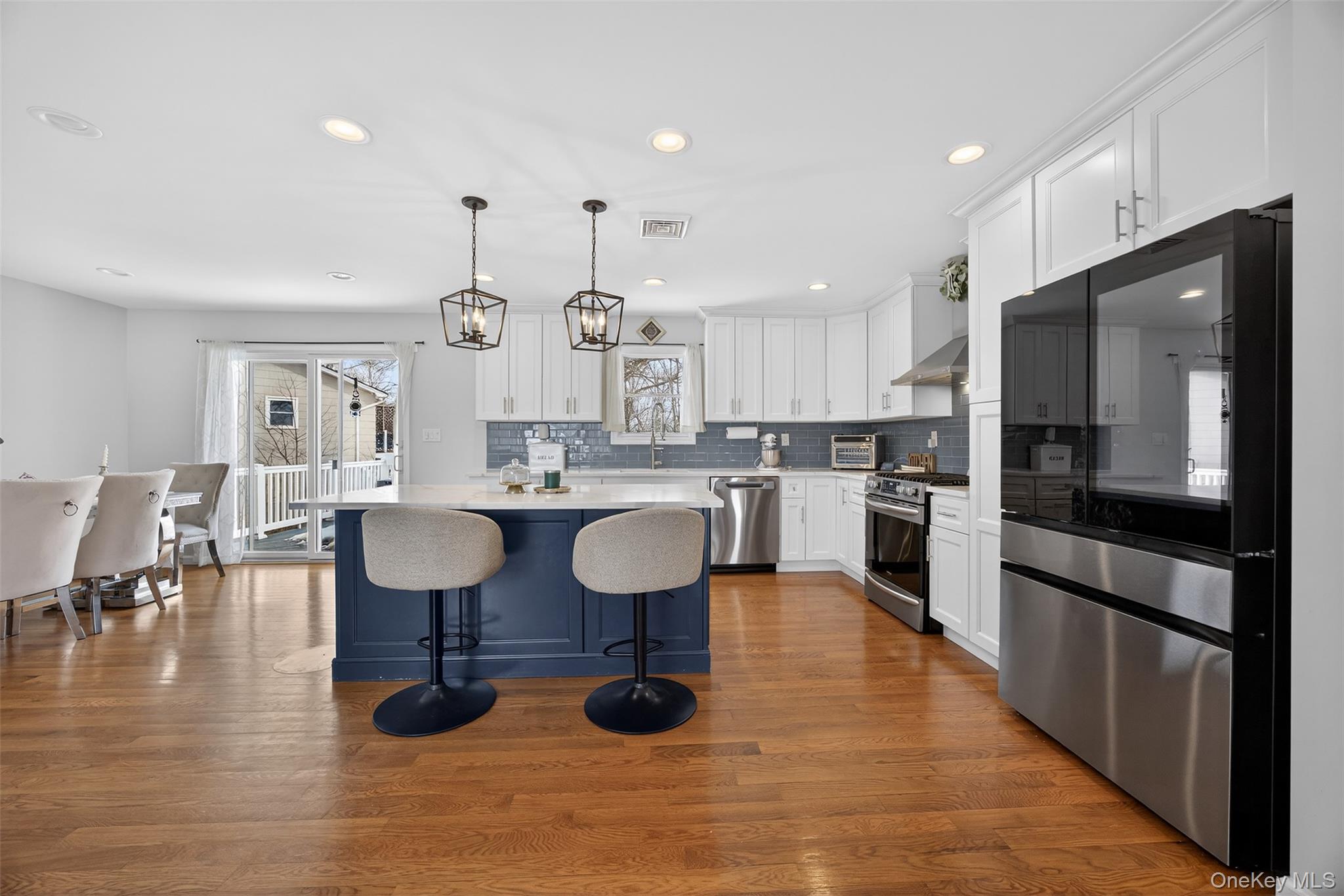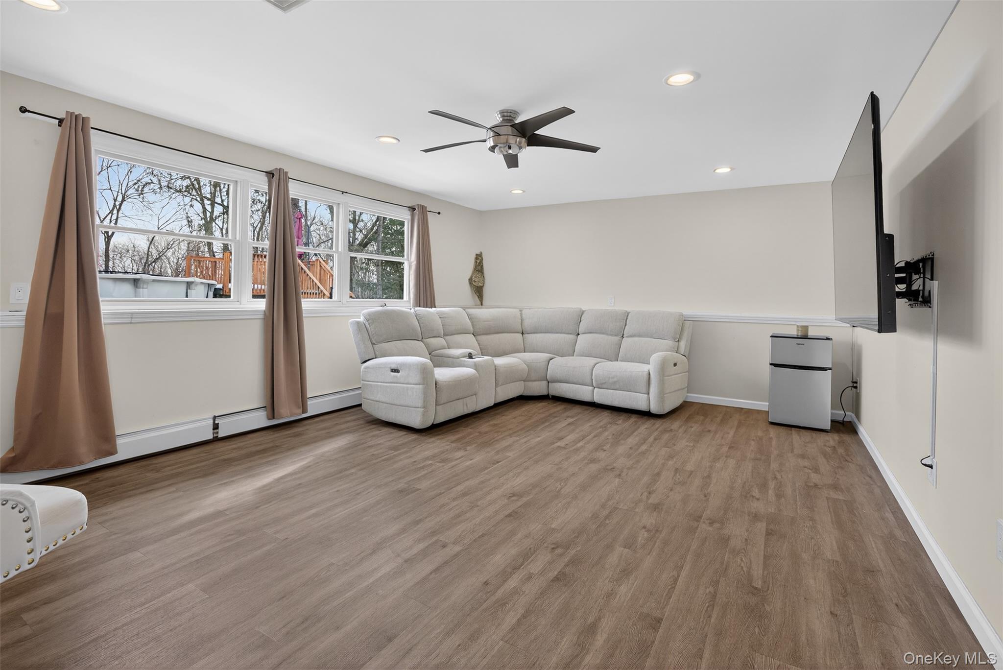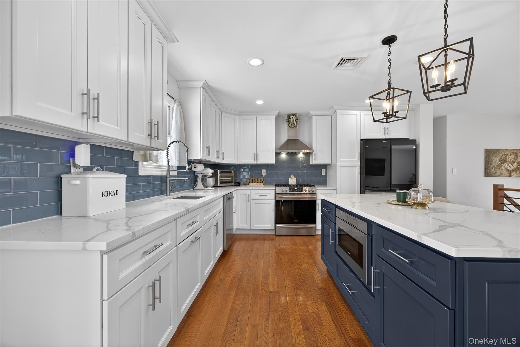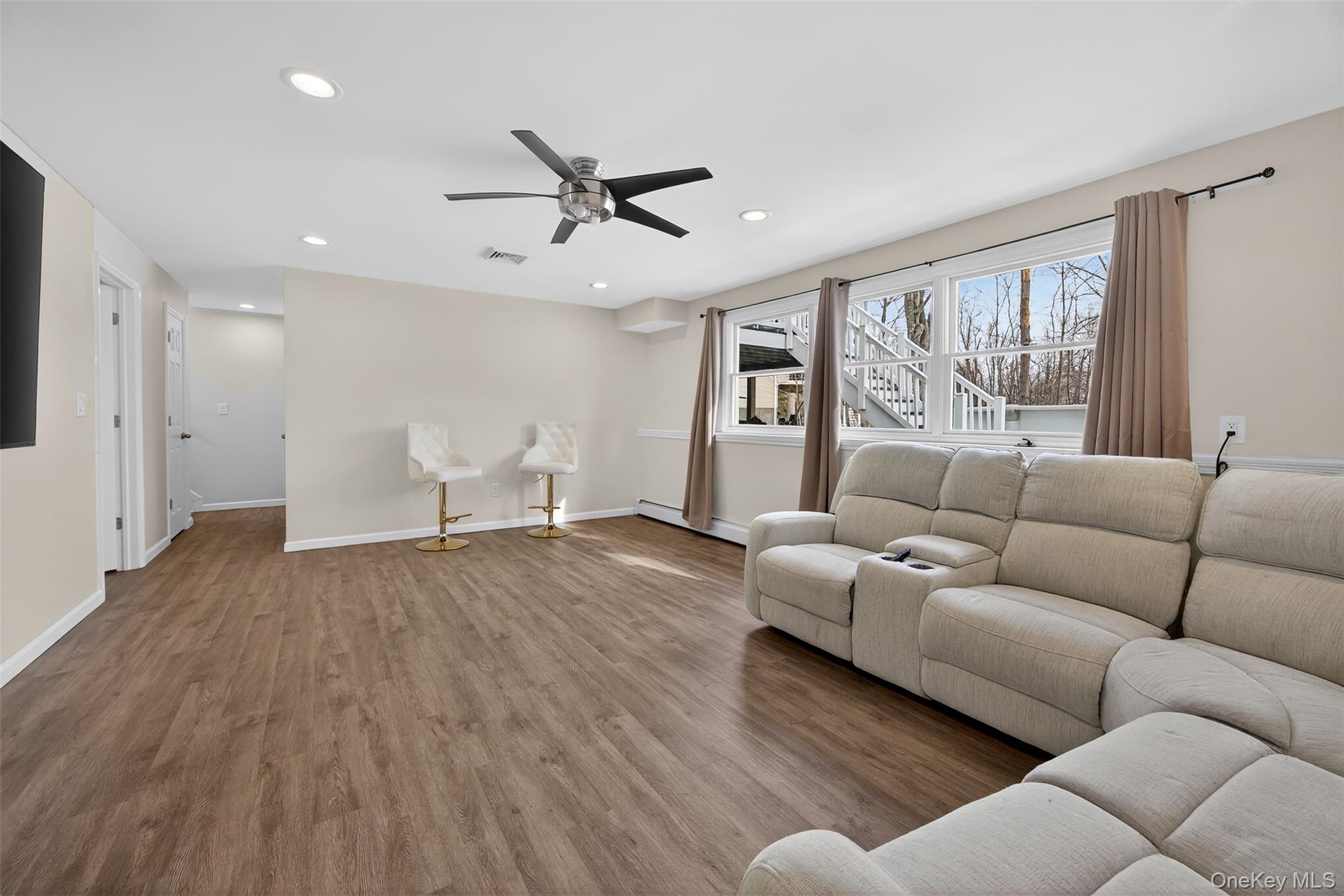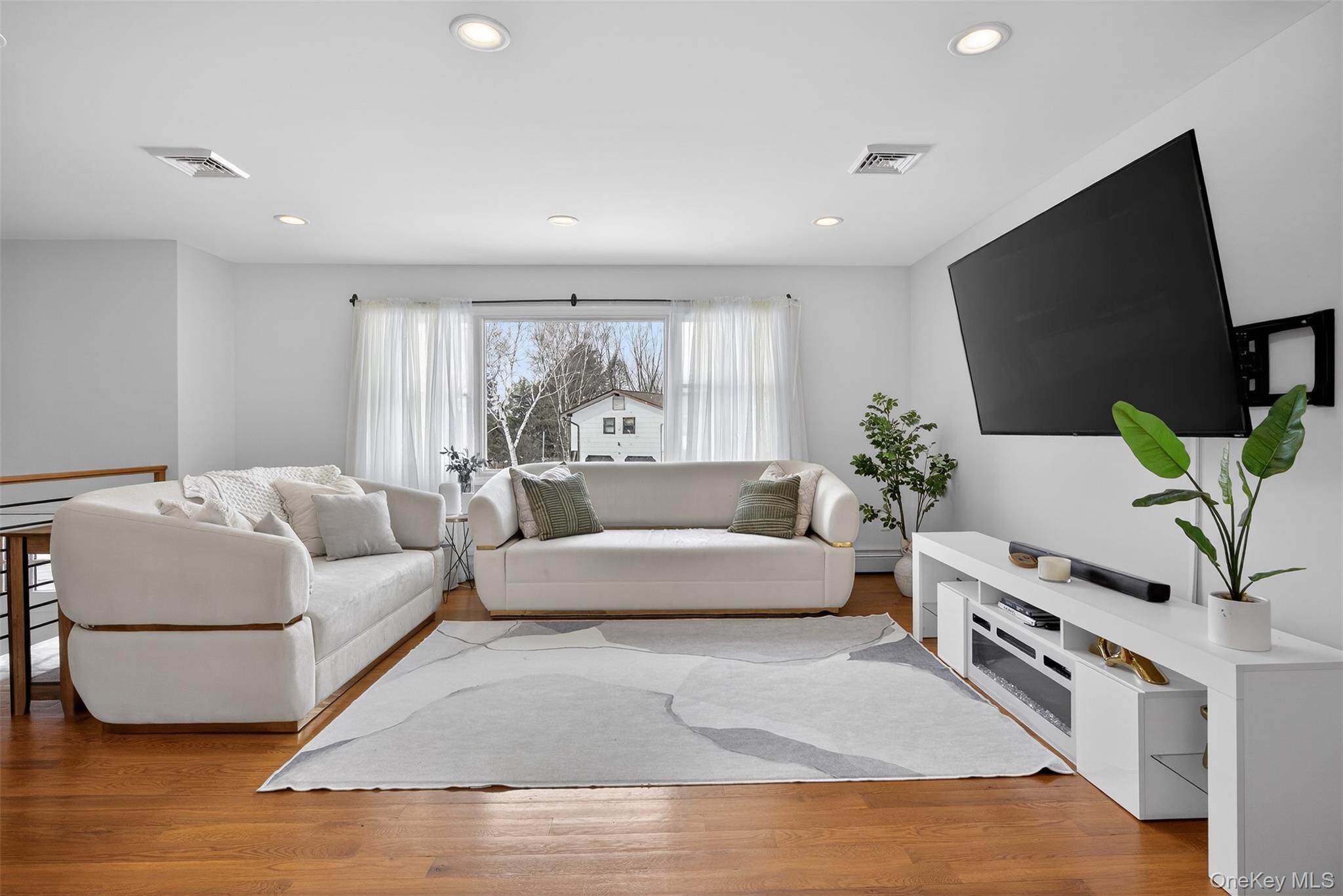 Welcome to 4 Millard Circle, Monroe, NY, a beautifully renovated raised ranch located in the highly sought-after Monroe-Woodbury School District. This move-in ready home features an open-concept main level with a modern kitchen offering quartz countertops, a center island, and ample cabinet space. Hardwood floors run throughout the upper level, which includes three bedrooms, including a primary suite with its own private full bathroom. The lower level provides additional living space with a large family room, a separate playroom, one bedroom, and a full bathroom, offering a flexible layout for extended living or a home office. Additional features include a two-car garage and a spacious backyard with a custom firepit and above-ground pool, perfect for relaxing or entertaining. Recently renovated and ready for immediate occupancy.