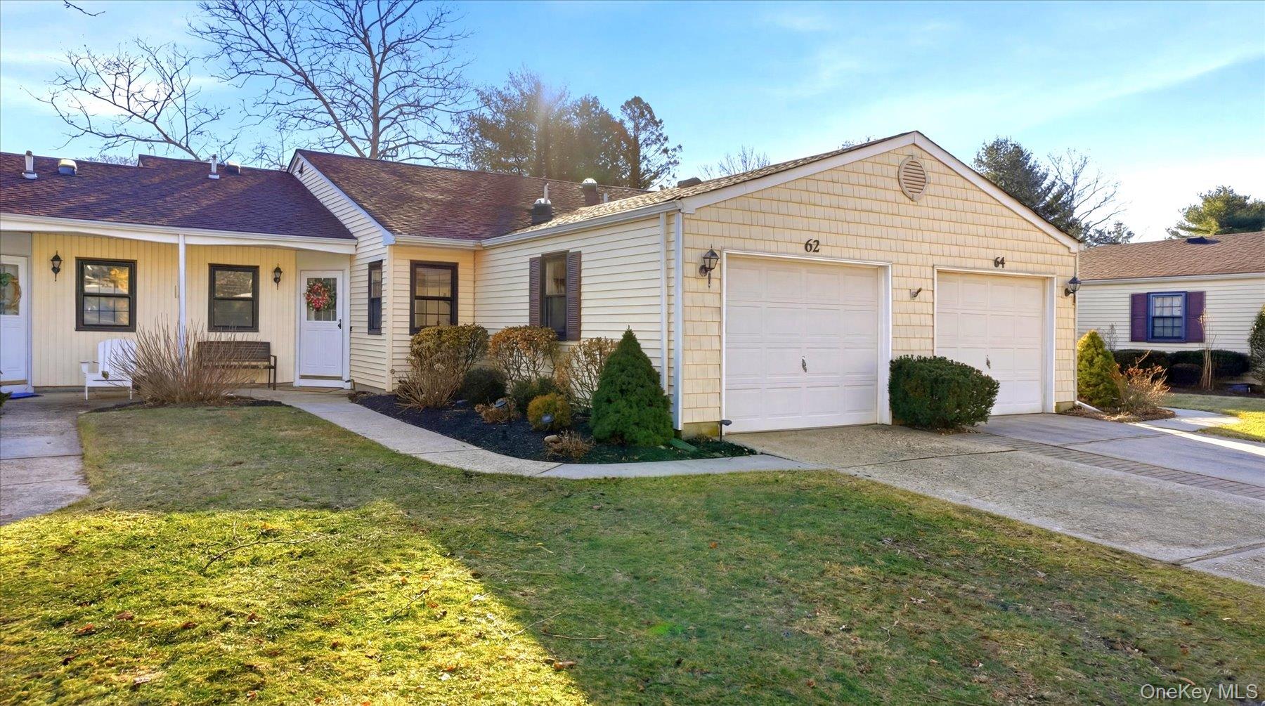 Welcome home to this gorgeous 2-bedroom, 2-bath condo nestled in the charming 55+ community of “The Knolls at Stony Brook. ” This stunning condo has had a complete renovation. Interior walls were removed to create a true open floor plan for modern living. It features a beautiful chef’s granite kitchen with a center island, and stainless-steel appliances that opens to a spacious dining and living room, ideal for enjoyable family gatherings. Additional upgrades include all new doors and moldings, laminate flooring throughout and recessed lighting. The primary bedroom redesign includes a large “walk in” closet and expanded shower in the primary bath. All freshly painted and overlooking a wall of glass on to the serene backyard which includes a paver patio for outdoor entertaining. The second bedroom, beautiful hall bath, along with a pristine one car garage with direct access to the kitchen, epoxy flooring and storage space, completes this one-of-a-kind gem. The community offers fantastic amenities, including a clubhouse with social calendar, outdoor pool, lawn maintenance, and snow removal. An added bonus is the prime location of this condo nearby to the clubhouse and pool. You will have the ability to take a short stroll to all the fun and leave your car at home. Low taxes and monthly maintenance fees.