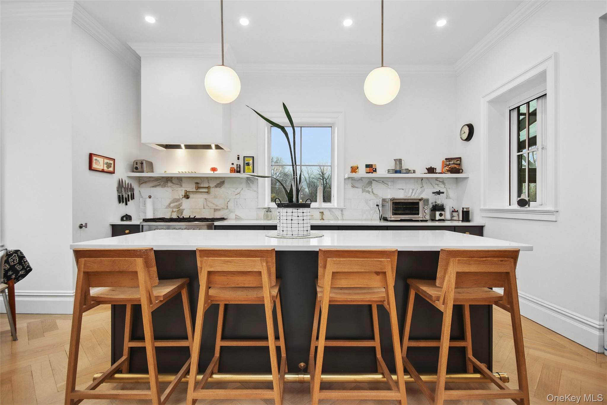 Gorgeous and unique 1800’s Second Empire brick Victorian on landscaped corner lot just blocks from Main St. in Beacon. This three story brick beauty stands tall and stately complete with charming tower, 5 bedrooms, 3. 5 baths, conservatory and 2 car garage. With a meticulous gut renovation in 2021, this house has all the modern conveniences and efficiency of a new house but with the charm and classic details of a historic house. The first floor has 10’ ceilings, white oak herringbone floors throughout, beautiful original pocket doors, a gas fireplace, gourmet chef's kitchen, living room, dining room, powder room and a welcoming conservatory with sweeping mountain views and a walkout deck. The upper floor has a primary suite including the top of the tower, a large bathroom, and walk in closet as well as two additional bedrooms and a full bathroom. The walkout lowest level includes 2 bedrooms, full bathroom, mudroom with laundry and a large 2 car garage with fast EV chargers. There is also a laundry shoot bin collecting from each of the two floors above. This house is energy efficient with a 3 zone Geothermal heating/cooling system, spray foam insulation, an ERV, and an 80-gallon heat pump hot water heater. The conservatory, garage and mudroom are an addition to the original house built during the complete restoration of the entire house in 2021. The conservatory has its own heating and cooling heat pump system as well as automatic glass louvres that open and close with temperature conditions. Other features from the 2021 renovations include an EPDM roof with a 20-year warranty, Windsor wood clad windows, and 400-amp electrical service.