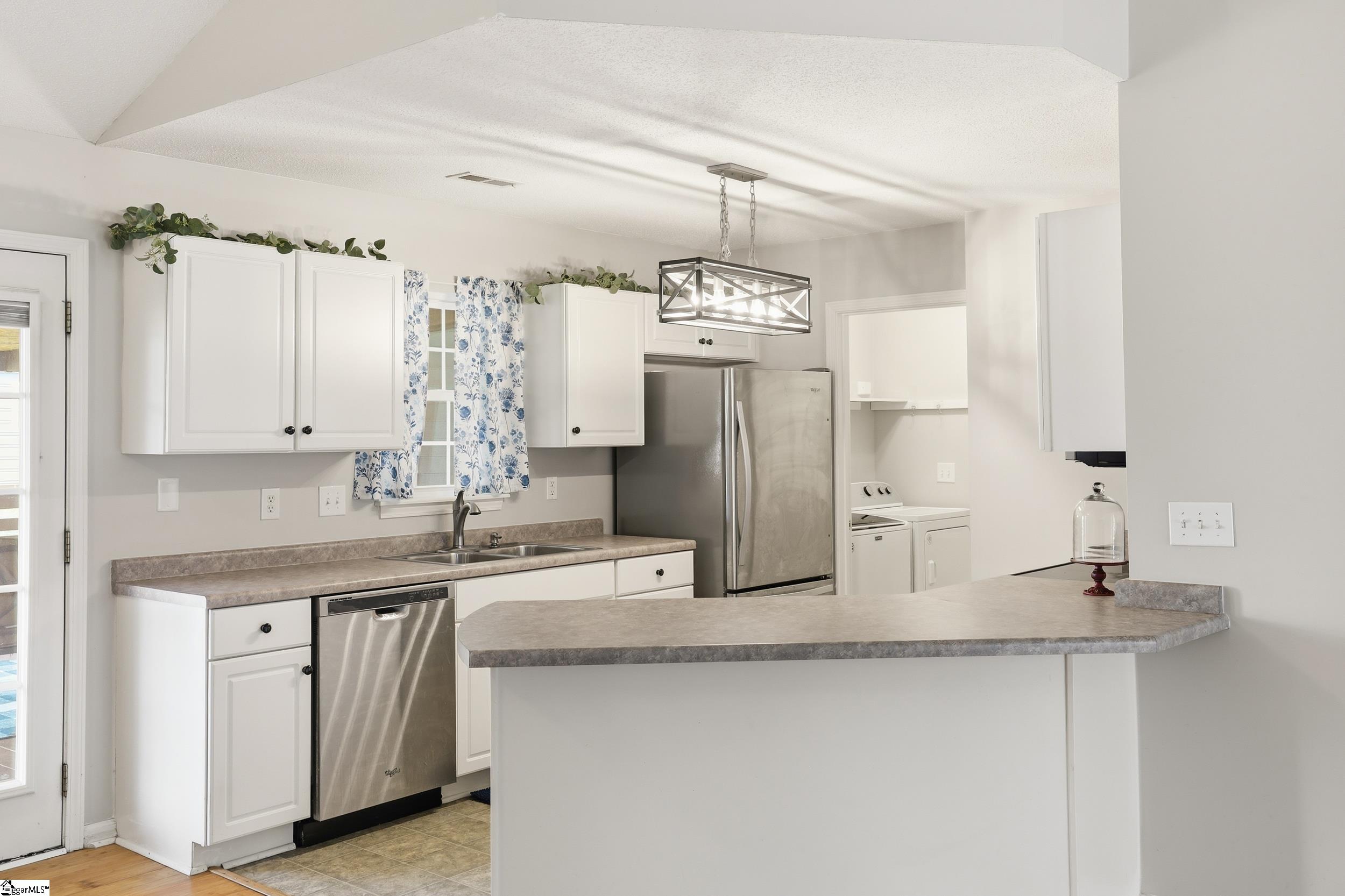 Welcome home to this charming 3 bedroom, 2 bathroom one-level home featuring a desirable split floor plan, perfectly situated in a well-established neighborhood. The property sits on a spacious, level lot and features a newly fenced backyard along with a large workshop with electricity, making it ideal for hobbies, storage, or projects. A welcoming walkway leads to the covered front stoop, offering easy entry into the home. Inside, you'll find a bright open-concept floor plan highlighted by vaulted ceilings, neutral tones, and beautiful engineered bamboo flooring. The spacious living room easily accommodates large seating arrangements and flows seamlessly into the dining area and kitchen, creating a perfect layout for everyday living and entertaining. The kitchen features a convenient bar overlooking the living room and comes fully equipped with all appliances, including the washer and dryer located in the adjacent laundry room. Just off the kitchen, step outside to the large covered back deck - an ideal space for relaxing, entertaining guests, enjoying hobbies, or letting kids and pets play in the fully fenced yard. The home’s thoughtful split-bedroom layout provides privacy, with two bedrooms and a full hall bathroom located on one side of the home. On the opposite side, the owner’s suite offers a walk-in closet and a spacious en-suite bathroom featuring a step-in shower and garden jetted tub, perfect for unwinding after a long day. LOCATION!!! This home is just 8 minutes from thriving downtown Seneca, where you can enjoy charming shops, restaurants, and local events like Thursday night Jazz on the Alley. ONLY 9 minutes to a public boat ramp on Lake Hartwell, 12 minutes to all major shopping on Sandifer Blvd, 12 minutes to Clemson University, and an easy day trip to the mountains to see waterfalls and go hiking.