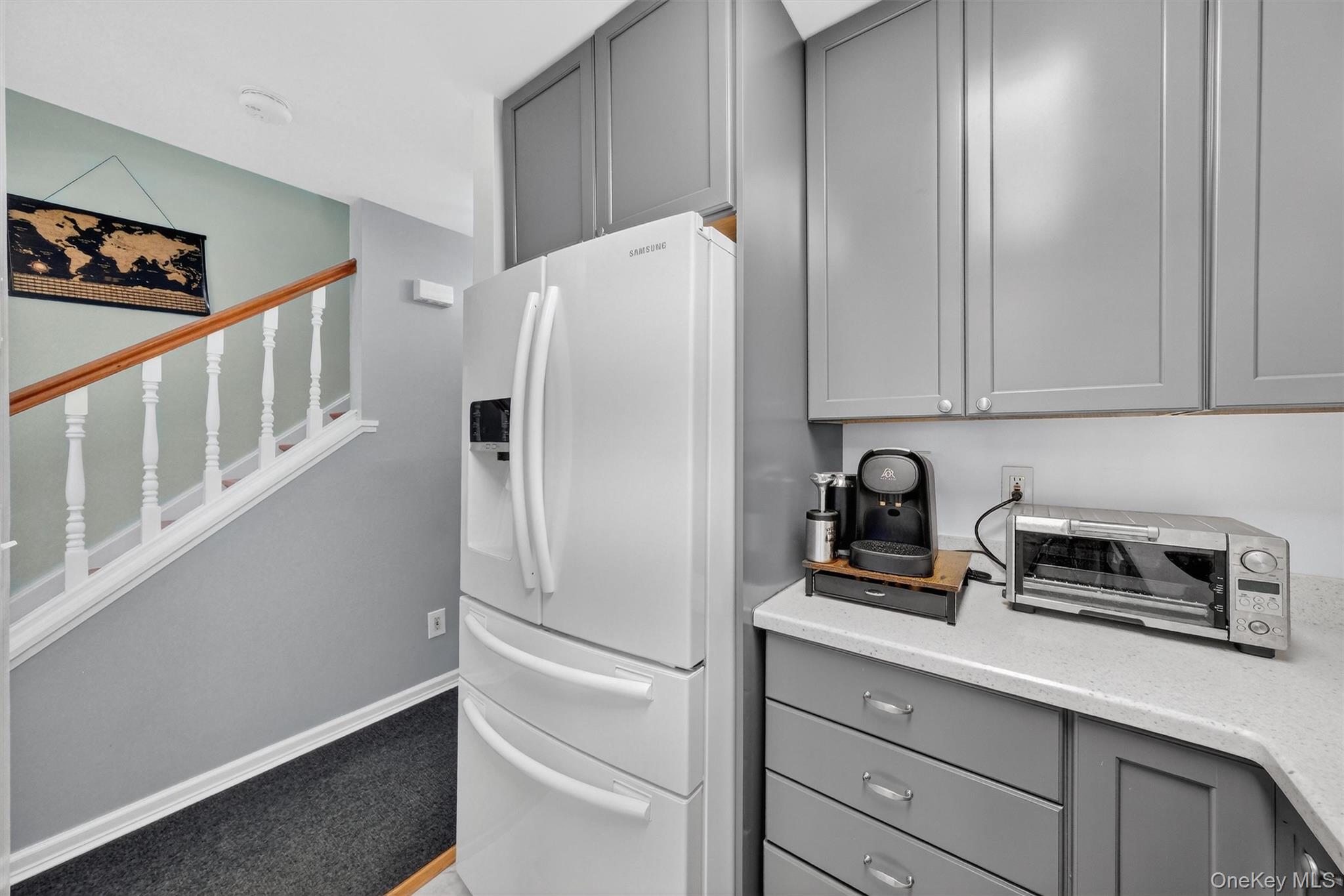 Welcome to this beautifully updated tri-level townhome in the highly sought-after Covington Green community. Step inside to a welcoming entryway that opens to a spacious, light-filled living and dining area featuring a cozy fireplace and sliding glass doors leading to the deck - perfect for relaxing or entertaining. The updated kitchen and a convenient powder room complete the main level. Upstairs, you'll find a generous primary bedroom suite with a full bath, along with a second large bedroom and an additional full bathroom, offering comfort and privacy for family or guests. The finished lower level provides additional living space and includes a laundry area and ample storage. Residents of Covington Green enjoy community amenities including a playground and pool. Ideally located close to the train, shopping, schools, and major highways, this home offers both comfort and convenience.