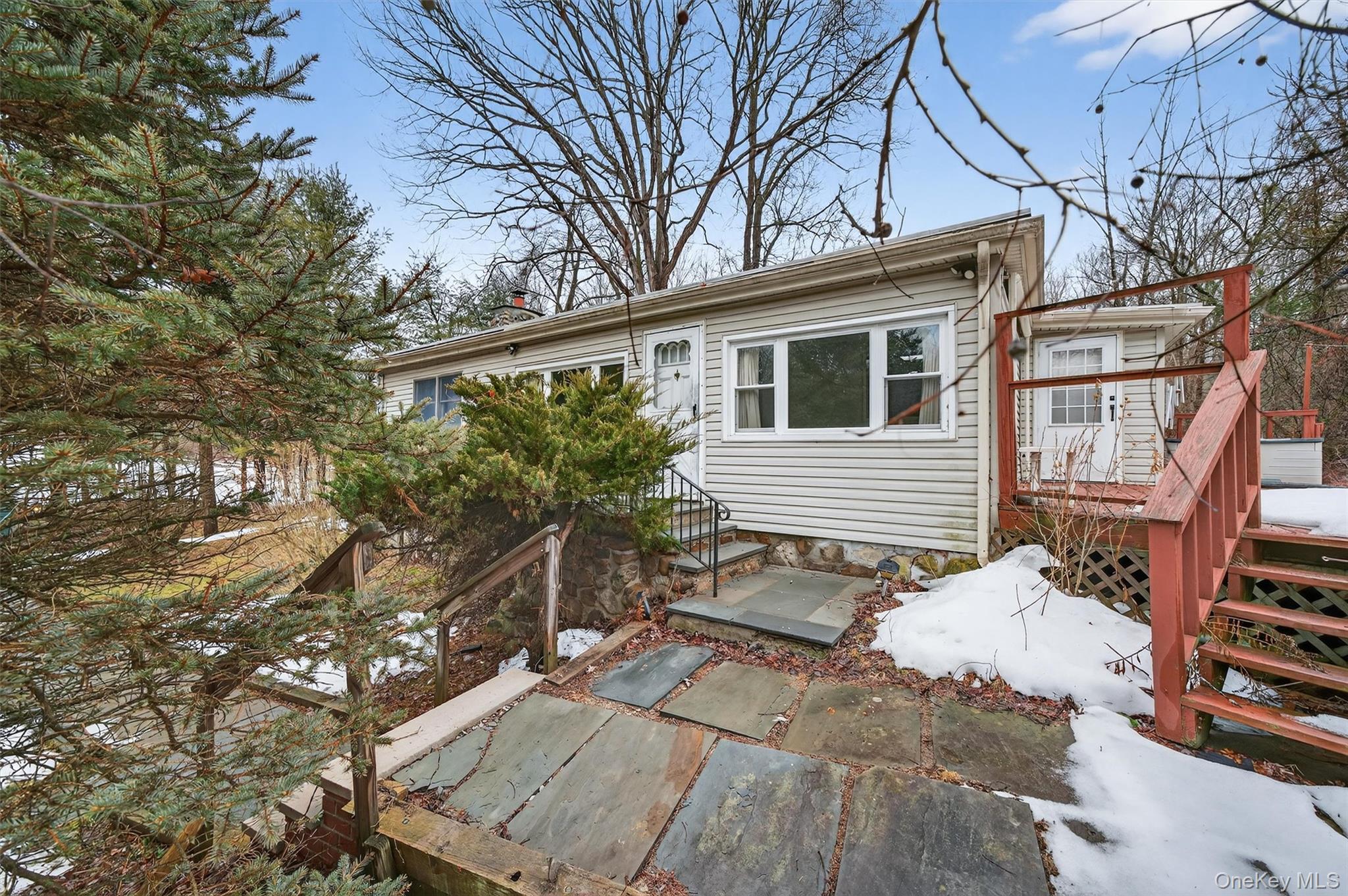 Looking for a solid built home with great bones and a lot of space in the Warwick School District? This spacious ranch home is waiting for your modern touches. Built strong, this home is in need of some cosmetic updates but you can live in the home and enjoy it as you go. This home offers 2 bedrooms (plus a den) and a full bath. The kitchen makes every square inch count with ample storage and counter space. The dining room area radiates hospitality. Enjoy lazy summer afternoon on the back deck. There is a beautiful stone staircase that leads down to the creek. There is also a studio with fireplace over the detached garage which could be used as an “at home” office, or hobby room. Bring in your offer.