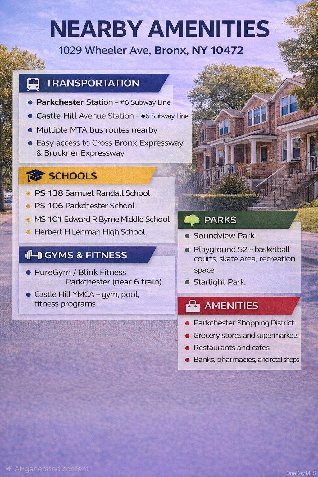Welcome to 1029 Wheeler Ave, a solid legal two-family brick home offering flexibility for both homeowners and investors. The upper unit features 3 bedrooms and 2 full bathrooms, along with a comfortable living room and dining room, kitchen creating a functional layout for everyday living. The first-floor unit offers 1 bedroom and 1 full bathroom, ideal for rental income, extended family, or guest space. This home also features hardwood floors and a private driveway with one-car parking, one finished shed with a lot of possibilities, backyard providing added convenience in the city. Located in a well-connected Bronx neighborhood, the property is close to the #6 subway line, multiple bus routes, and major highways including the Cross Bronx and Bruckner Expressways, making commuting throughout NYC easier. Nearby amenities include shopping centers, restaurants, parks, schools, and local services, adding to the everyday convenience of this location. Whether you're looking to live in one unit and rent the other or add to your investment portfolio, this property offers a great opportunity in a convenient Bronx location. Can deliver vacant