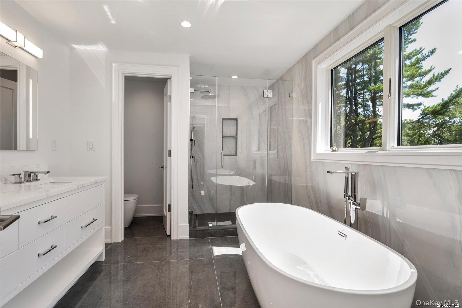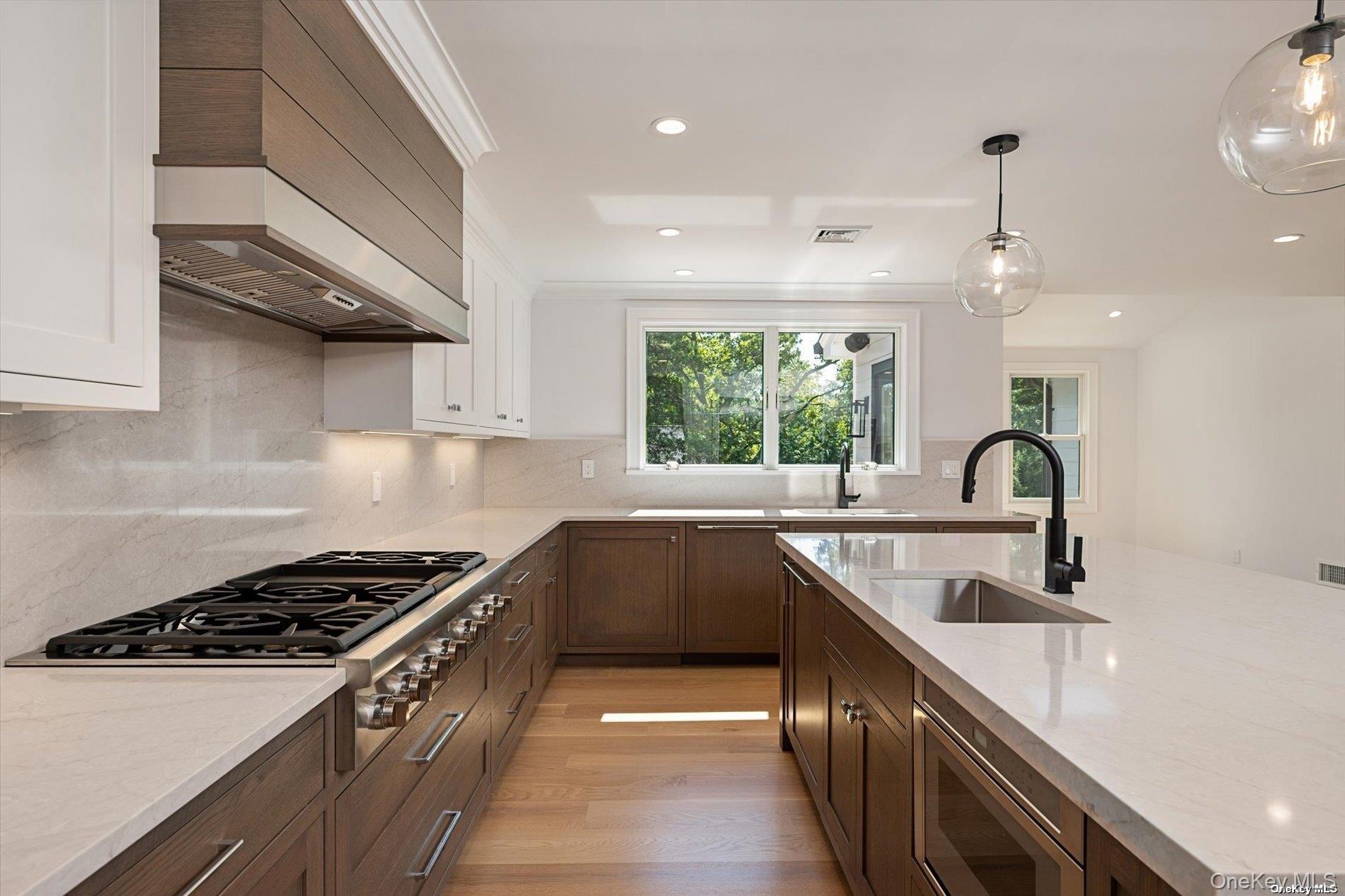 The Hamptons in Port Washington! A new construction masterpiece by an upscale Hamptons developer featuring 6 oversized en-suite bedrooms, 6. 5 Bathrooms and 7, 000+/- square feet of living space. Walk in to the double height foyer with glass rail staircase and 8 inch white oak plank flooring. Step out from the eat in kitchen onto the mahogany deck and appreciate the spectacularly landscaped oasis. The main floor boasts an open floor plan, light-filled living space that includes chefs kitchen, separate walk-in prep kitchen/pantry, Thermador appliance package with 2 refrigerators, 2 dishwashers, 2 sinks, double ovens, 6 burner gas rangetop, built-in coffee system, and wine cooler. It also includes a great room w/ fireplace, breakfast nook, formal dining room, living room, home office and en suite Bedroom. On the second floor, the primary bedroom complete with a luxury bath, sitting area and two large walk-in closets. 3 additional bedroom suites with walk-in closets and a laundry room with 2 washers and 2 dryers. The finished lower level is complete with a gym, wine storage, bonus room, full bathroom, mudroom, heated garage with car charger, and a huge open area with direct access to the covered bluestone patio and yard beyond. This home has been built with the highest level of craftsmanship and finishes. It's a must see! Port Washington Schools, South Salem Elementary.