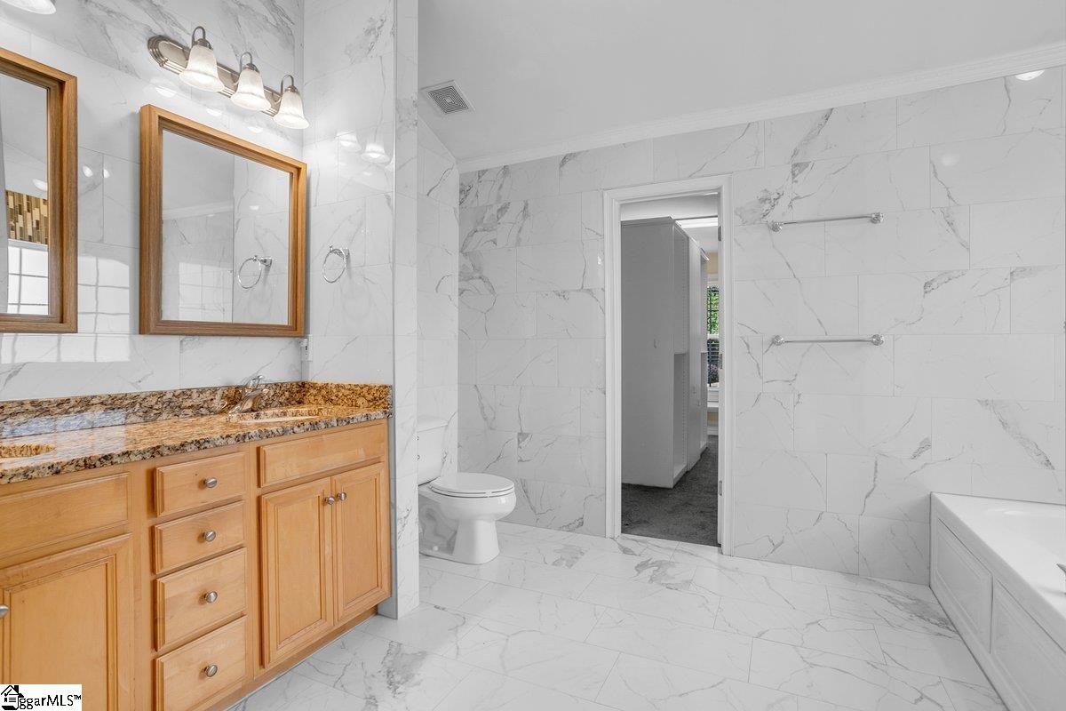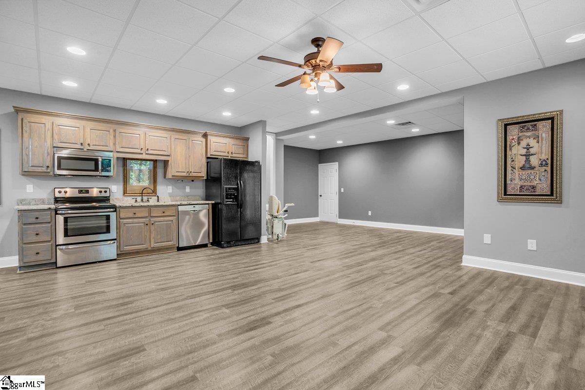 3 level custom-built GEM in Berkshire Park! It’s a 4, 450+ square feet two-story home with full walk-out basement featuring: 7 bedrooms, 4 full bathrooms, 2 full kitchens. and 2 laundry rooms. This home is ideal for a large family or multi-generational living, offering incredible flexibility. With a gorgeous green backdrop, all three levels of this home have wooded views and it backs up to Pebble Creek golf course. The tree-lined back yard offers a filtered view of the fairway. , while providing plenty of privacy. The main level and basement level both have covered porches which serve as peaceful retreats to enjoy year round. A grand two-story foyer welcomes you as you enter the home and gleaming hardwood floors lead down the hall to open concept living. This timeless kitchen features granite counters and stainless steel appliances, high quality cabinetry, and center island. The dining space is centered near the patio door creating an easy flow for entertaining and family gatherings. This magnificent home also boasts multiple living and dining Spaces: A formal dining room with trey ceilings and wainscoting, a formal living room or office with trey ceilings and lovely custom trim, the two-story great room with a stack stone fireplace that extends from floor to ceiling. One bedroom /full bath suite is located on the main level while upstairs features 3 secondary bedrooms, 2 full baths plus the spacious and private primary suite. This fantastic wing of the home includes a five piece bath and very large walk-in closet. Completing this level is one of the two laundry rooms, which is conveniently located just outside the owners suite. This magnificent home also boasts multiple living and dining Spaces: A formal dining room with trey ceilings and wainscoting, a formal living room or office with trey ceilings and lovely custom trim, the two-story great room with a stack stone fireplace that extends from floor to ceiling. The basement level Features a curved stair lift from the basement to the first floor: a handicap-accessible bathroom and wide doorways on the entire basement level. The basement also includes: a full kitchen with all appliances, laundry, it's own screened in porch, 2 bedrooms, 1 full handicap accessible bathroom, a flex room, living room, dining space, two large storage spaces and separate entrances. Whether you are a growing family just needing more space, needing a private teen suite or an elaborate in law suite, this home is sure to provide the space you need. Berkshire Park is just 3 miles from Paris Mountain State Park, a rural retreat for hikers and bikers. Its also just 1 mile from the Pebble Creek Country Club offering golf, pool, and tennis memberships. All appliances convey including both kitchen refrigerators and both washer/dryer sets. This unique property is combines luxury a warm and comfortable family home just waiting for its new owners to make their own memories.