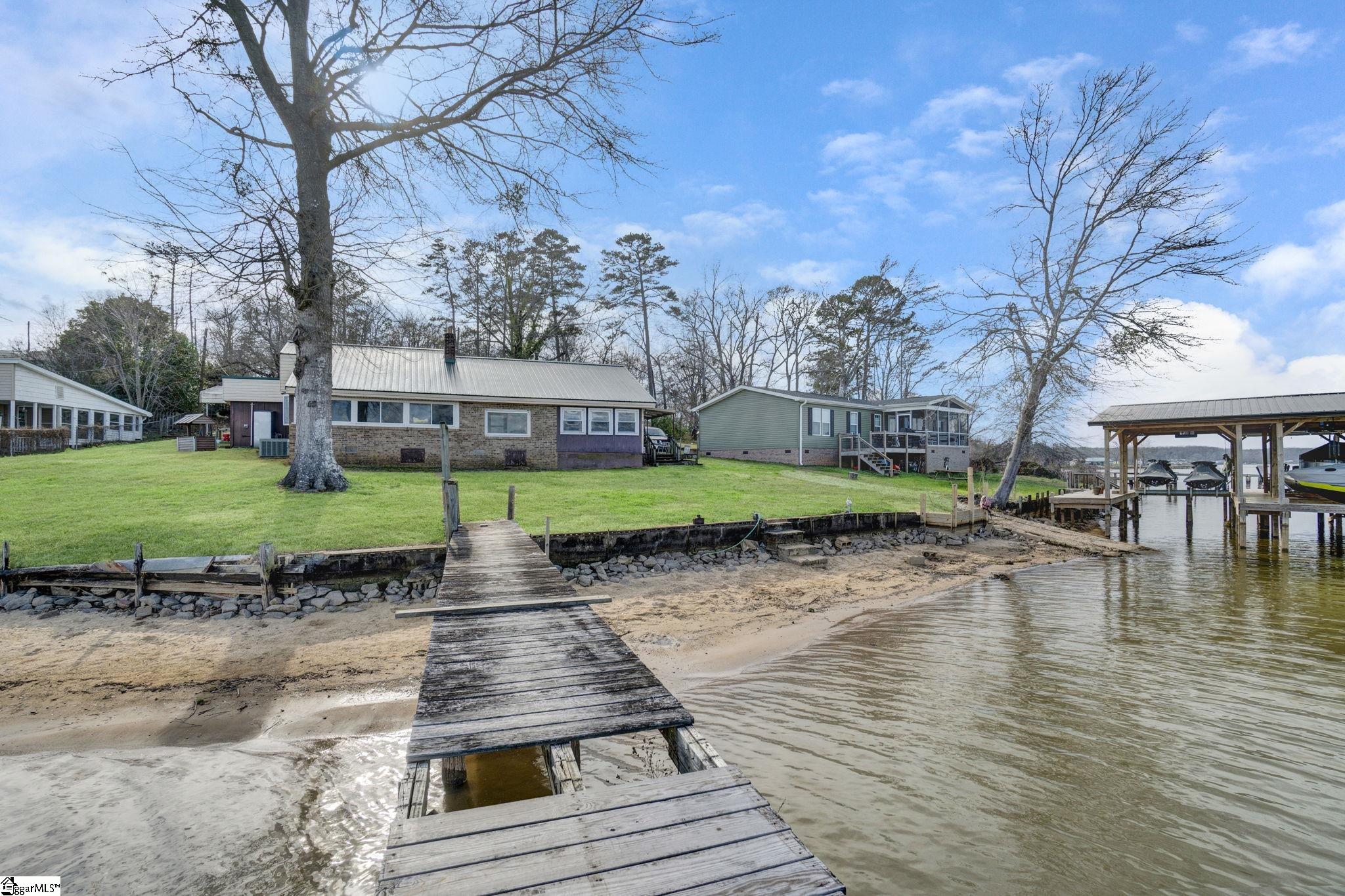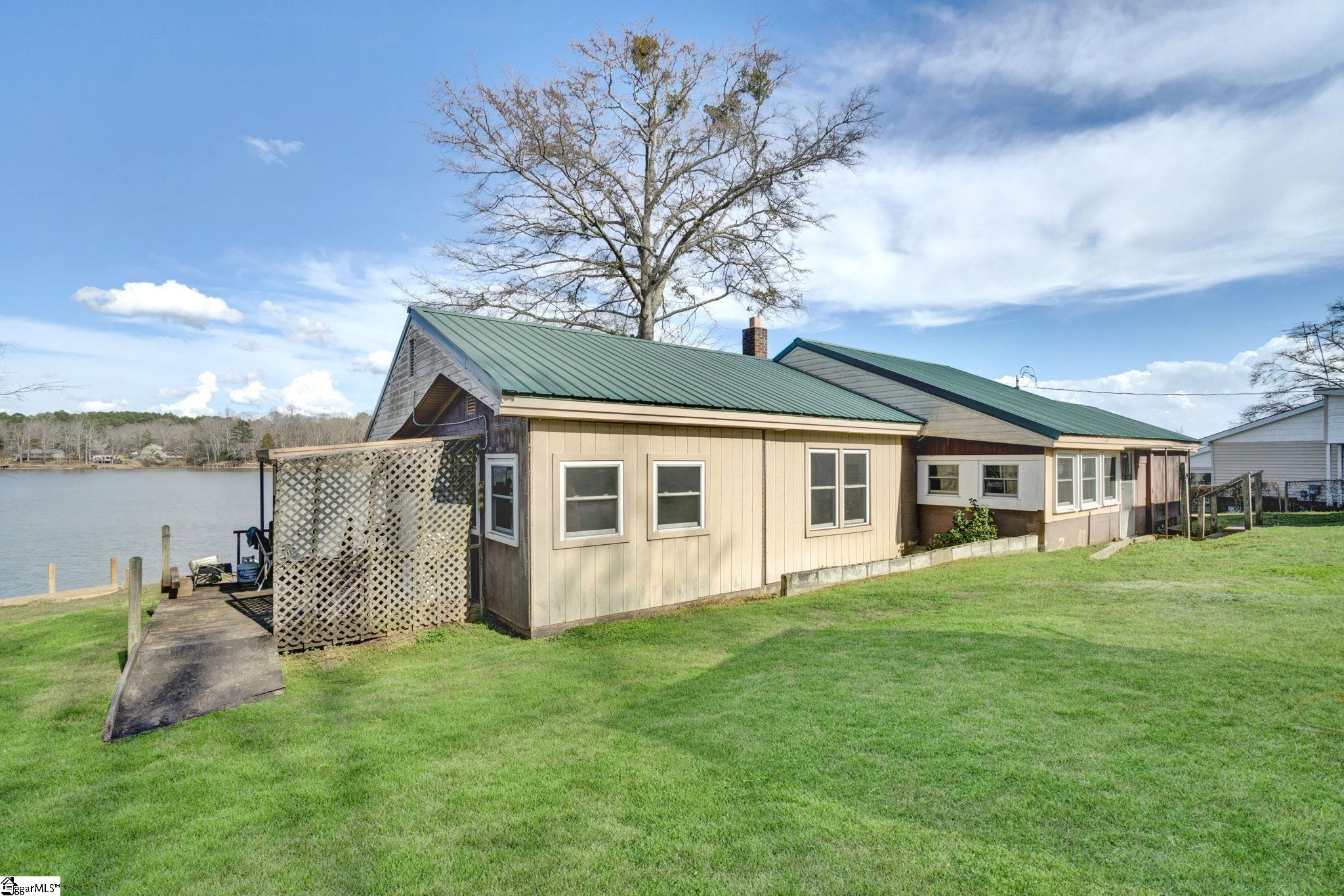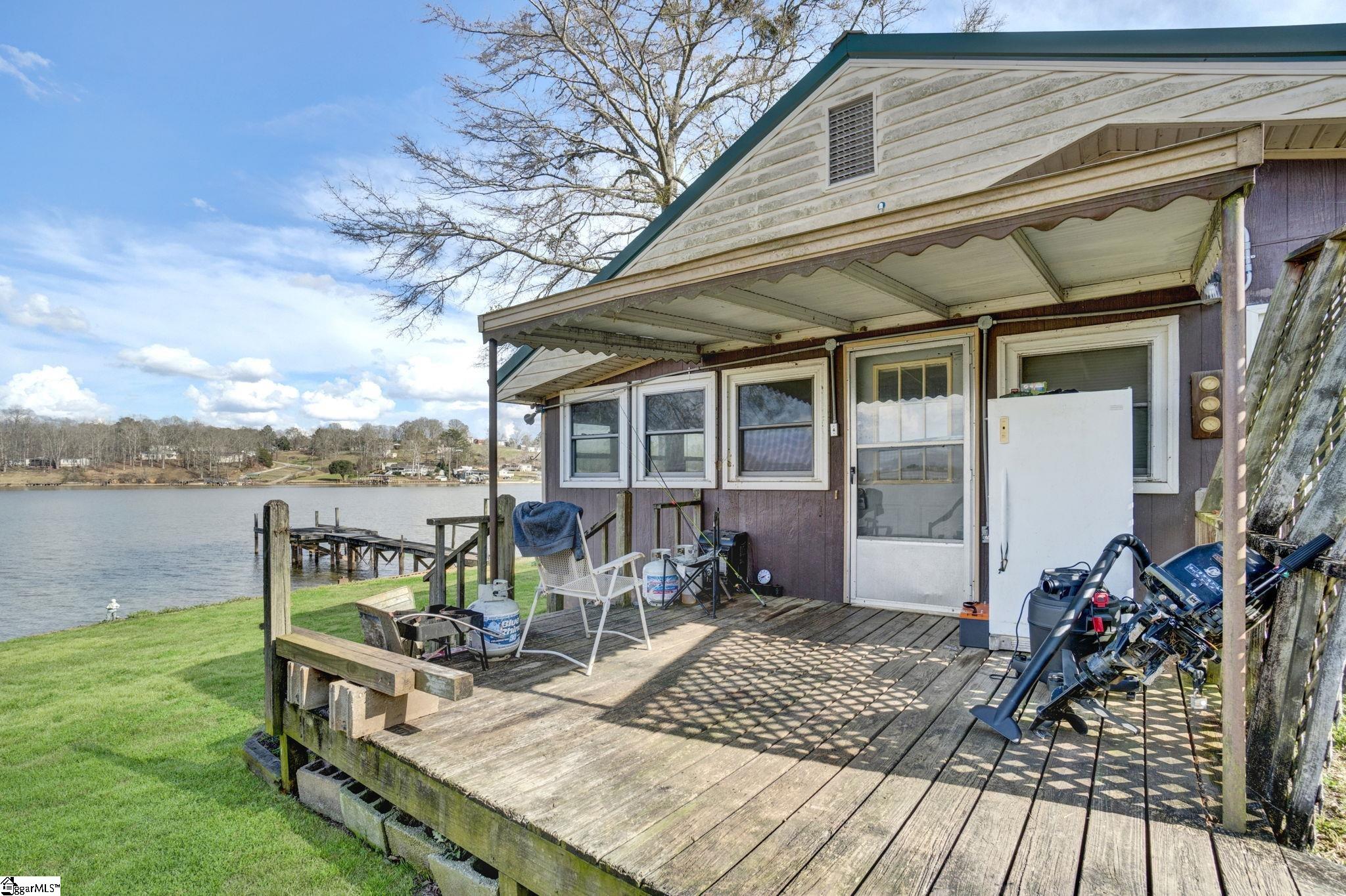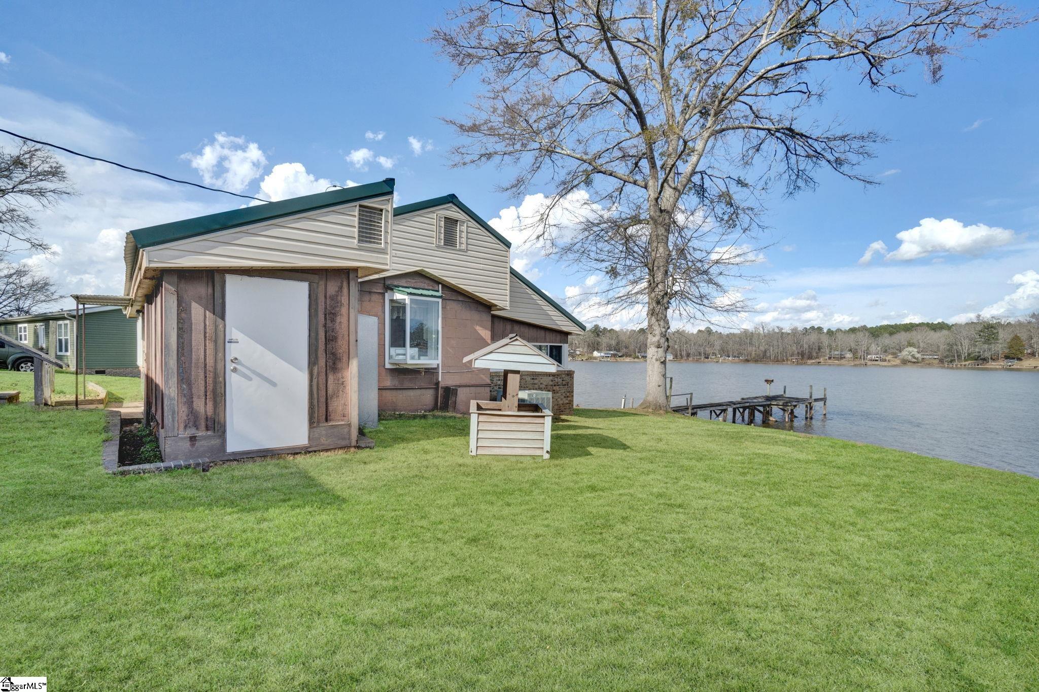 Wake up to peaceful water views and the slow rhythm of Lake Greenwood living at this charming lakefront retreat in Waterloo, SC. With 125 feet of wide channel frontage and year-round deep water, this property offers the kind of setting that makes lake life so special—morning coffee on the deck, afternoons spent boating or fishing, and evenings watching the sunset reflect across the calm water. The slightly sloping lot is perfectly positioned to capture long, serene views across the channel while still providing easy access to the shoreline. A retaining wall is already in place, and there is a dock on site ready for repair, giving you the opportunity to restore your private launch point for kayaking, fishing, swimming, and long days cruising the lake. The existing 2-bedroom, 1-bath home offers a cozy starting point with a covered deck overlooking the water, perfect for relaxing in the shade while enjoying the peaceful lake breeze. Renovate the current cottage into your ideal weekend getaway or take advantage of the beautiful homesite to build the custom lake house you’ve always imagined. Practical features include a large two-car carport and multiple outbuildings, providing plenty of storage for lake toys, tools, and outdoor gear. Located just 20 minutes from shopping and dining, you’ll enjoy the quiet, laid-back charm of Lake Greenwood while still being close to everyday conveniences. Whether you’re searching for a weekend escape, a fishing retreat, or the perfect site for your dream waterfront home, this property offers the space, views, and deep water that make lake living truly unforgettable.