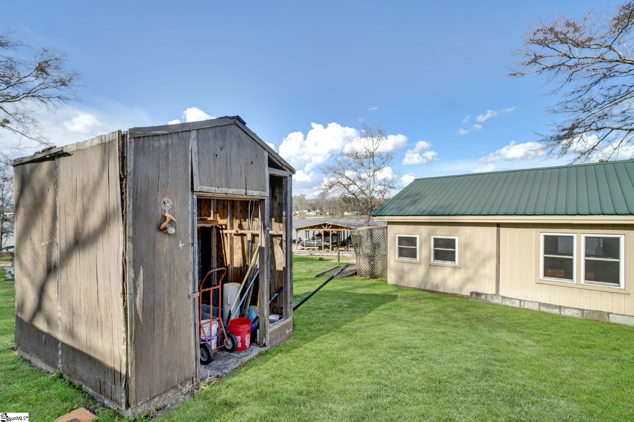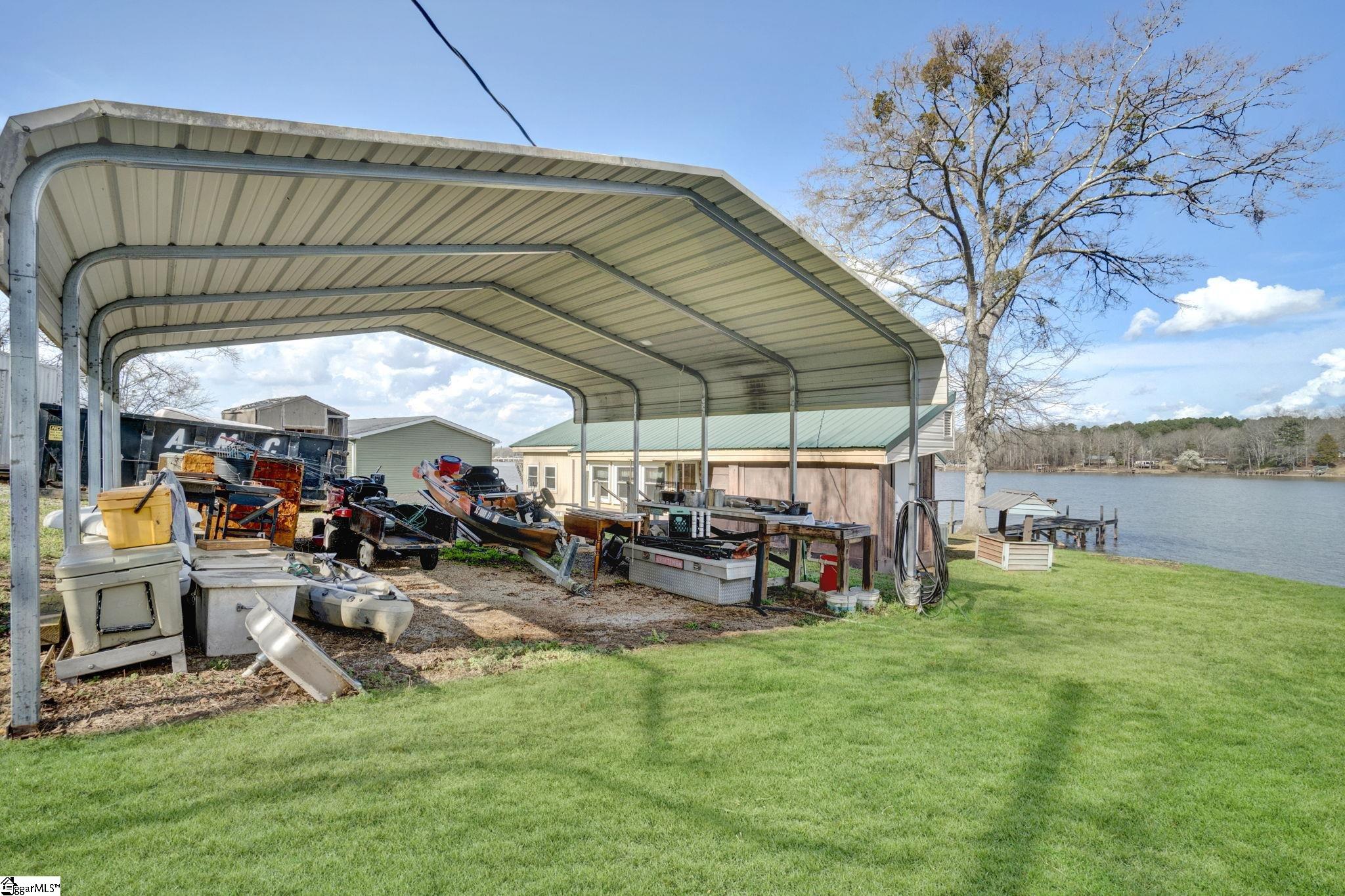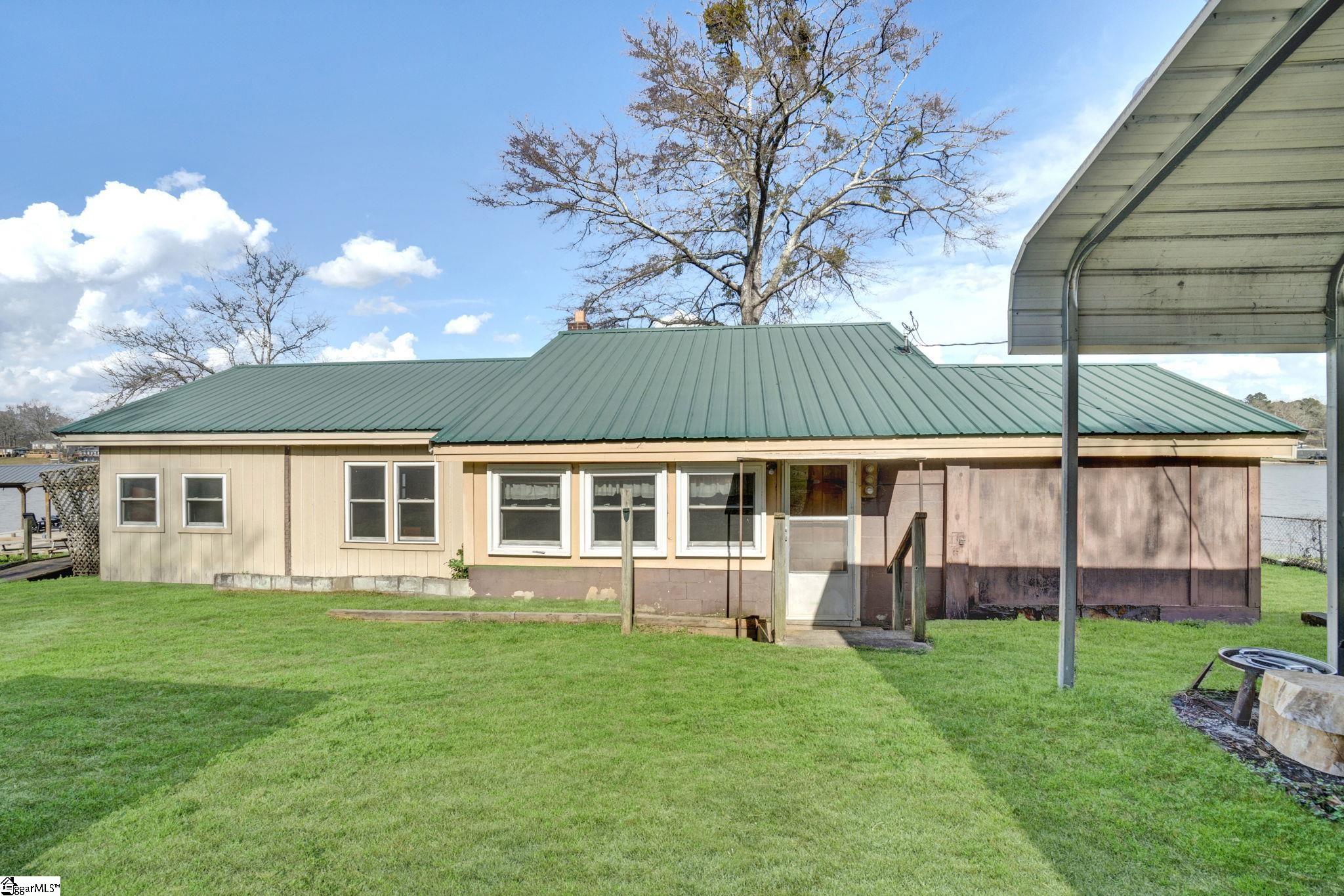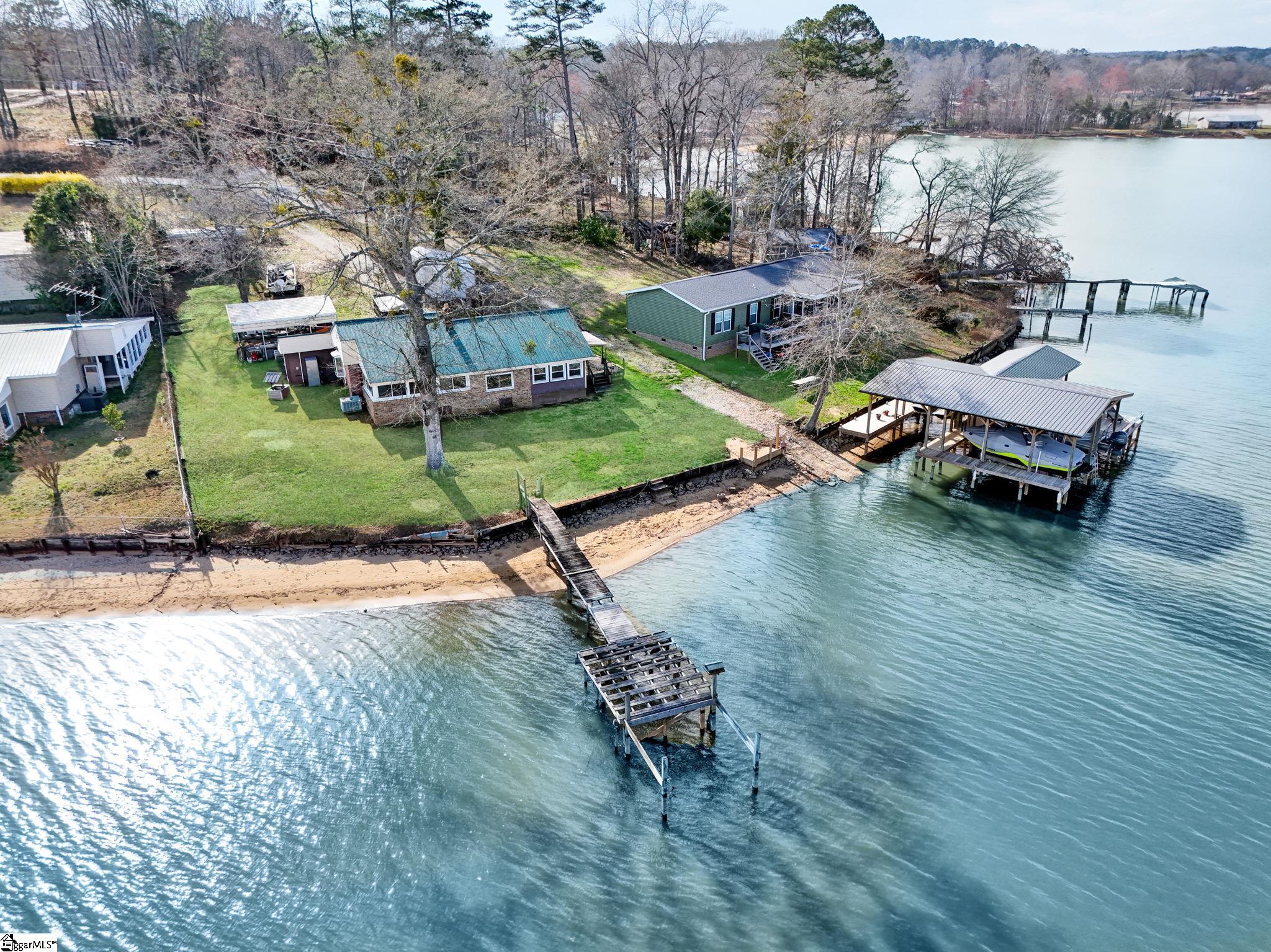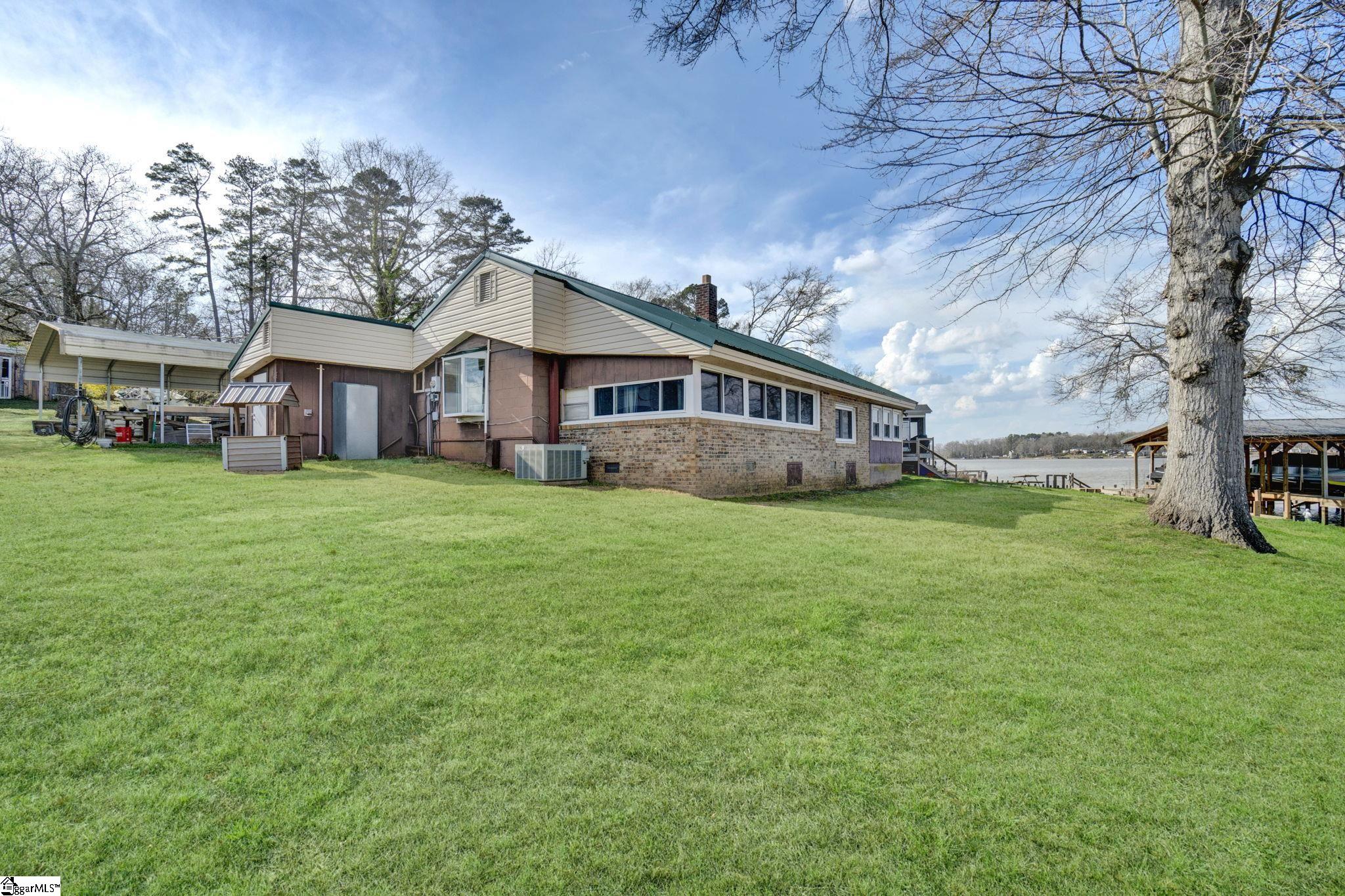 Wake up to peaceful water views and the slow rhythm of Lake Greenwood living at this charming lakefront retreat in Waterloo, SC. With 125 feet of wide channel frontage and year-round deep water, this property offers the kind of setting that makes lake life so special—morning coffee on the deck, afternoons spent boating or fishing, and evenings watching the sunset reflect across the calm water. The slightly sloping lot is perfectly positioned to capture long, serene views across the channel while still providing easy access to the shoreline. A retaining wall is already in place, and there is a dock on site ready for repair, giving you the opportunity to restore your private launch point for kayaking, fishing, swimming, and long days cruising the lake. The existing 2-bedroom, 1-bath home offers a cozy starting point with a covered deck overlooking the water, perfect for relaxing in the shade while enjoying the peaceful lake breeze. Renovate the current cottage into your ideal weekend getaway or take advantage of the beautiful homesite to build the custom lake house you’ve always imagined. Practical features include a large two-car carport and multiple outbuildings, providing plenty of storage for lake toys, tools, and outdoor gear. Located just 20 minutes from shopping and dining, you’ll enjoy the quiet, laid-back charm of Lake Greenwood while still being close to everyday conveniences. Whether you’re searching for a weekend escape, a fishing retreat, or the perfect site for your dream waterfront home, this property offers the space, views, and deep water that make lake living truly unforgettable.