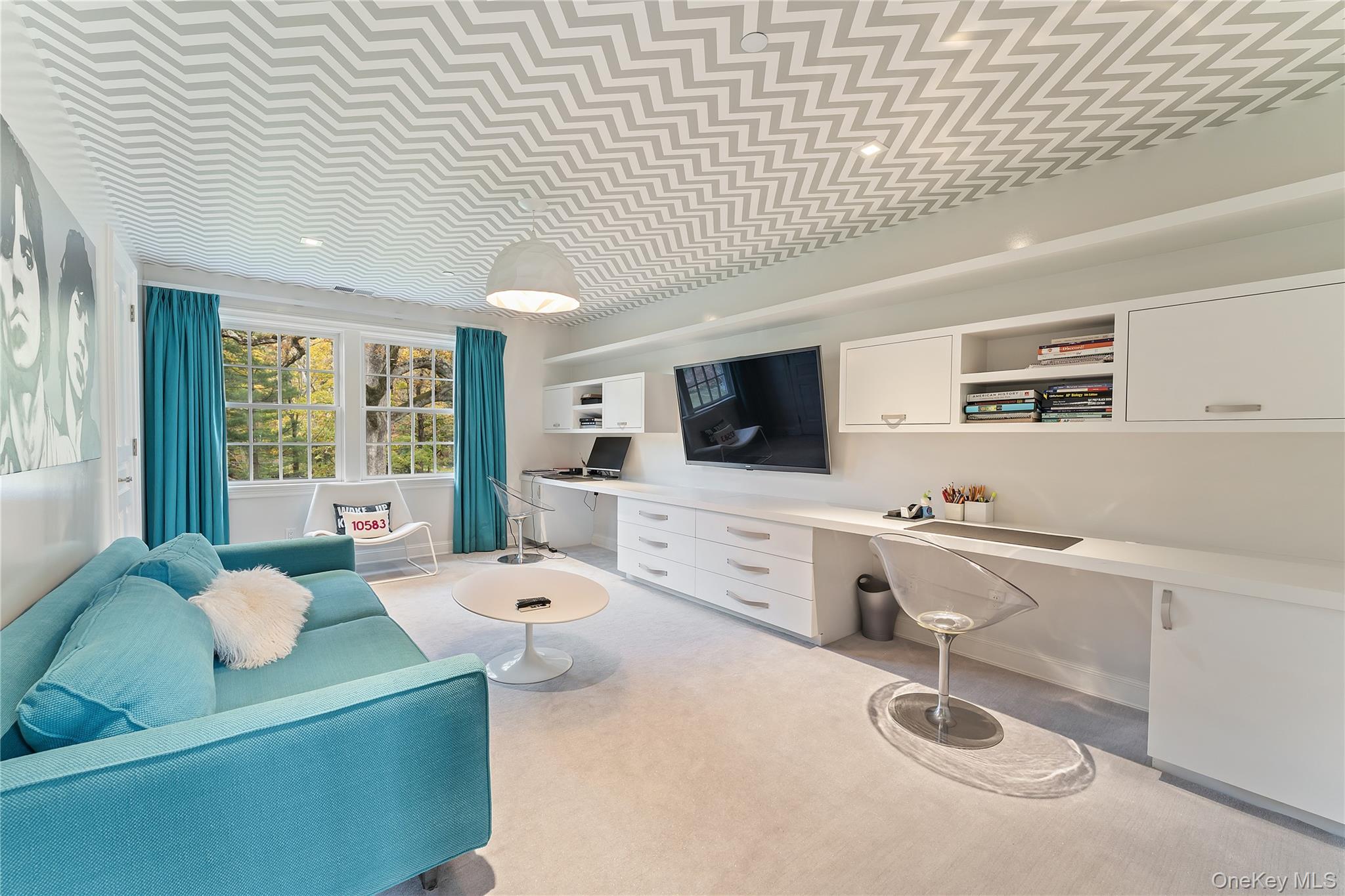 Set on a beautifully landscaped acre in the coveted Murray Hill estate section of Heathcote, this classic 1927 Colonial, completely reimagined and redesigned in 2003 by Monica Fried Design, is a six-bedroom, 7, 700-square-foot residence of exceptional scale and livability. The grounds, designed by James Doyle Design Associates, begin with a gravel drive, sweeping lawn, and layered gardens connected by flagstone walkways. The rear property centers around an architecturally designed pool with integrated hot tub and electric cover, surrounded by expansive stone terraces, an outdoor kitchen and dining area with a stone gas fireplace, and a built-in TV lounge - creating a seamless extension of the home for effortless entertaining. Hydrangea borders, perennial gardens, and sculpted hedges frame the setting, while beautifully executed stonework adds structure and refinement throughout. Front and backyard landscape lighting creates an inviting ambiance for evening entertaining. Inside, the entertaining flow is just as impressive. The Christopher Peacock chef’s kitchen anchors the main level and features three sinks, two dishwashers, Sub-Zero refrigeration, a wine fridge, warming drawer, pull-out pantry, and six-burner Wolf range with Thermador ovens. A separate breakfast room includes a built-in desk area, custom cabinetry, refrigerator drawers, and sliding doors that open directly to the outdoor built-in BBQ and dining terrace. The formal entertaining rooms are both warm and expansive: a gracious dining room with French doors to the patio flows seamlessly into a magnificent living room with triple-exposure windows, a stone fireplace, and abundant natural light. Walls of windows frame the surrounding foliage, filling the space with brightness and beautiful views. The living room continues into a refined study with custom built-ins and French doors that open to a private terrace. A first-floor guest suite adds flexibility for visitors. Upstairs, the second floor offers five bedrooms and four full bathrooms, including French doors that open to a wonderful balcony overlooking the private backyard, along with a laundry room and generous storage. The third floor features a recreation room with a half bathroom and bar kitchen, complete with a dishwasher, wine fridge, and ample storage. The fully finished lower level offers 9-foot ceilings, a gym, half bath, second laundry room, and wine cellar. Modern systems include a Lutron lighting system throughout, six-zone Honeywell HVAC system with remote programming capability, a driveway alarm, and whole-house generator. Private and estate-like in scale, this home delivers exceptional indoor-outdoor living in one of Heathcote’s most sought-after enclaves.