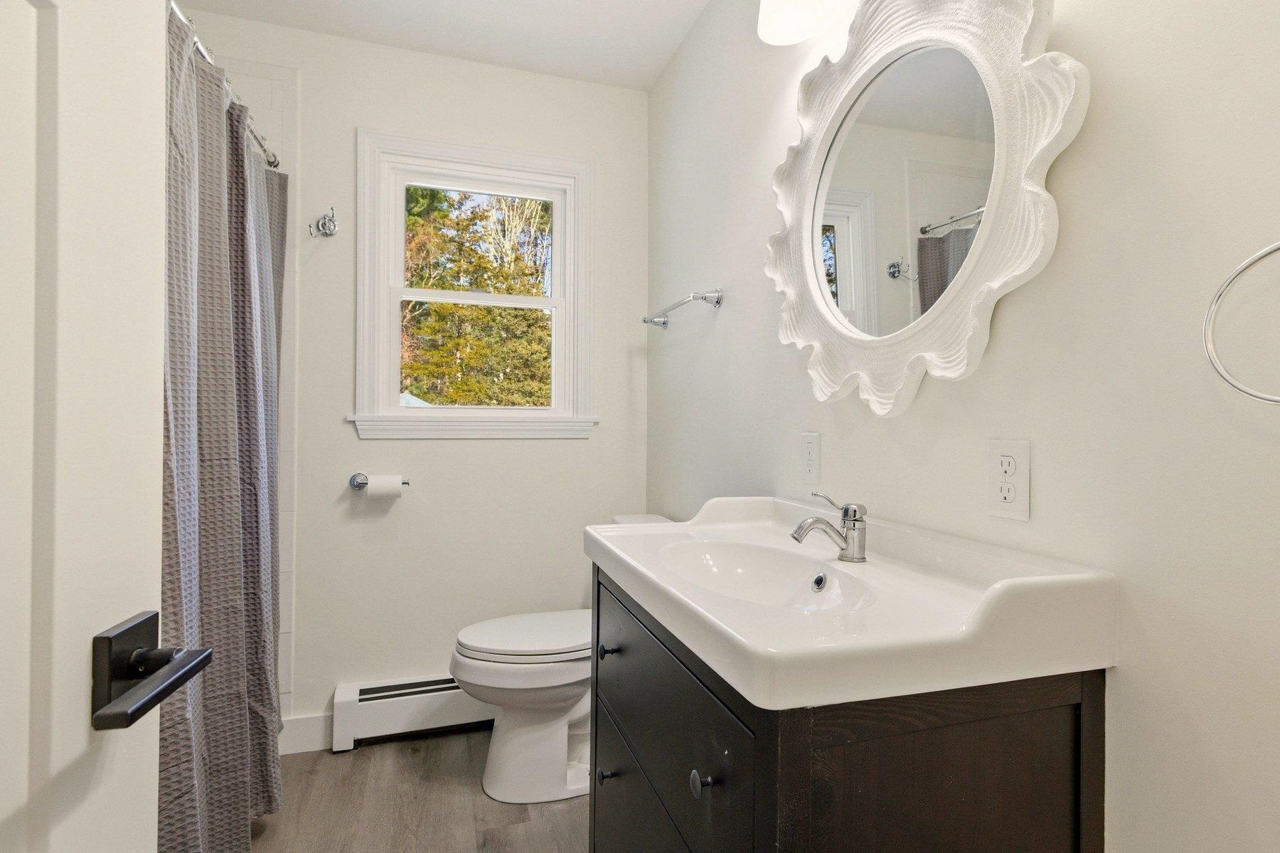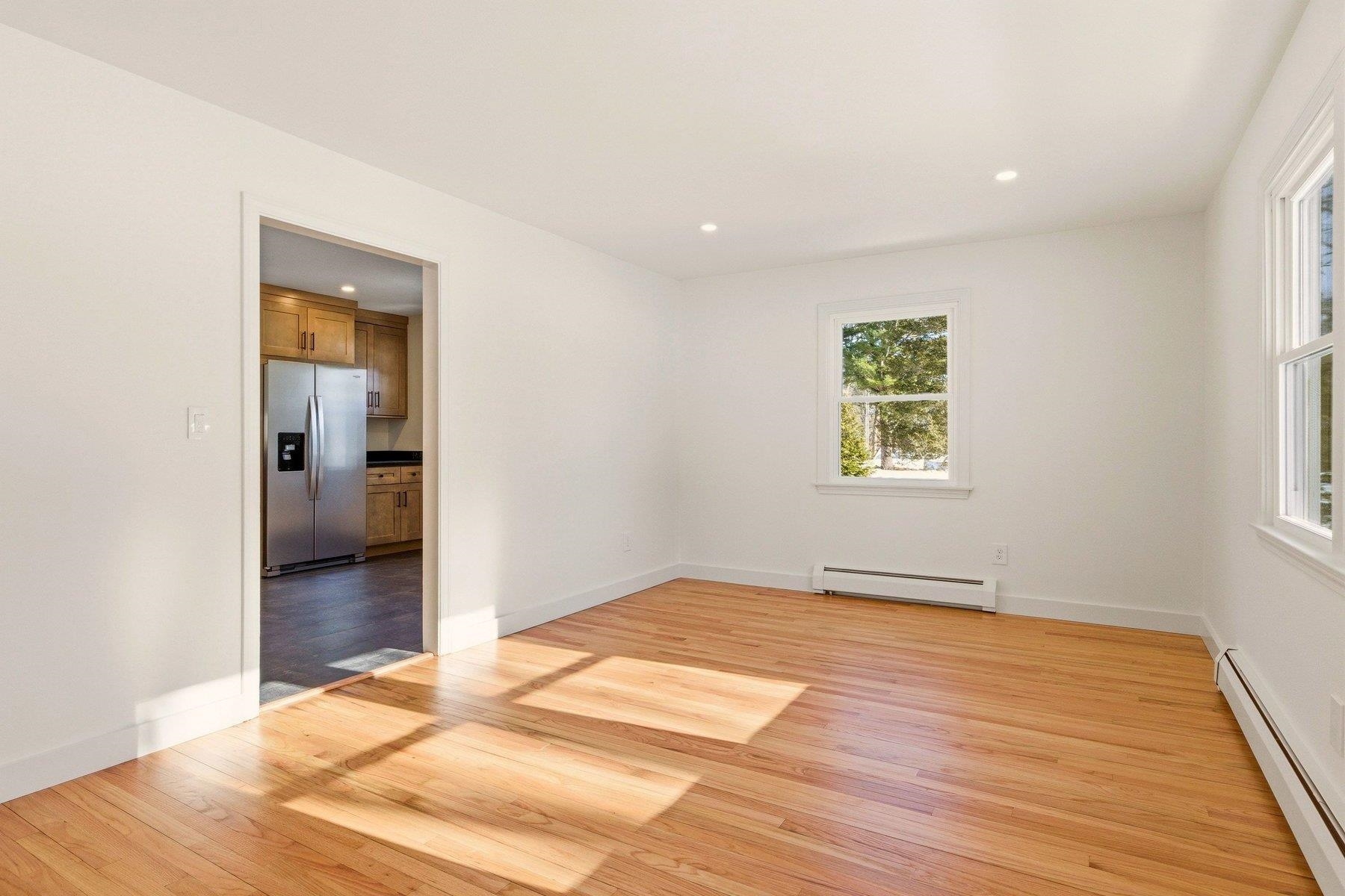 BEAUTIFULLY UPDATED- Renovations have just finished at this immaculate, turnkey 4-bedroom, 1-bath single family home w/two car detached garage. Set in a desirable neighborhood on a phenomenal 1. 3-acre lot, WALKING DISTANCE to Stratham Memorial Elementary School and the Stratham Hill Park trail system, a great commuter location w/easy access to Routes 33, 108 and 101. Inside you will find spacious sunny rooms loaded with natural light. The main floor boasts a new eat-in kitchen w/leathered granite tops, soft close cabinetry and a suite of Whirlpool stainless appliances. Completing the first floor is a renovated full bath with tub, a spacious living room and two comfortable bedrooms. Upstairs are two additional bedrooms with ample closet space. Recent updates include fresh interior/exterior paint, refinished oak hardwood flooring, new recessed lighting, new doors & hardware, new baseboard trim and efficient vinyl windows. The unfinished basement offers a laundry area, excellent storage and workshop space. Outside, you will find a fenced rear yard and plenty of room to garden and play. One dog may be considered for an increased rental fee of $100 per month, sorry no cats. Tenants are responsible for electricity, cable, internet, heating fuel (Oil), lawn and snow removal. 12-month minimum lease, credit & background check required, no smoking property. Set up your private tour today!
