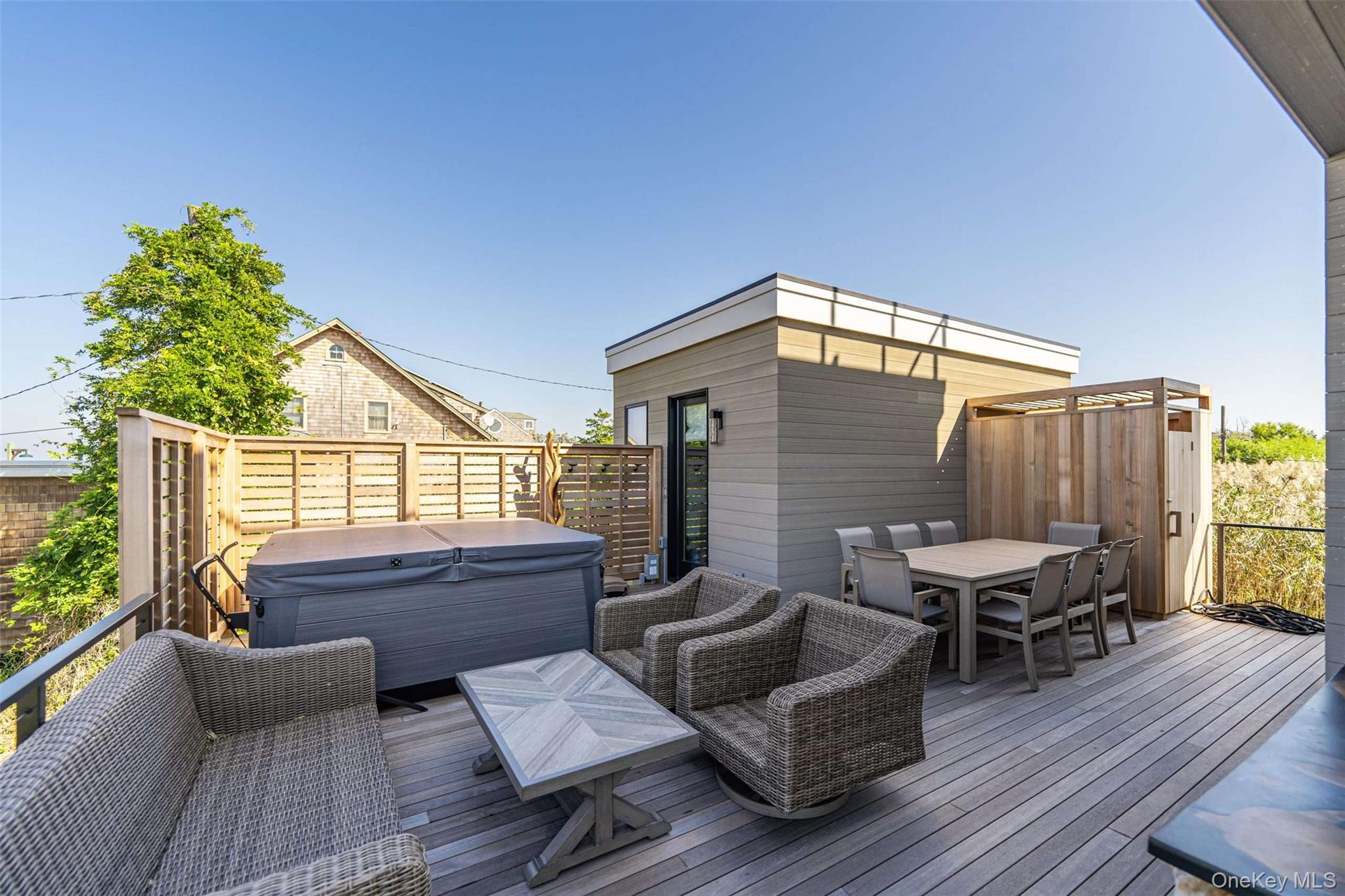 Rent is $15, 000/week NOT month. This newly constructed home is beautifully decorated throughout and offers the perfect blend of luxury and comfort. The open floor plan features a gorgeous chef’s kitchen with island seating for four, along with a separate dining area complete with a wine bar—perfect for entertaining. The main residence includes four bedrooms: two with king-size beds, one with a queen-size bed, and one with a queen bed and a twin trundle. The home also offers three full bathrooms and one half bath. The first-level deck provides access to a hot tub, creating the perfect space to relax after a day at the beach. An outdoor shower adds convenience, and a separate guest house that has a king-size bed and a half bath. There are three levels of decking, including a rooftop deck with sensational sunsets & Bay views. There is also access to Bay Beach Amenities & Tennis Courts for an additional fee. Conveniently located close to the Village of Ocean Beach, where you will find a variety of restaurants & shops.