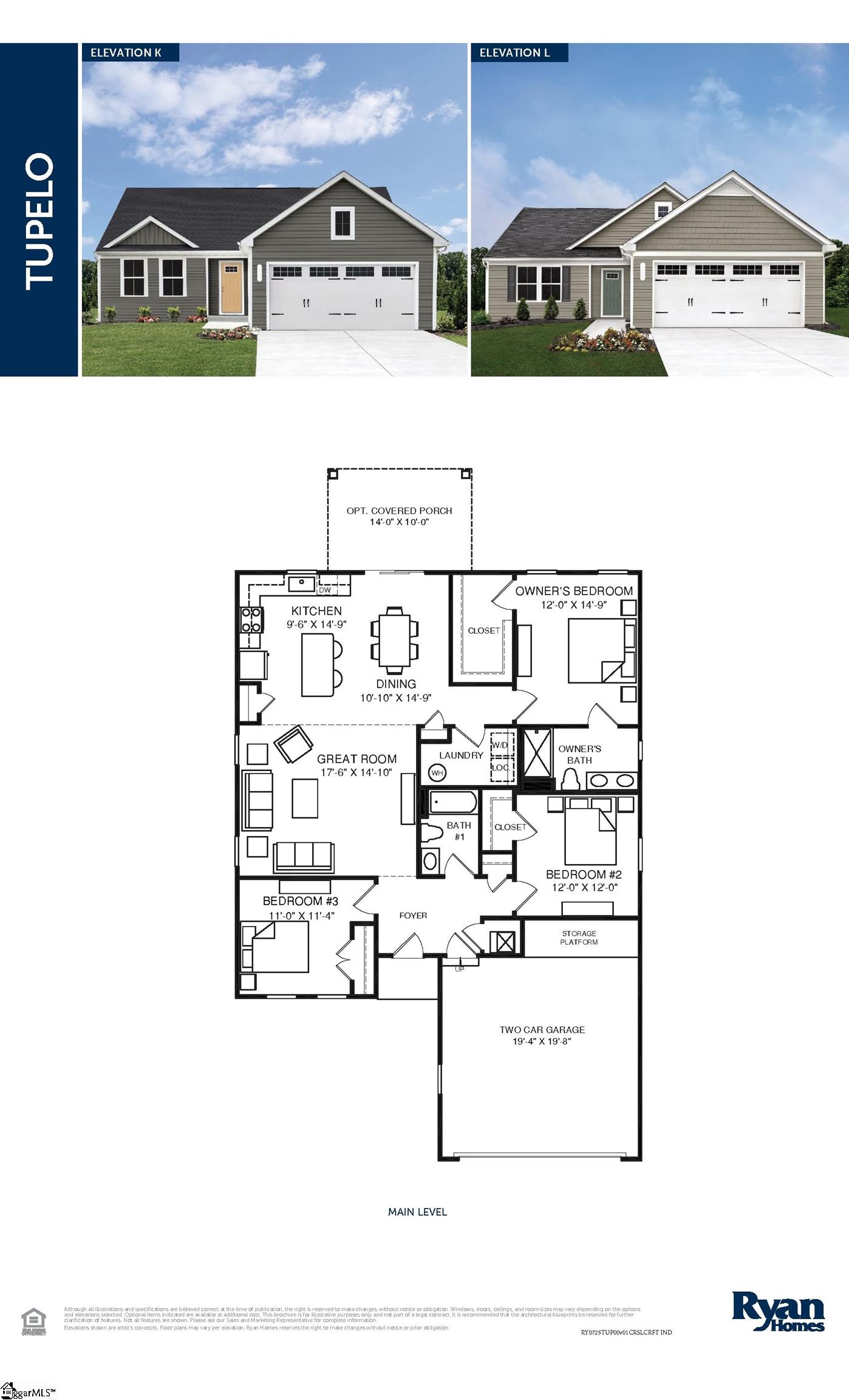 The Tupelo is a 2-car garage ranch home that provides style and space. The entry foyer directs your eye toward the light-filled great room, while providing access to two bedrooms and a hall bath. Convert the 3rd bedroom into a flex space or home office. The great room flows into the gourmet kitchen and dining area, ideal for entertaining. The laundry with an optional tub sits just off the owner’s suite. Inside the master suite, you’ll find an enormous walk-in closet and dual-vanity bath. Discover the ease of The Tupelo today. The open airy space combines the kitchen, dining area and great room to create a casual comfortable flow. This is the perfect place to do all your entertaining with plenty of room for your favorite overstuffed couch. Since it’s open to the kitchen, grab a snack or make dinner, you won't miss your favorite TV show. The Tupelo is the perfect home if you enjoy life's simple pleasures. Select from our professionally designed interior finishes with the help of our highly trained Sales Representative. You’ll love how easy it is to get the home of your dreams!