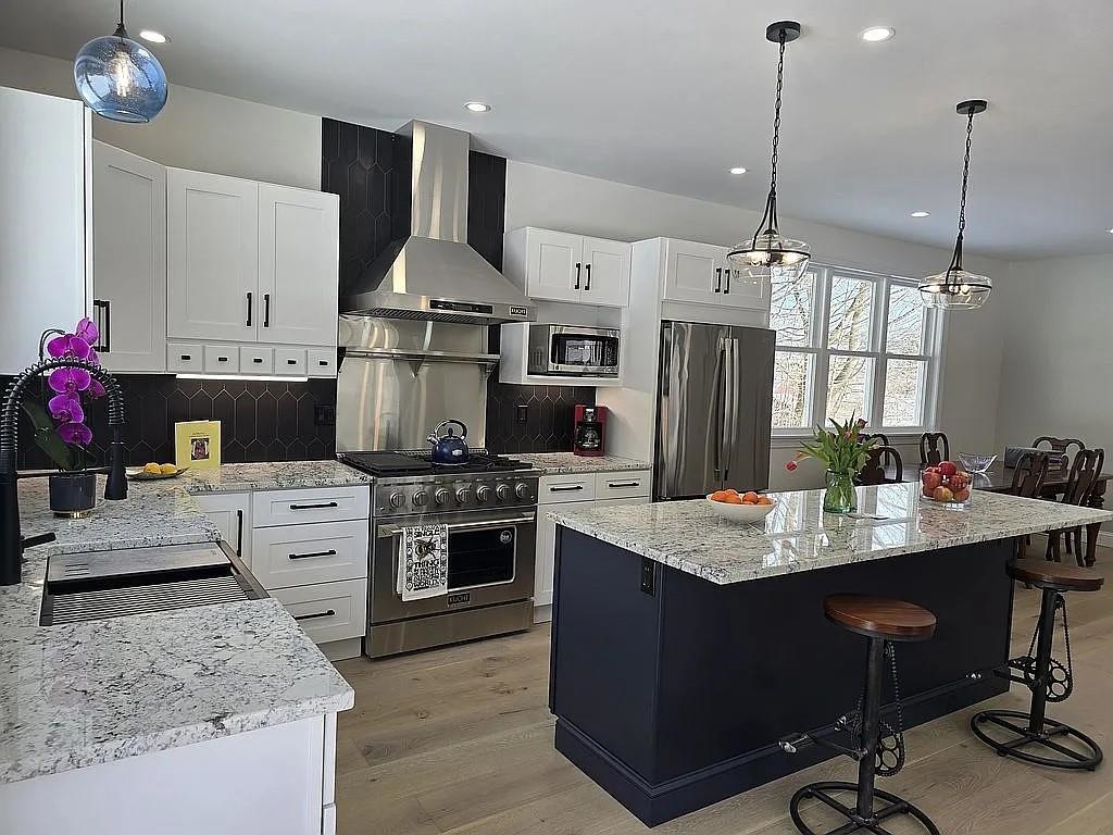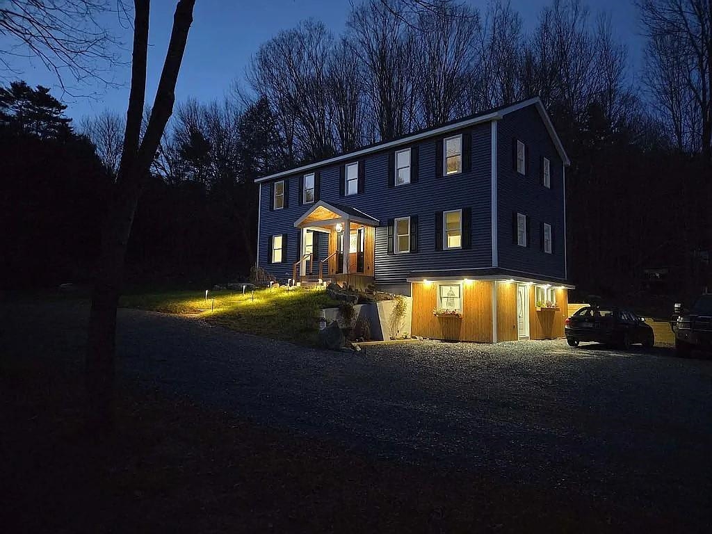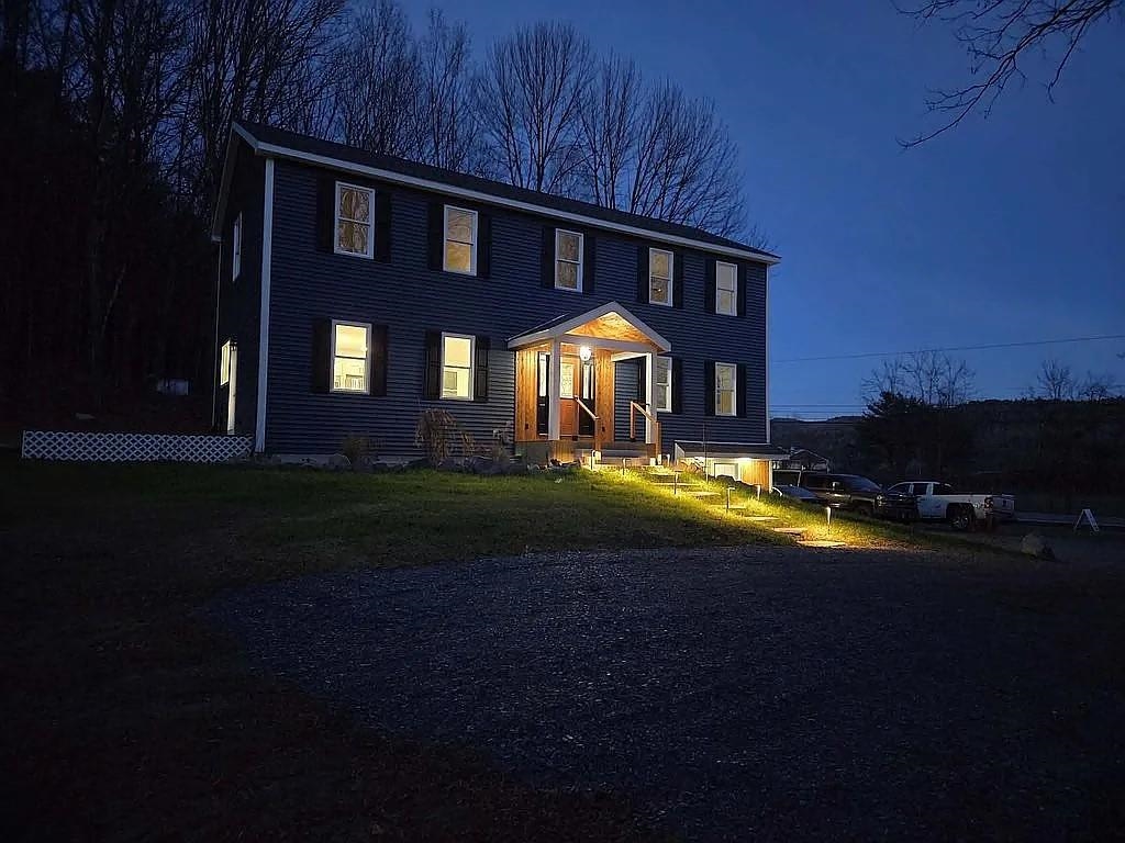 Discover your Vermont dream home in this absolutely stunning, brand-new 4-bedroom, 3-bath colonial on 14. 6 picturesque acres in Fairlee. This high-caliber custom build is truly turnkey—nothing to do but move in and enjoy modern comfort surrounded by classic Vermont beauty. Conveniently located on Route 5, you’re just minutes from I-91, an easy commute to Hanover, DHMC, and close to the beloved Lake Morey Resort with its golf, free summer concerts, and renowned year-round recreation. Inside, an open-concept main level features a showpiece kitchen with a large island, granite counters, Italian stone sink, high-end appliances, and a bright dining area framed by windows. Wide-plank oak floors run throughout, with heated tile in all three baths. The first floor includes a full bath with laundry and a flexible guest bedroom/office. Upstairs are two spacious bedrooms, a stylish full bath, and an expansive primary suite with walk-in closet, sliding barn doors, double granite vanity, tiled shower, and soaking tub. The walk-out lower level offers a tiled mudroom and versatile finished space for a gym, office, or playroom. Enjoy radiant heat, efficient heat pumps for heating/cooling, an air exchange system, a large back deck, perennial gardens, outbuildings, and a year-round babbling brook. A rare move-in ready gem in a cherished Vermont lake community.