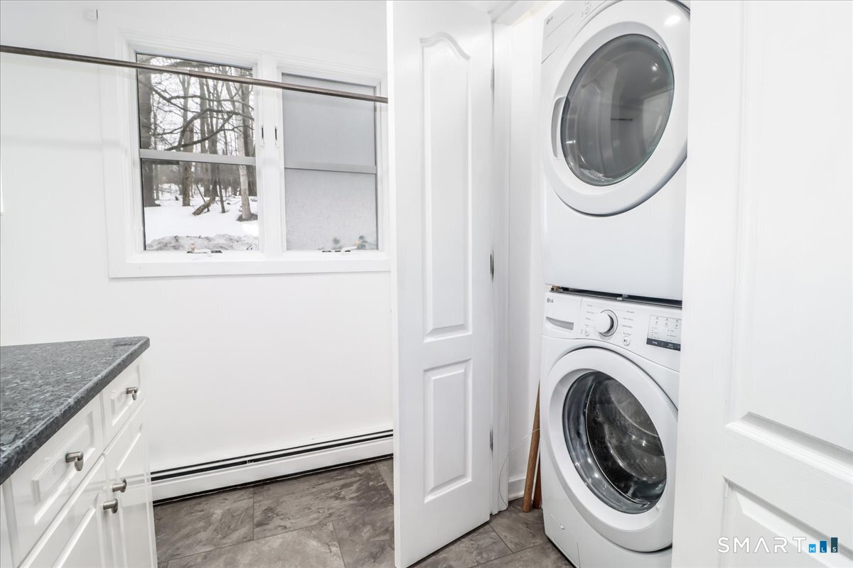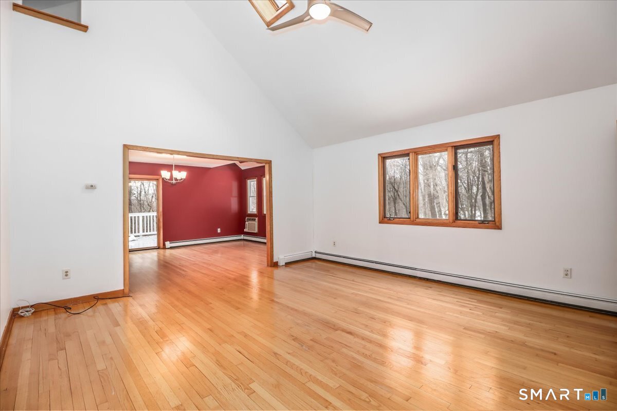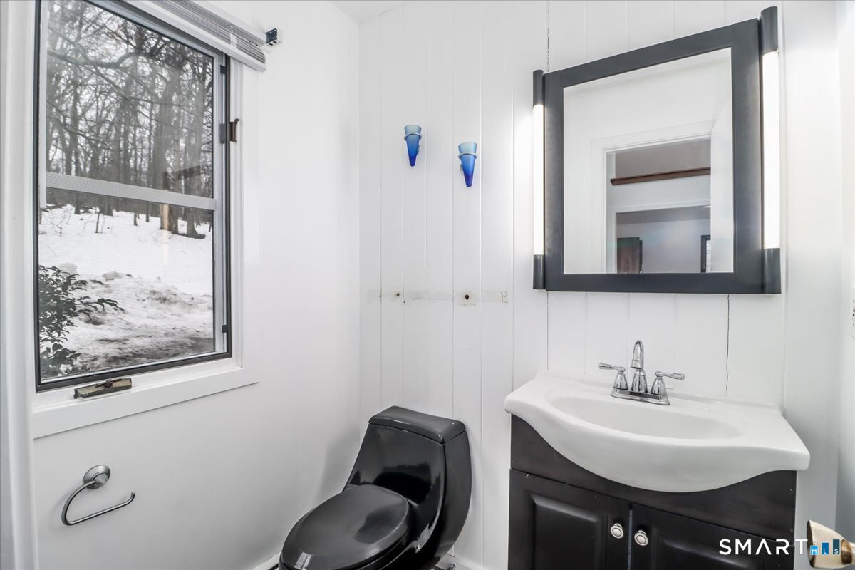 Tucked away at the end of a peaceful country road, this solid Contemporary Colonial offers the perfect blend of privacy and convenience. Boasting nearly 3, 000 SF of finished living space, this 4BR/2. 5BA beauty features a versatile main-level bedroom, soaring vaulted ceilings, and a dramatic 2-story foyer that sets the tone the moment you walk in. The heart of the home shines with an updated granite kitchen with stainless steel appliances that flows effortlessly into the family room - complete with a wood burning fireplace and direct access to a spacious deck overlooking 2. 5 acres of lush woodland. Formal dining and living rooms round out the main level beautifully. Upstairs, three generously sized bedrooms plus an open loft overlooking the foyer offer endless flexibility for work, rest, or play. The walk-out lower level provides excellent potential for additional finished living space or serves as bone-dry storage. All of this; just minutes from New Milford's historic downtown and beloved Village Green - country living at its finest, with everything you need close at hand. Immediate occupancy possible - come experience Pebble Lane for yourself!