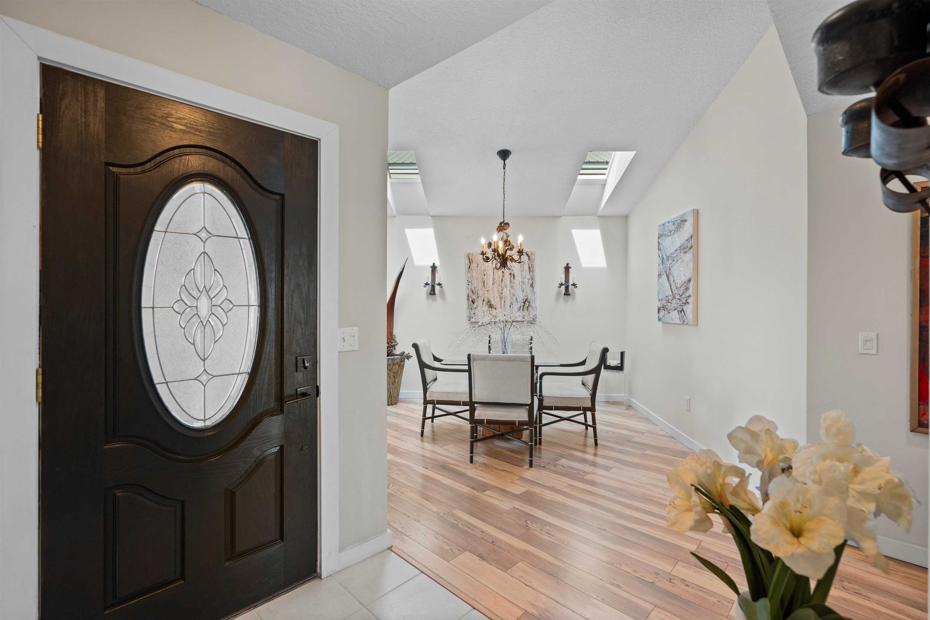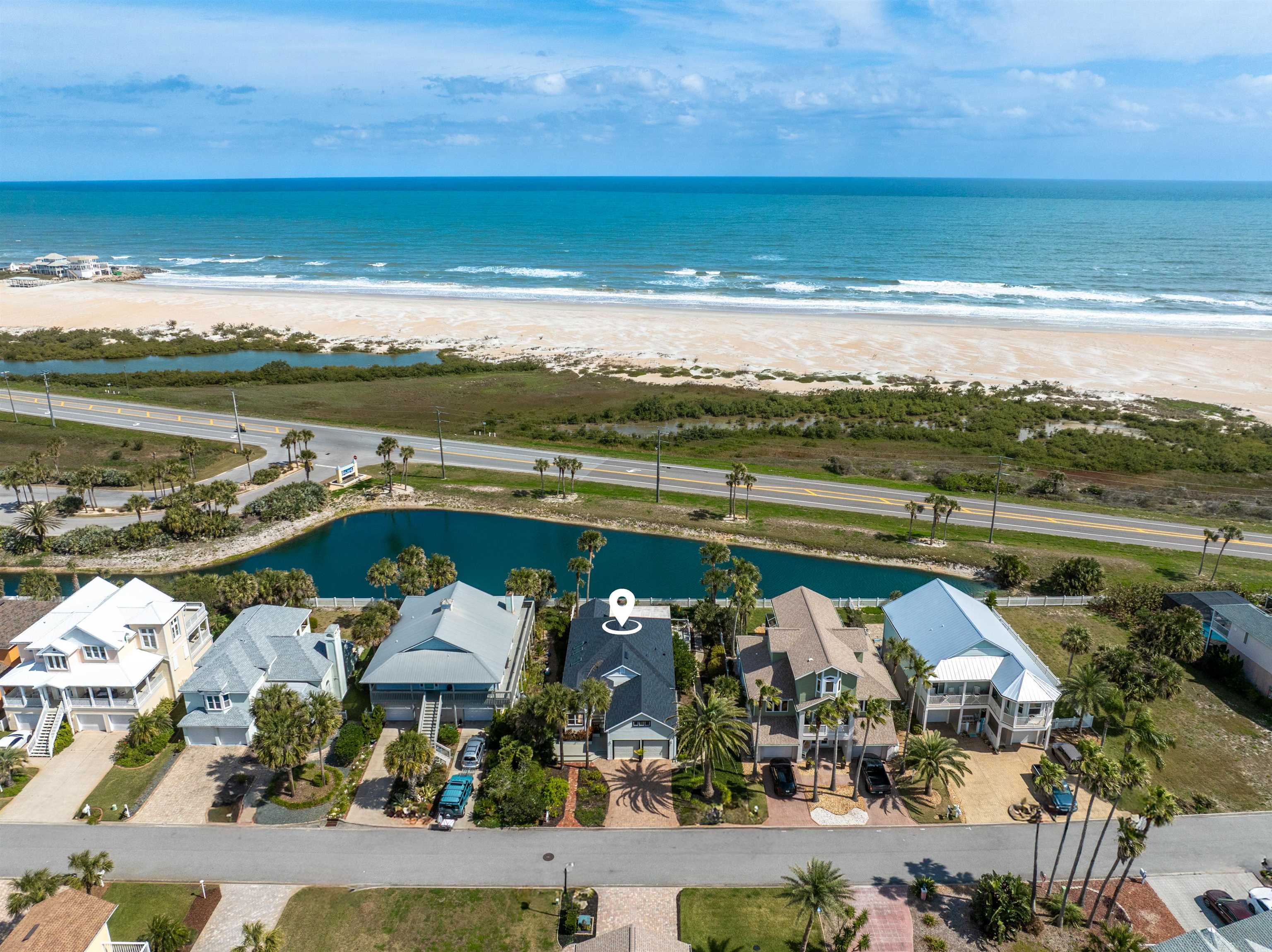Experience the best of coastal living in this beautiful 3-bedroom, 2-bathroom home in the highly sought-after gated community of Summer Island. Offering 2, 118 sq ft of bright, inviting living space, this waterfront retreat captures breathtaking views of both the ocean and the Intracoastal—making every sunrise and sunset a moment to enjoy. Tall ceilings, skylights, and expansive windows fill the home with natural light, creating an open and airy feel throughout. Recent updates include a newer roof (2023) and a brand-new HVAC system (2025), providing comfort and peace of mind for years to come. Best of all, the entire home is on one level—so you can save your steps for the sand, not the stairs. The spacious living room features a cozy wood-burning fireplace and sliding glass doors that open to the sunroom, perfect for enjoying morning coffee or relaxing in the evening light. The primary suite also offers private access to the sunroom, along with a walk-in closet and a well-appointed ensuite bath featuring a soaking tub, separate shower, and bidet. Two additional bedrooms, both with walk-in closets, share a thoughtfully designed guest bathroom. The kitchen is both functional and scenic, with beautiful Intracoastal views, a sunny breakfast nook, breakfast bar, pantry closet, and tiled backsplash. The dining area is highlighted by skylights and a beautifully refurbished 1700s chandelier, adding a unique touch of character and charm. Step outside to an inviting backyard designed for gathering and relaxing, with access to a resort-style community pool—so you can enjoy the benefits of a pool without the maintenance. Lounge on the sun deck or unwind around the beautifully landscaped paver fireplace while enjoying Florida’s coastal breezes. Residents of Summer Island enjoy exceptional amenities including a community pool, tennis courts, a dock, and a boat launch—all just moments away. With a two-car garage, dedicated laundry room, and unforgettable water views, this home offers an incredible opportunity to embrace the Florida coastal lifestyle.