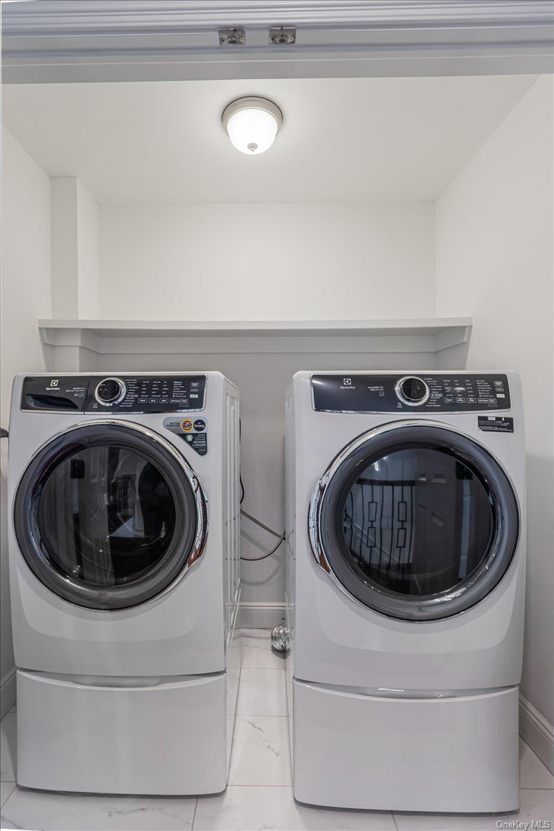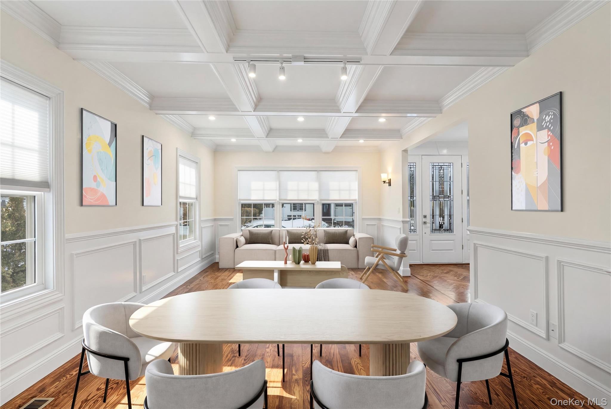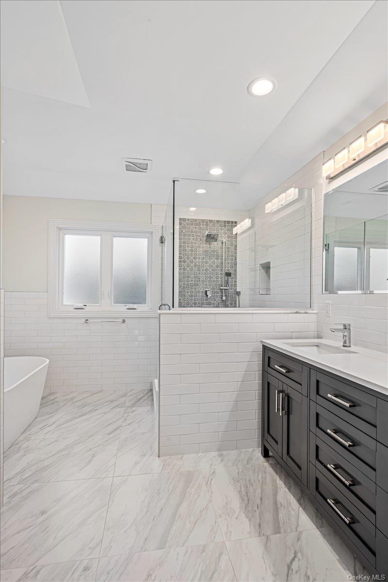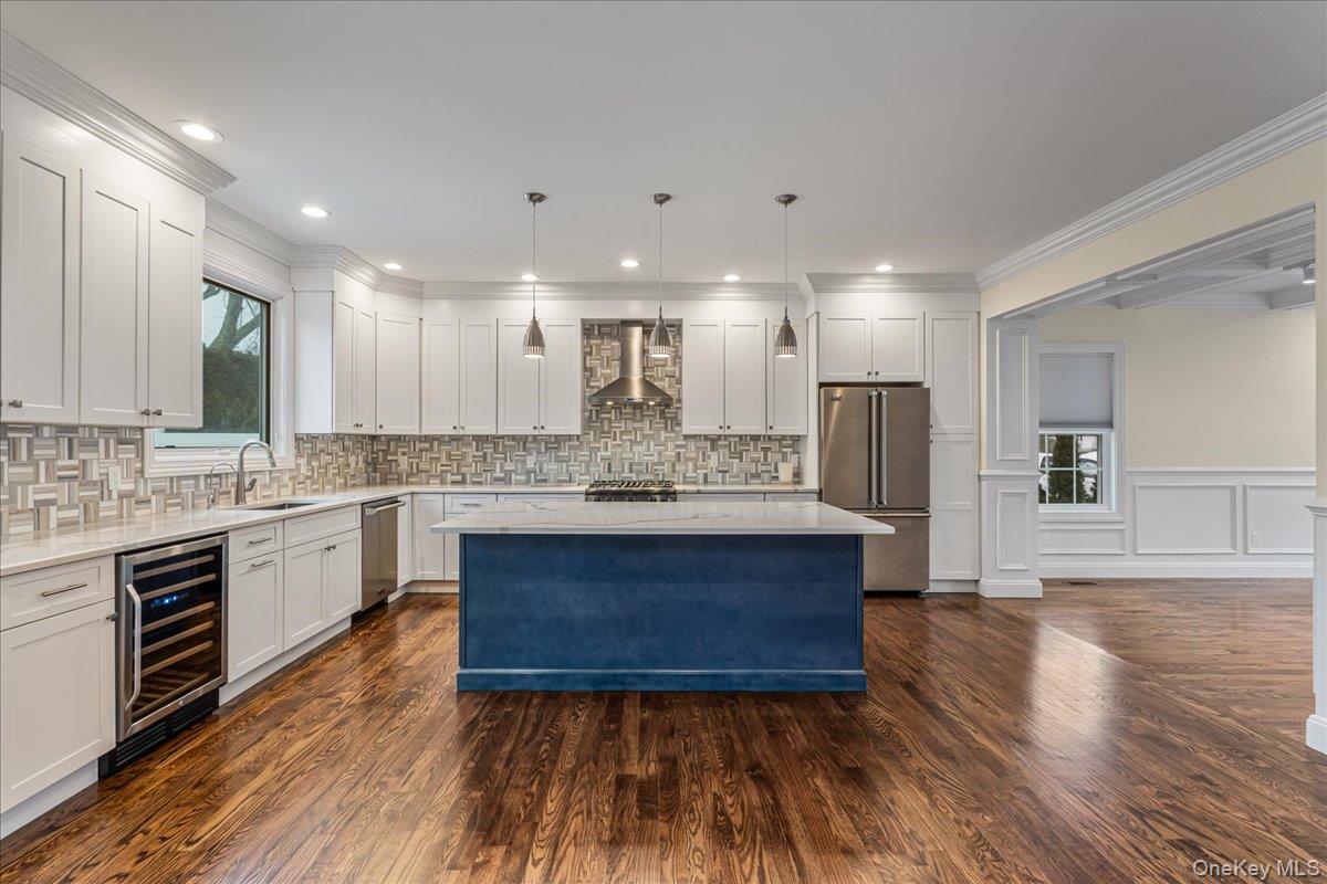 Spring into this Spectacular 2021 TurnKey New Construction Colonial featuring a HUGE 9-Foot basement with separate entrance, 5 bedrooms and 3 full baths! This beautifully upgraded home is designed for both comfortable living and effortless entertaining. The first floor welcomes you with a grand double-entry foyer with custom hardwood entry & an open-concept layout highlighted by an elaborate coffered ceiling in the living and dining area. The custom gourmet kitchen is equipped with All-New Viking Appliances- French Door Refrigerator, Gas Range, Dishwasher, Avanti Wine Cooler, water filtration & garbage disposal. The expansive family room features a Natural Gas Fireplace with custom built-ins, creating the perfect gathering space. A first floor guest room or home-office and full bath offers flexible living. Upstairs, the luxurious primary suite boasts a convenient automatic shade, an oversized walk-in closet and spa-inspired bath with smart commode & stainless steel towel warmer. Three additional bedrooms share a designer hall bathroom with stainless steel towel warmer. A convenient laundry room is on the second floor. The fully fenced entertainer’s backyard offers a Trex deck with built-in seating ideal for outdoor living. Additional features include all hard wood floors throughout, crown and box moldings, quartz countertops, gas cooking, Pella Windows, built-in closet shelving, whole-house Generac Generator, Lenox HVAC system, Toto Toilets, 9 foot basement that can be easily finished, security system and low taxes!! Prime location near shopping, restaurants, and transportation. Located in the highly regarded Syosset School District. A true move-in-ready home with exceptional craftsmanship and upgrades throughout.