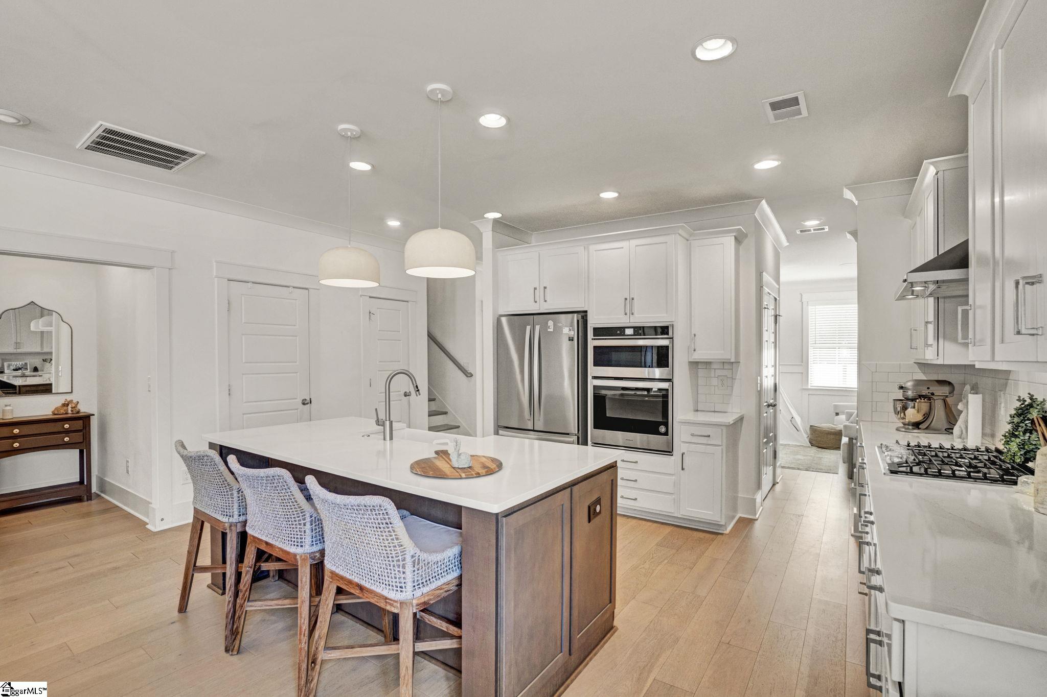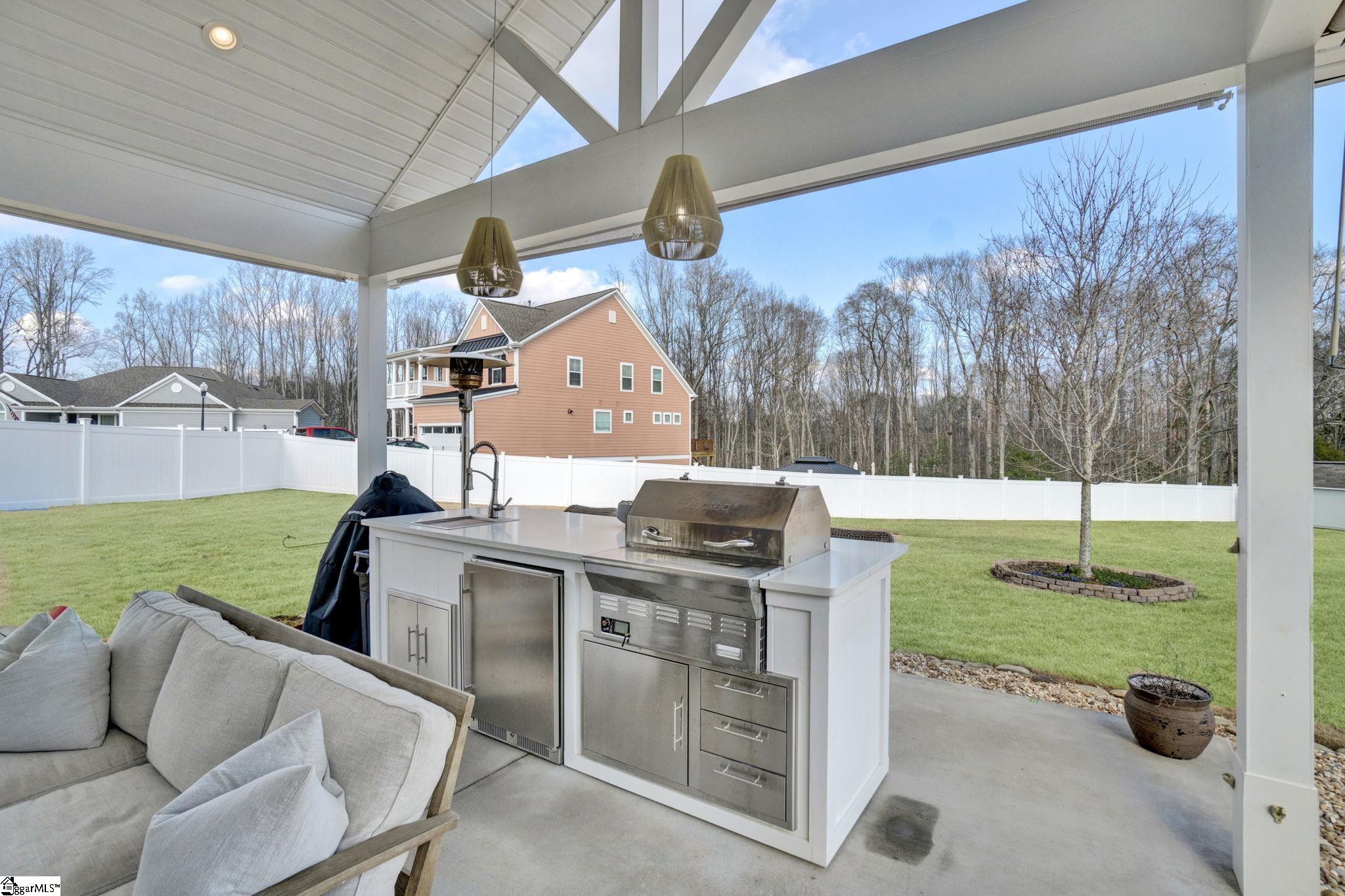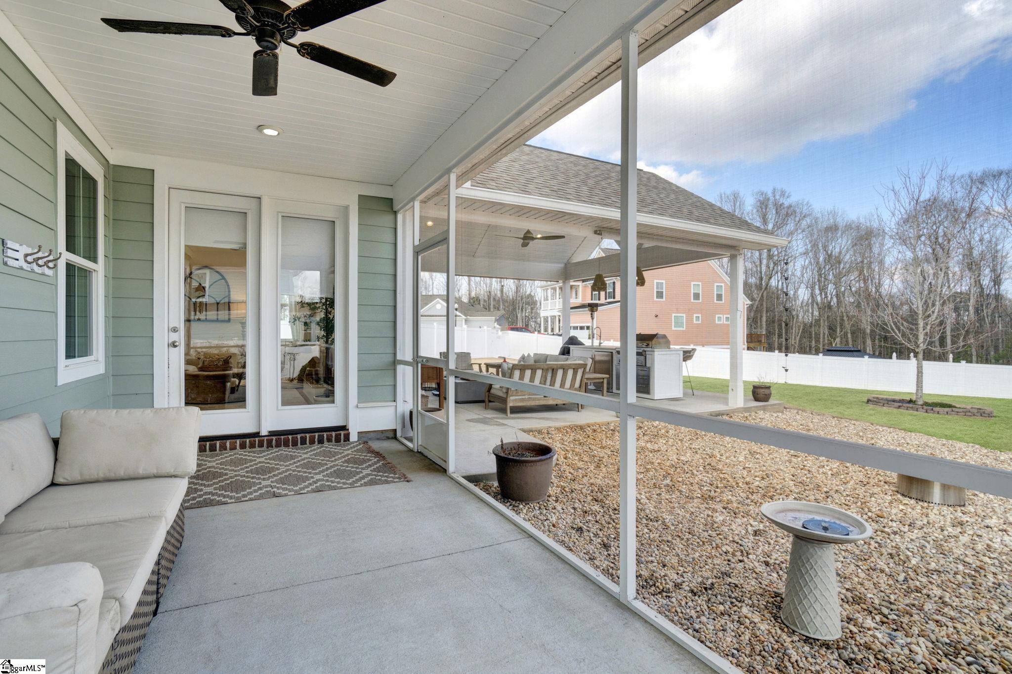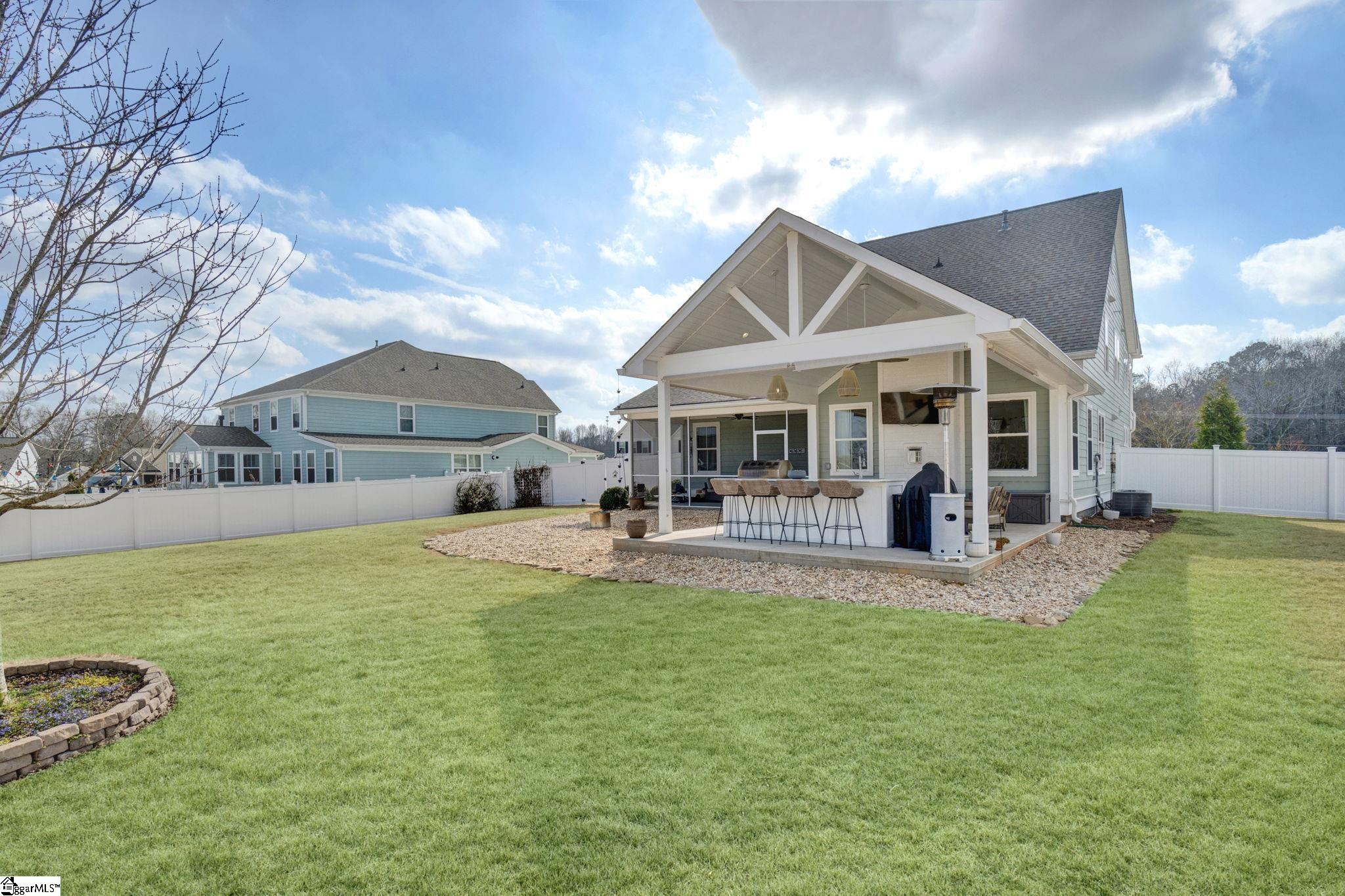 Located in one of the most desirable areas of Simpsonville, 201 Deerview Trail has that rare quality buyers immediately notice. It feels almost new, beautifully maintained, and cared for in a way that is evident from the moment you arrive. Mature landscaping, attractive curb appeal, and a fenced half acre yard create privacy and outdoor space that is increasingly difficult to find in today’s market. Inside, the flooring, carefully selected paint colors, and natural light create a home that feels polished yet comfortable. The formal dining room is currently styled as a cheerful play area, showing how easily this space can flex for gatherings, a home office, or additional living space while connecting beautifully to the butlers pantry and kitchen. The kitchen was designed for both function and style with stainless appliances, abundant cabinetry, tile backsplash, generous counter space, a large island, farmhouse sink, and lighting that adds warmth and character throughout. The breakfast area opens naturally into the family room where soaring ceilings and a fireplace create a spacious yet inviting central gathering space. Outdoor living truly sets this property apart with two separate outdoor rooms. The screened porch creates a peaceful place for morning coffee or evening relaxation, while the outdoor kitchen is ideal for grilling, entertaining, and gathering with friends in every season. The fenced backyard offers room for pets, play, gardening, and enjoying the privacy of the lot. The primary suite on the main level feels tucked away and peaceful with beautiful natural light. The bath includes double sinks, a soaking tub, walk in shower, and spacious walk in closet. Upstairs offers additional bedrooms, well appointed baths, and flexible living space for guests, work from home needs, or a second gathering area. With four bedrooms and three and a half baths, the floor plan offers versatility buyers continue to seek. One of the most special features of this community is the neighborhood walking trail leading to the river, creating a beautiful place for daily walks, quiet evenings, and enjoying the natural setting that makes this area so desirable. Located in the heart of Simpsonville with easy access to shopping, dining, schools, and nearby Greenville, this home brings together condition, outdoor living, location, and thoughtful design in a way buyers rarely find.