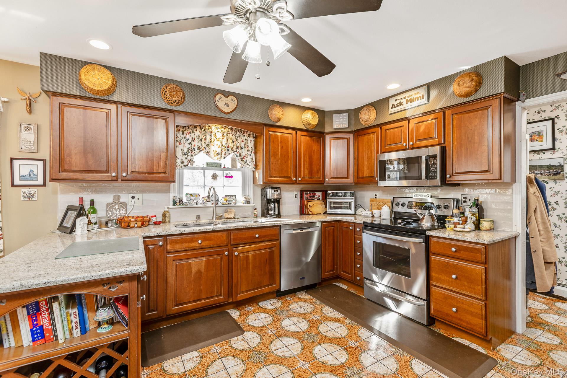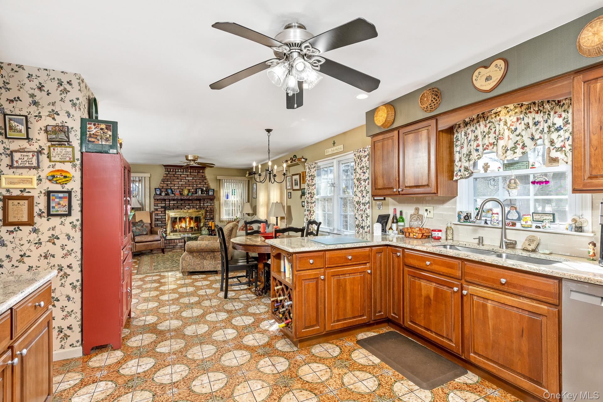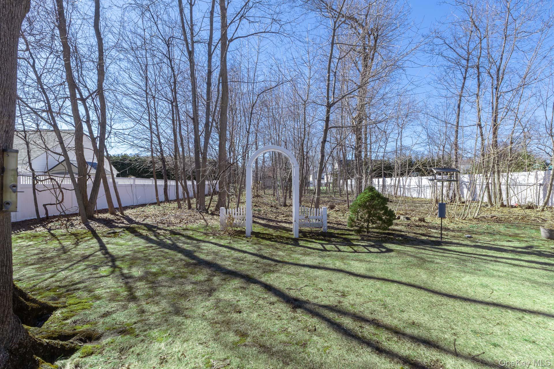 This cozy home is nestled in the quaint town of Saint James. Privacy is one of its' characteristics as it is set back from the road and has a large, fenced backyard. Since only a part of the backyard is finished, a large , tree filled area can be developed to accomodate a pool, athletic area or something of your choice. There are inground sprinklers front and back. The open floor concept of the kitchen and den invites friendly gatherings. The privacy of the dining room and living room makes for a cozy atmosphere. The attic is accessible from the upstairs hallway and there is a partial basement.