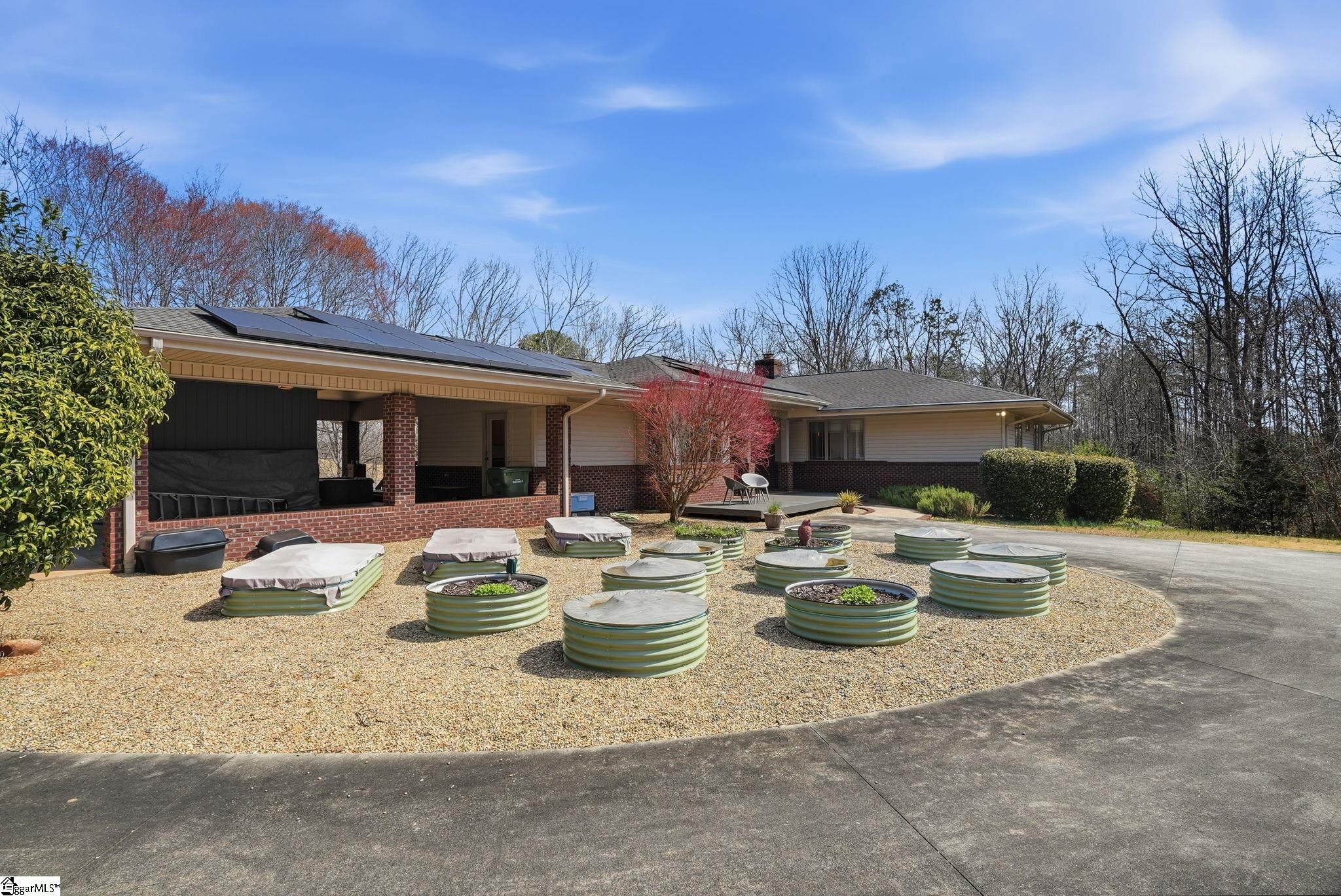 Tucked quietly among the trees and surrounded by the beauty of nature, 129 Tyler Lane is more than a home—it’s a private retreat where architecture, nature, and modern comfort come together in perfect harmony. Set on 5 breathtaking acres, half wooded and half thoughtfully landscaped, this remarkable property offers the rare luxury of true seclusion while remaining just minutes from town conveniences. Inspired by the timeless design philosophy of legendary architect Frank Lloyd Wright, this custom-built 2007 architectural gem was thoughtfully designed to blend seamlessly with its natural surroundings. Clean lines, intentional spaces, and an open-concept layout create a sense of effortless flow throughout the home. Rich hardwood floors, expansive high-end windows and doors, and abundant natural light create a warm and inviting atmosphere, while a striking wood-burning fireplace anchors the living space—perfect for cozy evenings and memorable gatherings. The home features 3 spacious bedrooms and 3 full bathrooms, offering comfort and flexibility for families, guests, or those seeking a peaceful retirement haven. At the heart of the home, the contemporary kitchen showcases quality finishes and an open layout ideal for entertaining. Downstairs, a partially finished walkout basement offers incredible potential—perfect for a home office, fitness studio, guest suite, or additional living space tailored to your lifestyle. Sustainability meets practicality with a fully paid-for rooftop solar system, dramatically reducing energy costs while supporting eco-friendly living. Recently installed high-speed fiber internet ensures effortless connectivity for remote work, streaming, and staying connected. Step outside and discover a property designed for both relaxation and self-sufficiency. Recent upgrades include a raised-bed garden system, greenhouse, and chicken coop, creating the perfect mini-farm lifestyle for those who enjoy fresh produce and sustainable living. A dedicated workshop and storage space provides room for hobbies, projects, and tools, while included appliances—washer, dryer, additional refrigerator, freezer, and dehumidifier—add everyday convenience. Location only enhances the appeal. Just 10 minutes from the pristine waters of Lake Keowee and the scenic trails of Oconee State Park, outdoor recreation is always within reach. Conveniently located 20 minutes from Clemson University, about an hour from Greenville, and approximately two hours from Atlanta, giving you the perfect balance of peaceful countryside living with access to vibrant city amenities. Rare, refined, and beautifully designed—this home offers a lifestyle that feels worlds away, yet close to everything that matters.