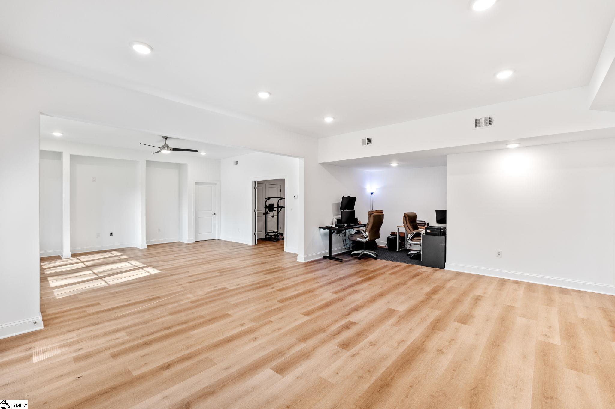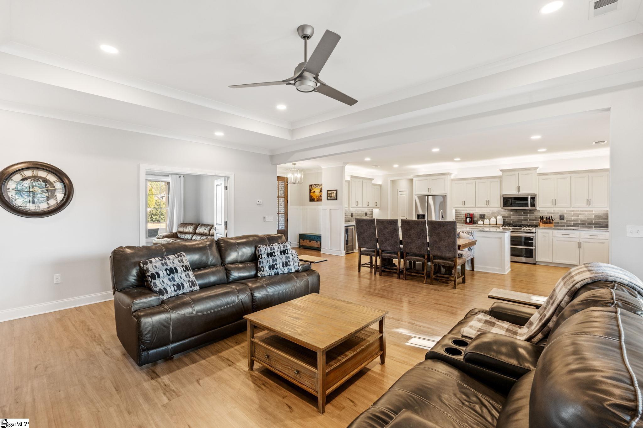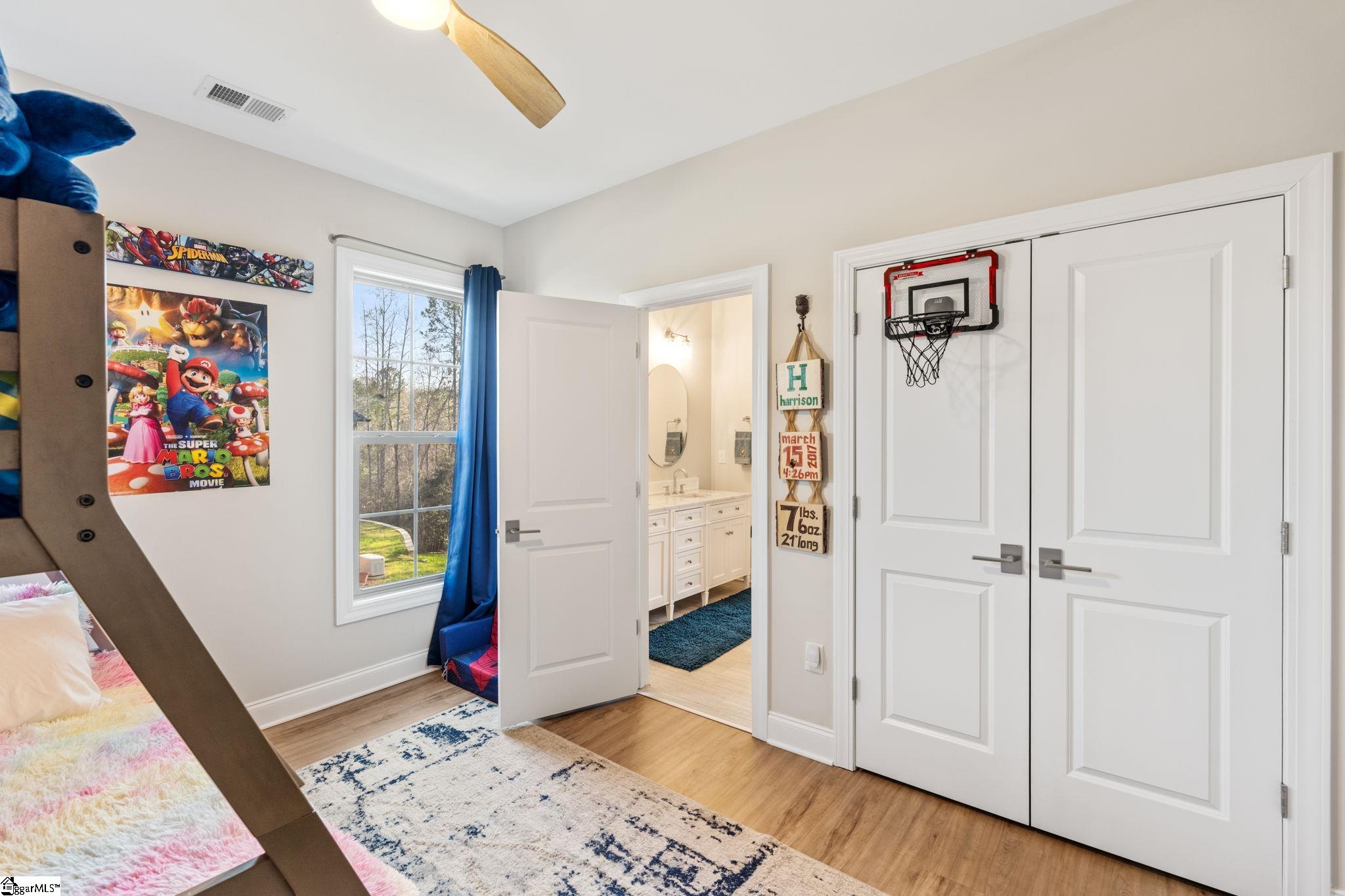 Welcome to this exceptional 4-bedroom, 3. 5-bath Modern Craftsman residence located in the coveted GATED enclave of The Creeks at Woodfin Ridge, one of Inman’s most sought-after golf communities. Woodfin Ridge is renowned for its 18-hole championship golf course, Club House with restaurant, tennis courts, swimming pool, playground area and access to the vibrant community lifestyle, with social gatherings and events hosted at the clubhouse throughout the year, creating the perfect opportunity to connect with neighbors and enjoy the exceptional golf community atmosphere. This meticulously designed home offers the perfect blend of luxury, comfort, and thoughtful craftsmanship, featuring a two-car garage on the main level and a third garage bay on the basement level, along with an abundance of storage and closet space throughout. From the moment you arrive, the home impresses with its inviting covered front porch and grand double entry doors. Inside, the foyer showcases decorative wainscoting and opens to an expansive living space designed for both everyday living and elegant entertaining. The gourmet kitchen is beautifully appointed with granite countertops, stylish tile backsplash, under-cabinet lighting, a gas range, beverage cooler, and extensive cabinetry, along with two walk-in pantry spaces providing exceptional storage. An instant hot-water feature at the sink offers adjustable temperatures for added convenience. Adjacent to the island is a thoughtfully designed bar area with a pass-through window, creating seamless access to the private covered porch for effortless indoor-outdoor entertaining. The kitchen flows into the spacious living room, highlighted by tray ceilings, large windows, open shelving, and a striking stacked-stone gas log fireplace that serves as the focal point of the space. On one side of the home, two generously sized bedrooms share a Jack-and-Jill bathroom with double vanities, while a half bath for guests and a walk-in laundry room with sink provide additional functionality. A versatile room with double doors and a closet offers flexibility as a formal dining room, study, or home office. Occupying the opposite wing of the home is the luxurious primary suite, offering tray ceilings, private access to the covered porch, and a spa-inspired bathroom featuring double vanities with modern lighted mirrors, an impressive tiled walk-in shower with three shower heads including a rain shower feature, glass enclosure, and a private water closet. The suite is completed by a spacious walk-in closet designed with ample storage. The walk-out basement level provides an incredible secondary living space, complete with 10-foot ceilings and abundant natural light, making it feel more like a main living level than a traditional basement. This level mirrors the thoughtful design of the main floor and includes a bedroom with adjoining full bathroom with walk-in shower—perfect for an in-law suite or guest retreat. A large open living area offers potential for an additional kitchen or entertainment space, with direct access to the covered patio and relaxing hot tub. Additional flexible spaces include a home office nook and a room with a closet currently used as a home gym, which could easily serve as a fifth bedroom. One of the home’s most impressive features is the two expansive unfinished storage areas, one of which includes exterior access through a large three-panel door, offering endless possibilities for storage or future expansion. Built with the discerning buyer in mind, this home also features a tankless water heater for endless hot water, irrigation system, gas heat, one-piece skirted toilets throughout, and gutter guard on the gutters. With its beautiful craftsmanship, flexible living spaces, and multiple outdoor areas designed for relaxation and entertaining, this stunning home offers a rare opportunity to enjoy luxury living in one of the Upstate’s premier golf communities.