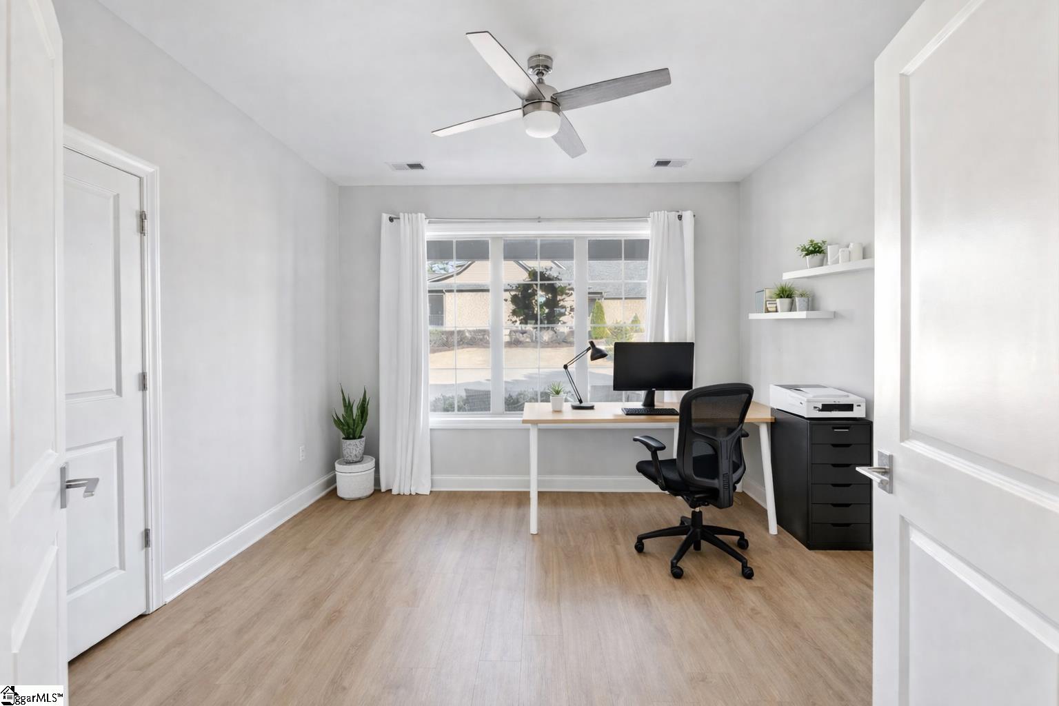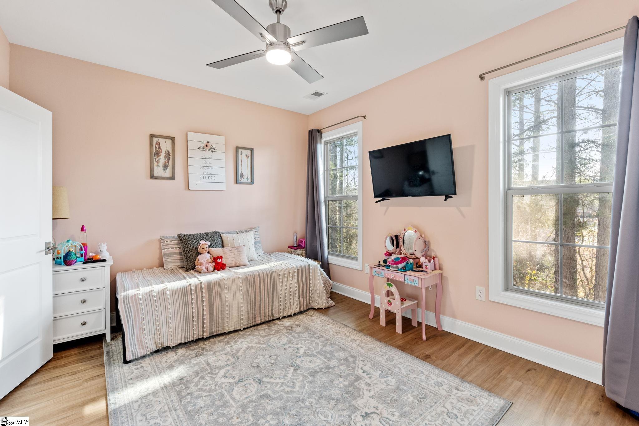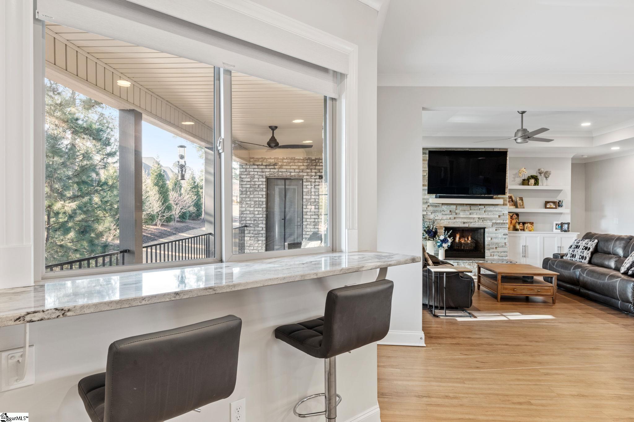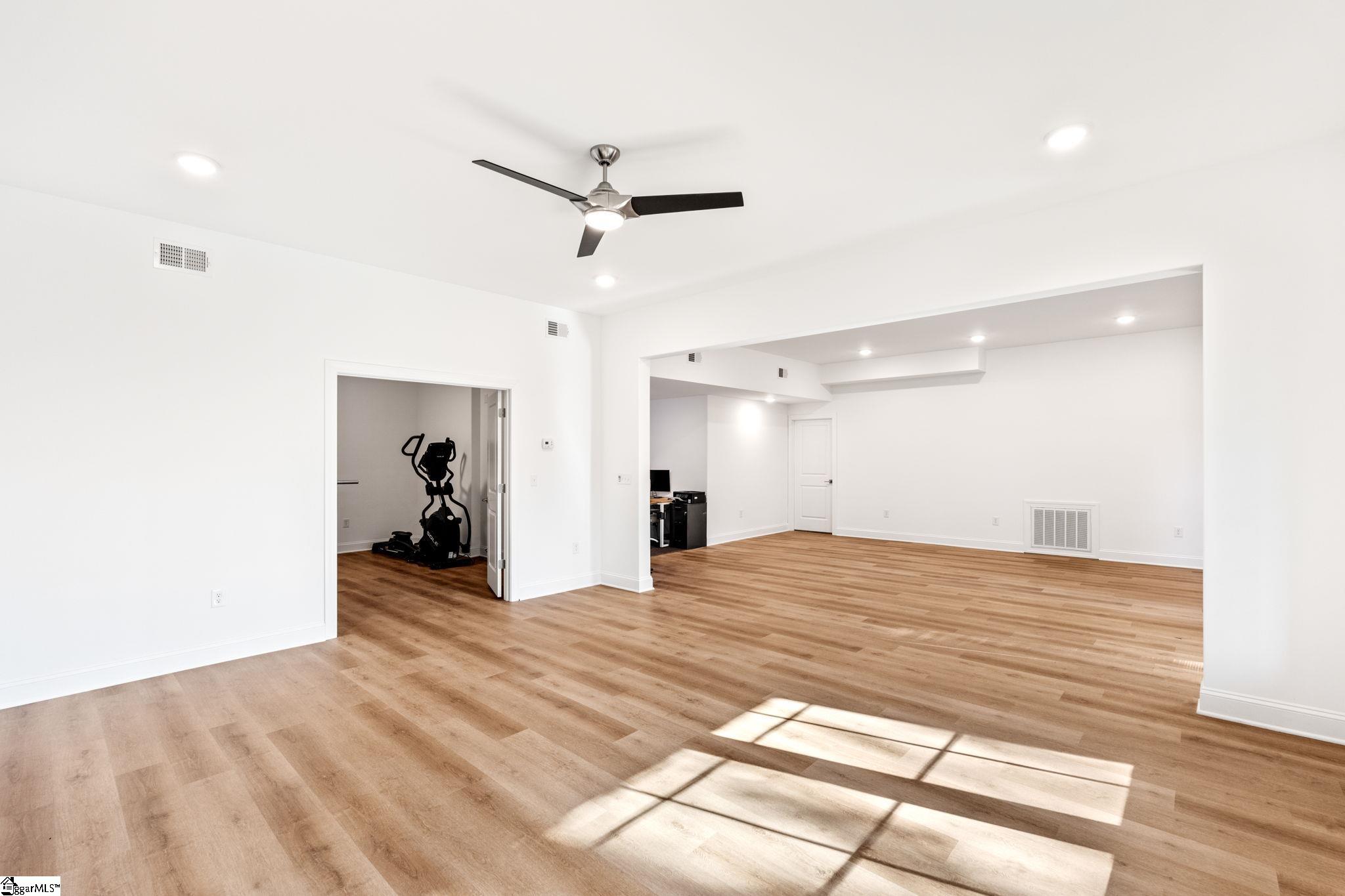 Welcome to this exceptional 4-bedroom, 3. 5-bath Modern Craftsman residence located in the coveted GATED enclave of The Creeks at Woodfin Ridge, one of Inman’s most sought-after golf communities. Woodfin Ridge is renowned for its 18-hole championship golf course, Club House with restaurant, tennis courts, swimming pool, playground area and access to the vibrant community lifestyle, with social gatherings and events hosted at the clubhouse throughout the year, creating the perfect opportunity to connect with neighbors and enjoy the exceptional golf community atmosphere. This meticulously designed home offers the perfect blend of luxury, comfort, and thoughtful craftsmanship, featuring a two-car garage on the main level and a third garage bay on the basement level, along with an abundance of storage and closet space throughout. From the moment you arrive, the home impresses with its inviting covered front porch and grand double entry doors. Inside, the foyer showcases decorative wainscoting and opens to an expansive living space designed for both everyday living and elegant entertaining. The gourmet kitchen is beautifully appointed with granite countertops, stylish tile backsplash, under-cabinet lighting, a gas range, beverage cooler, and extensive cabinetry, along with two walk-in pantry spaces providing exceptional storage. An instant hot-water feature at the sink offers adjustable temperatures for added convenience. Adjacent to the island is a thoughtfully designed bar area with a pass-through window, creating seamless access to the private covered porch for effortless indoor-outdoor entertaining. The kitchen flows into the spacious living room, highlighted by tray ceilings, large windows, open shelving, and a striking stacked-stone gas log fireplace that serves as the focal point of the space. On one side of the home, two generously sized bedrooms share a Jack-and-Jill bathroom with double vanities, while a half bath for guests and a walk-in laundry room with sink provide additional functionality. A versatile room with double doors and a closet offers flexibility as a formal dining room, study, or home office. Occupying the opposite wing of the home is the luxurious primary suite, offering tray ceilings, private access to the covered porch, and a spa-inspired bathroom featuring double vanities with modern lighted mirrors, an impressive tiled walk-in shower with three shower heads including a rain shower feature, glass enclosure, and a private water closet. The suite is completed by a spacious walk-in closet designed with ample storage. The walk-out basement level provides an incredible secondary living space, complete with 10-foot ceilings and abundant natural light, making it feel more like a main living level than a traditional basement. This level mirrors the thoughtful design of the main floor and includes a bedroom with adjoining full bathroom with walk-in shower—perfect for an in-law suite or guest retreat. A large open living area offers potential for an additional kitchen or entertainment space, with direct access to the covered patio and relaxing hot tub. Additional flexible spaces include a home office nook and a room with a closet currently used as a home gym, which could easily serve as a fifth bedroom. One of the home’s most impressive features is the two expansive unfinished storage areas, one of which includes exterior access through a large three-panel door, offering endless possibilities for storage or future expansion. Built with the discerning buyer in mind, this home also features a tankless water heater for endless hot water, irrigation system, gas heat, one-piece skirted toilets throughout, and gutter guard on the gutters. With its beautiful craftsmanship, flexible living spaces, and multiple outdoor areas designed for relaxation and entertaining, this stunning home offers a rare opportunity to enjoy luxury living in one of the Upstate’s premier golf communities.