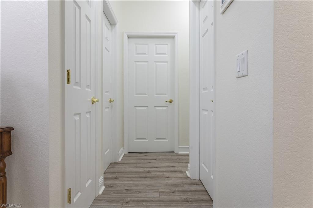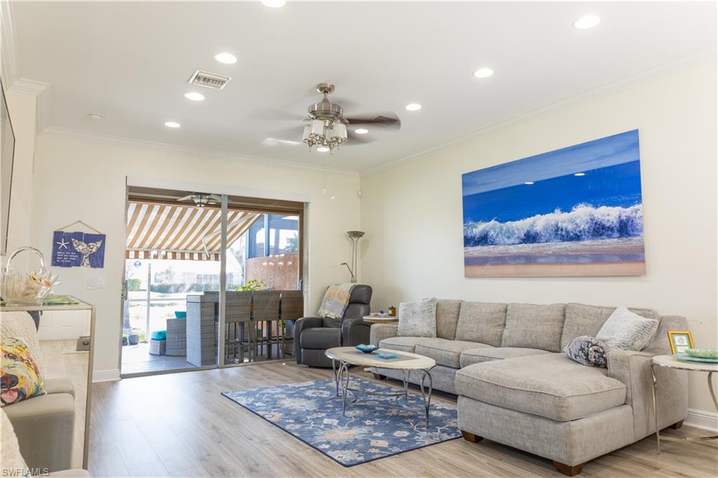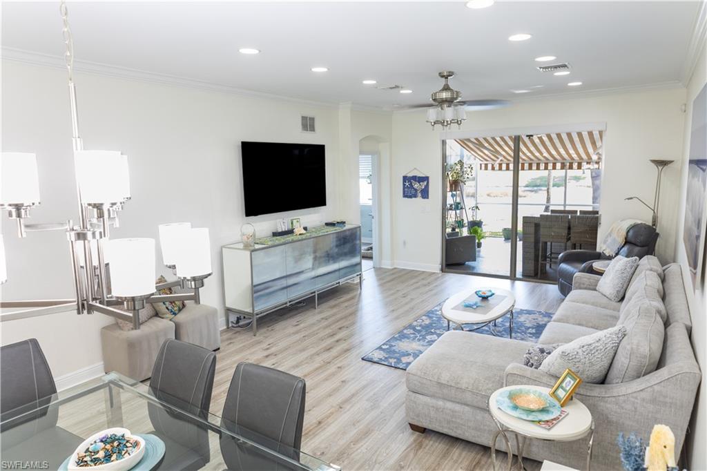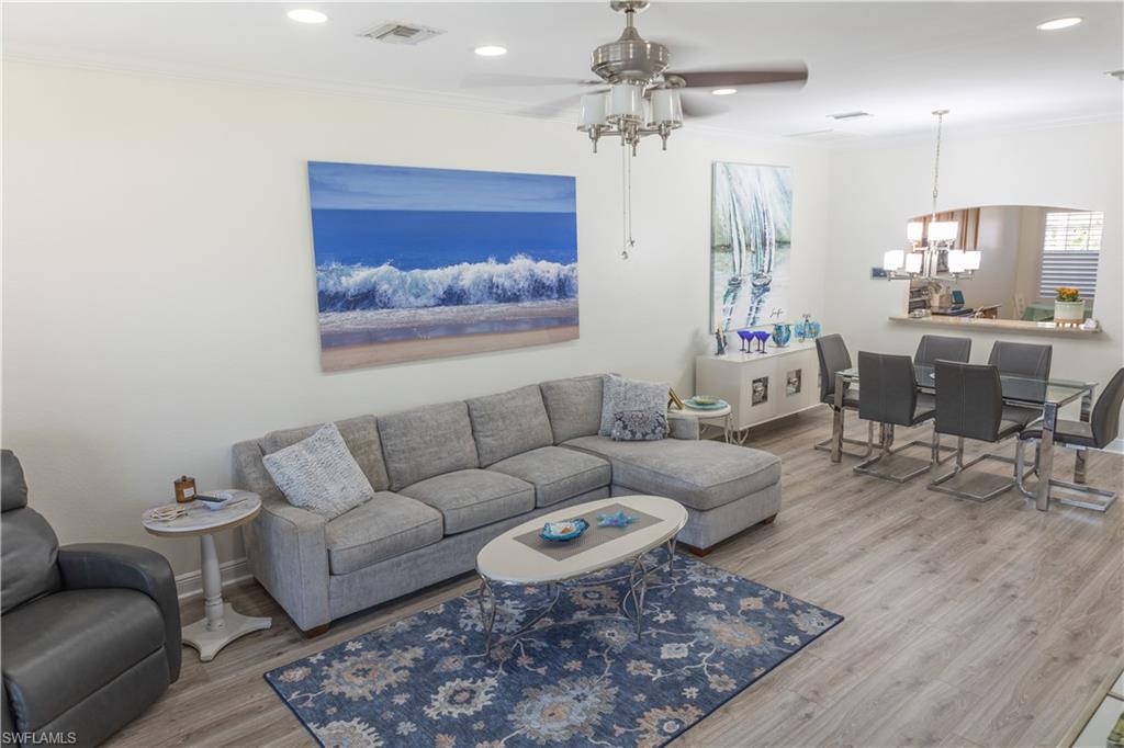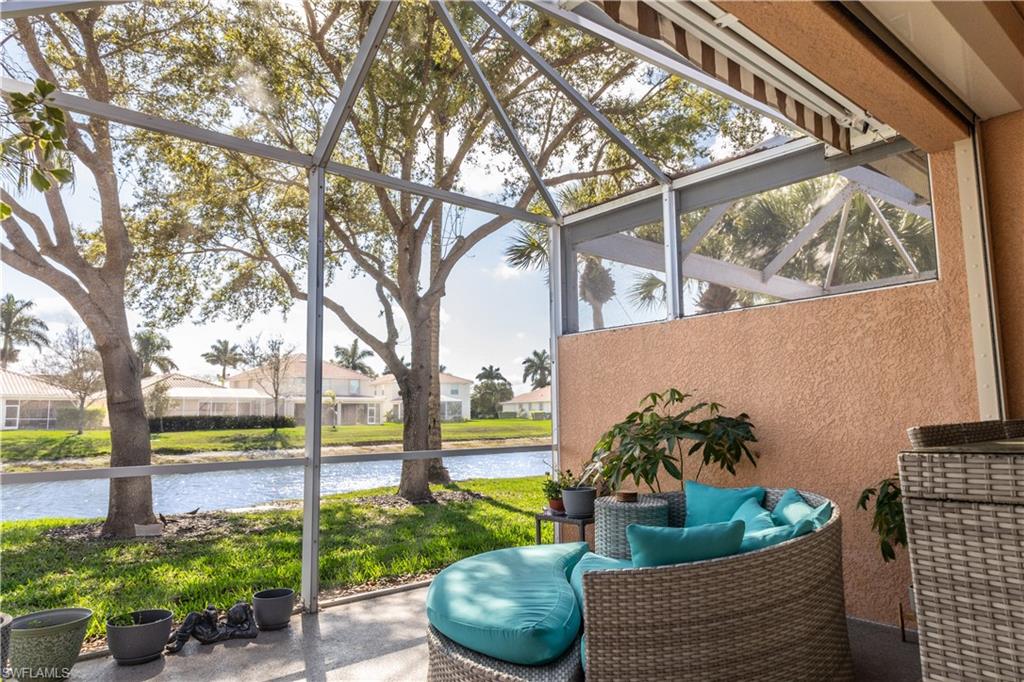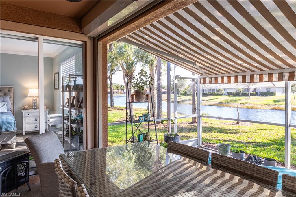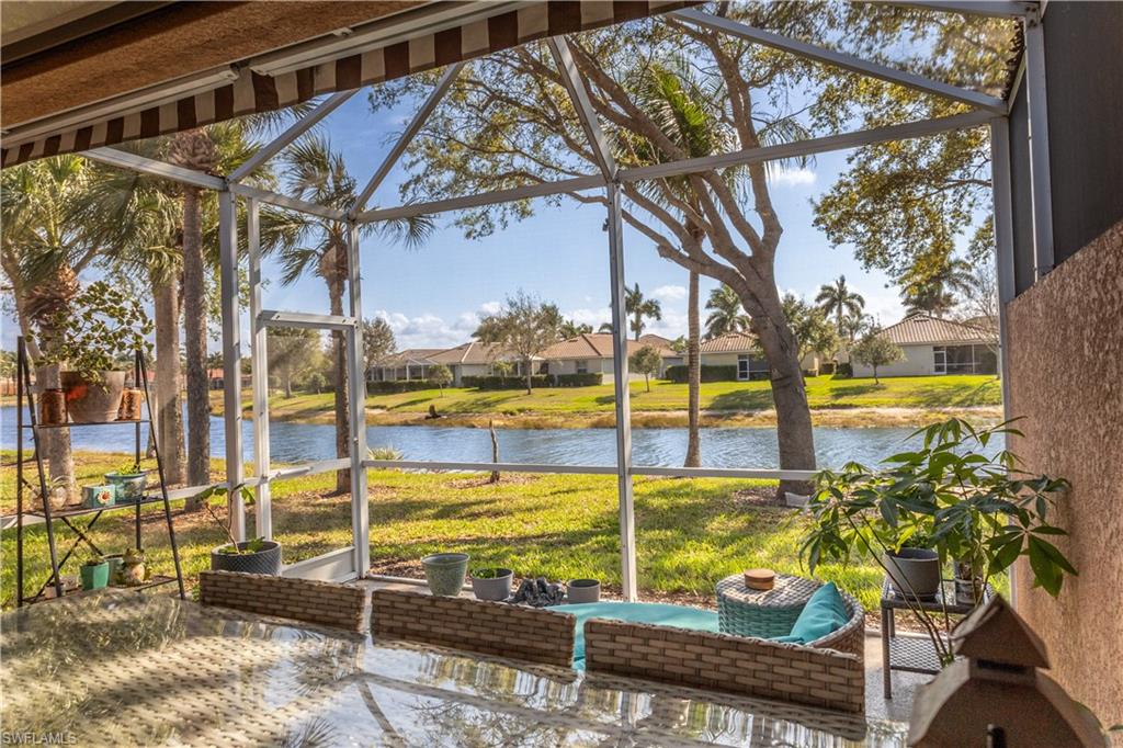 Professional interior pictures coming! Lovely lakefront villa in desirable Reflection Lakes gated community. This home offers beautiful lake views from the spacious screened lanai. Many recent upgrades throughout including AC (2022), brand new luxury vinyl tile flooring (late 2025), gas powered generator, Plantation Shutters on windows, recessed lights, upgraded fixtures, 6 inch crown and baseboard molding, master and guest bathrooms renovated in 2025, new high-quality Penntek concrete coating on garage and lanai floors (lifetime warranty), re-imagined lanai (2024), and whole-house ENVIRO water filtration system with 50-gallon hot water tank. The kitchen offers wood cabinetry, stainless steel appliances, granite counters, a breakfast nook and a pass through to the dining living space. The master bathroom is spacious and the ensuite bath features a frameless glass enclosed walk in shower, upgraded lighting and dual sinks. The additional bedrooms provide plenty of space for friends and family. A built in Murphy bed allows conversion to office or bedroom. All windows have electric hurricane shutters for optimum protection. Low fees and no CDD, Reflection Lakes provides a clubhouse that consists of a state-of-the-art fitness center with locker rooms and showers, rooms for meetings and activities, Library, billiards, ballroom, catering kitchen, outdoor heated pool with splash area, bocce ball, BBQs and pavilion. Reflection Lakes is a short distance from downtown Naples, Marco Island, shopping, and attractions.