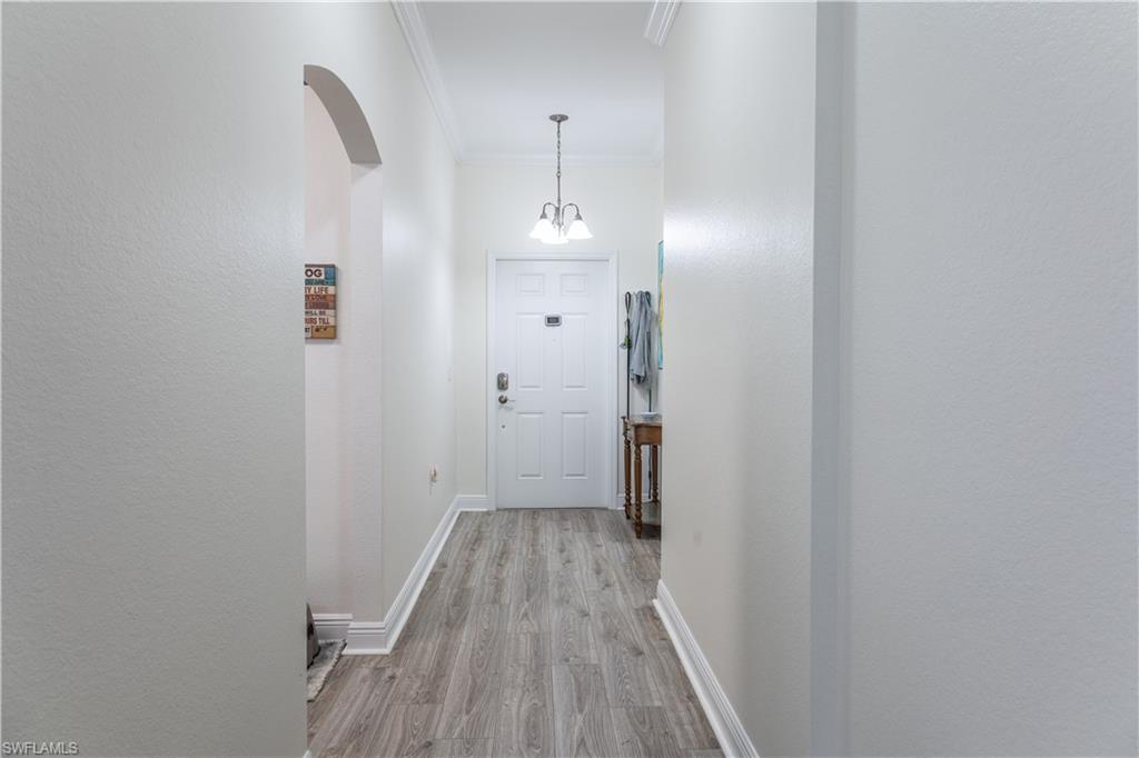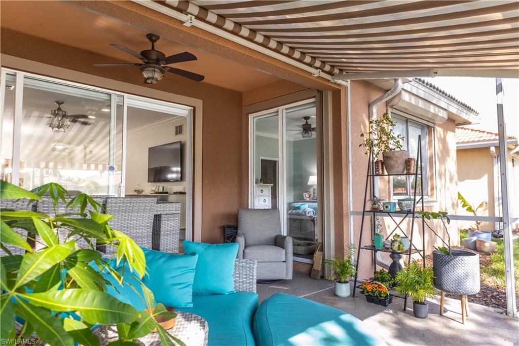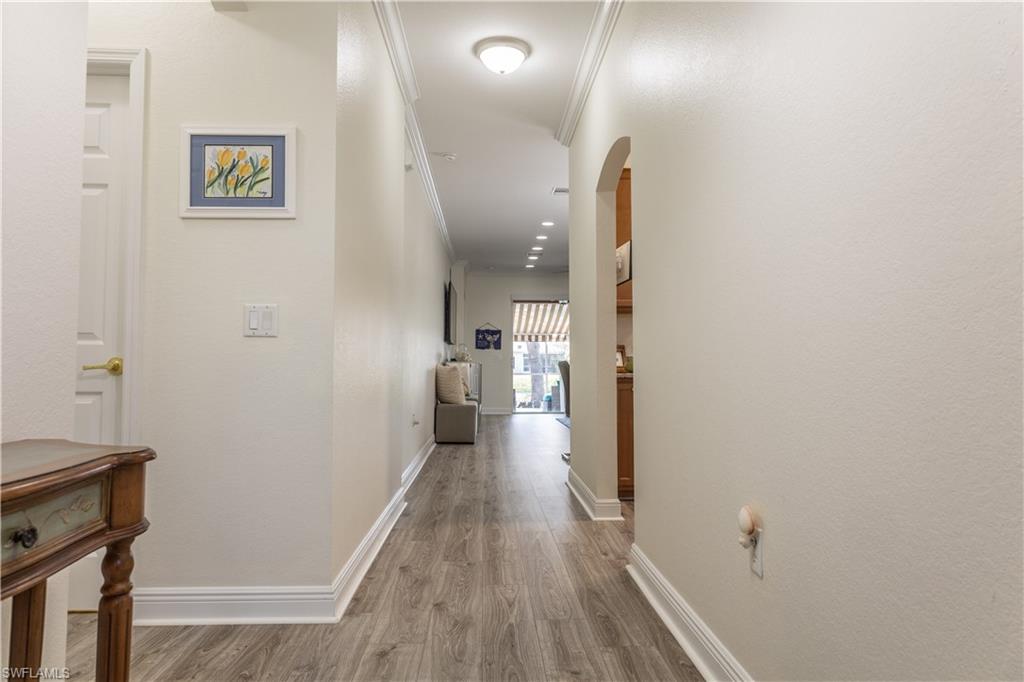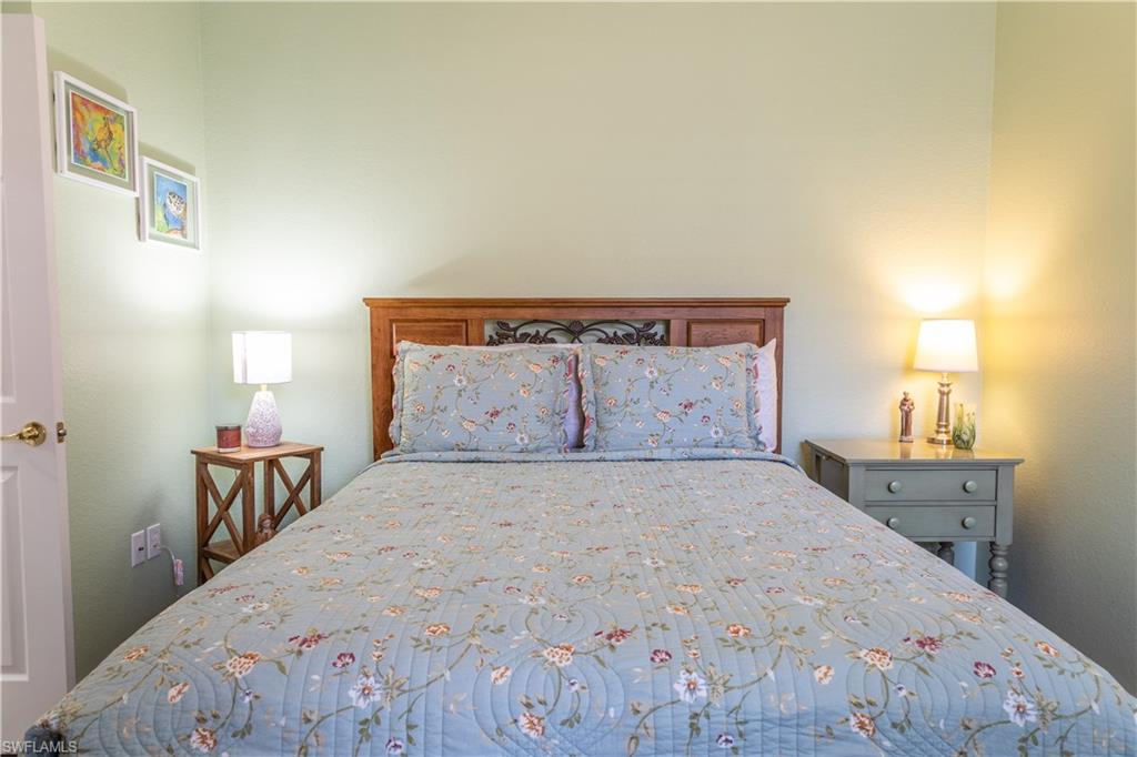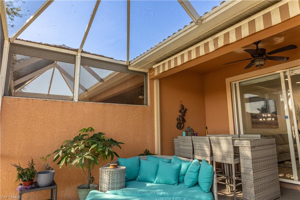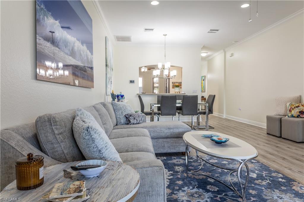 Professional interior pictures coming! Lovely lakefront villa in desirable Reflection Lakes gated community. This home offers beautiful lake views from the spacious screened lanai. Many recent upgrades throughout including AC (2022), brand new luxury vinyl tile flooring (late 2025), gas powered generator, Plantation Shutters on windows, recessed lights, upgraded fixtures, 6 inch crown and baseboard molding, master and guest bathrooms renovated in 2025, new high-quality Penntek concrete coating on garage and lanai floors (lifetime warranty), re-imagined lanai (2024), and whole-house ENVIRO water filtration system with 50-gallon hot water tank. The kitchen offers wood cabinetry, stainless steel appliances, granite counters, a breakfast nook and a pass through to the dining living space. The master bathroom is spacious and the ensuite bath features a frameless glass enclosed walk in shower, upgraded lighting and dual sinks. The additional bedrooms provide plenty of space for friends and family. A built in Murphy bed allows conversion to office or bedroom. All windows have electric hurricane shutters for optimum protection. Low fees and no CDD, Reflection Lakes provides a clubhouse that consists of a state-of-the-art fitness center with locker rooms and showers, rooms for meetings and activities, Library, billiards, ballroom, catering kitchen, outdoor heated pool with splash area, bocce ball, BBQs and pavilion. Reflection Lakes is a short distance from downtown Naples, Marco Island, shopping, and attractions.