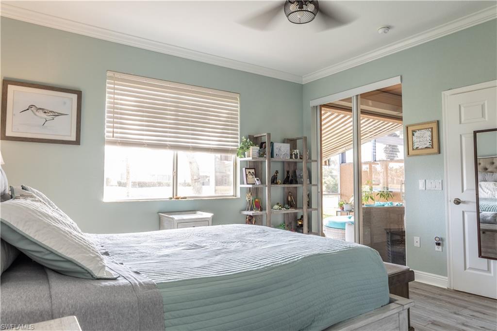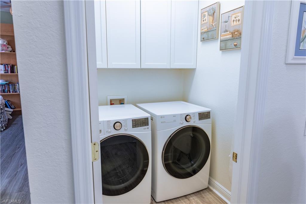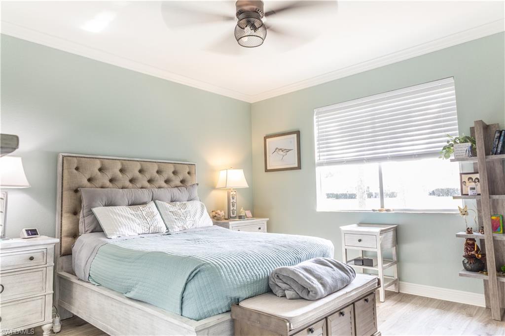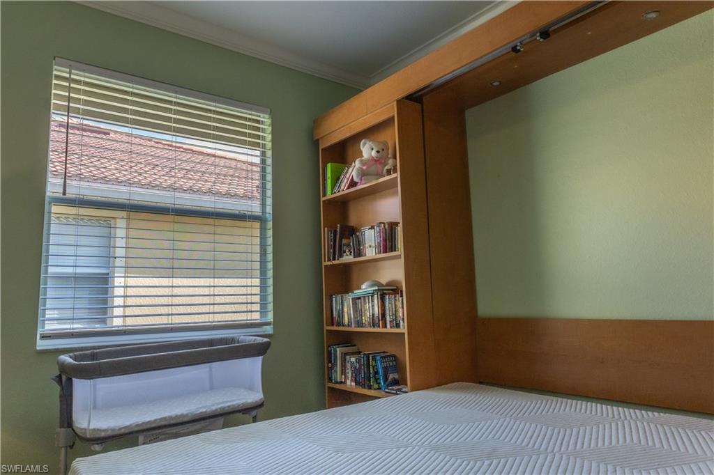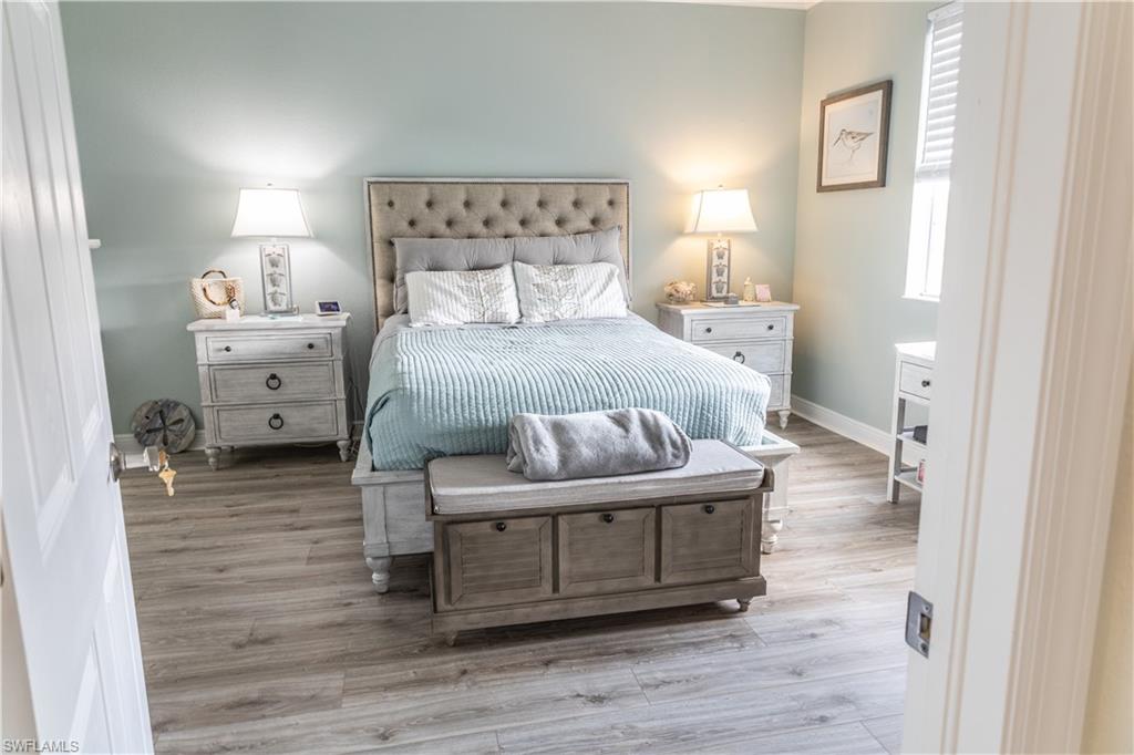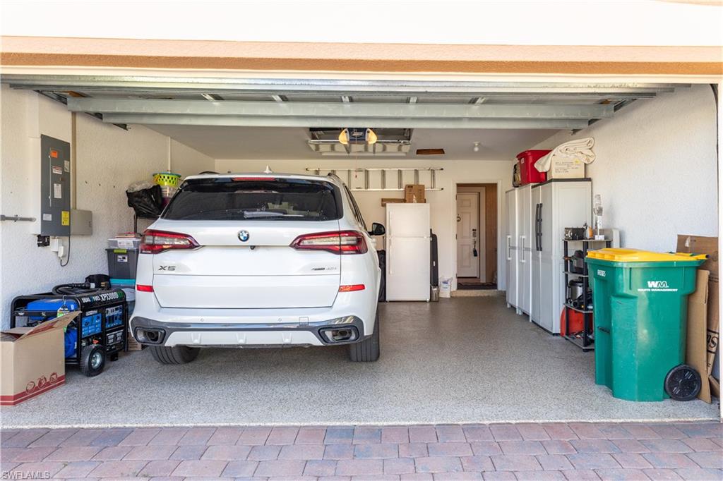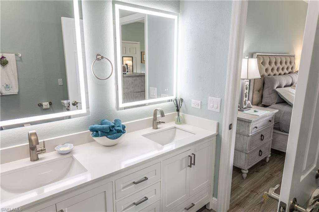 Professional interior pictures coming! Lovely lakefront villa in desirable Reflection Lakes gated community. This home offers beautiful lake views from the spacious screened lanai. Many recent upgrades throughout including AC (2022), brand new luxury vinyl tile flooring (late 2025), gas powered generator, Plantation Shutters on windows, recessed lights, upgraded fixtures, 6 inch crown and baseboard molding, master and guest bathrooms renovated in 2025, new high-quality Penntek concrete coating on garage and lanai floors (lifetime warranty), re-imagined lanai (2024), and whole-house ENVIRO water filtration system with 50-gallon hot water tank. The kitchen offers wood cabinetry, stainless steel appliances, granite counters, a breakfast nook and a pass through to the dining living space. The master bathroom is spacious and the ensuite bath features a frameless glass enclosed walk in shower, upgraded lighting and dual sinks. The additional bedrooms provide plenty of space for friends and family. A built in Murphy bed allows conversion to office or bedroom. All windows have electric hurricane shutters for optimum protection. Low fees and no CDD, Reflection Lakes provides a clubhouse that consists of a state-of-the-art fitness center with locker rooms and showers, rooms for meetings and activities, Library, billiards, ballroom, catering kitchen, outdoor heated pool with splash area, bocce ball, BBQs and pavilion. Reflection Lakes is a short distance from downtown Naples, Marco Island, shopping, and attractions.