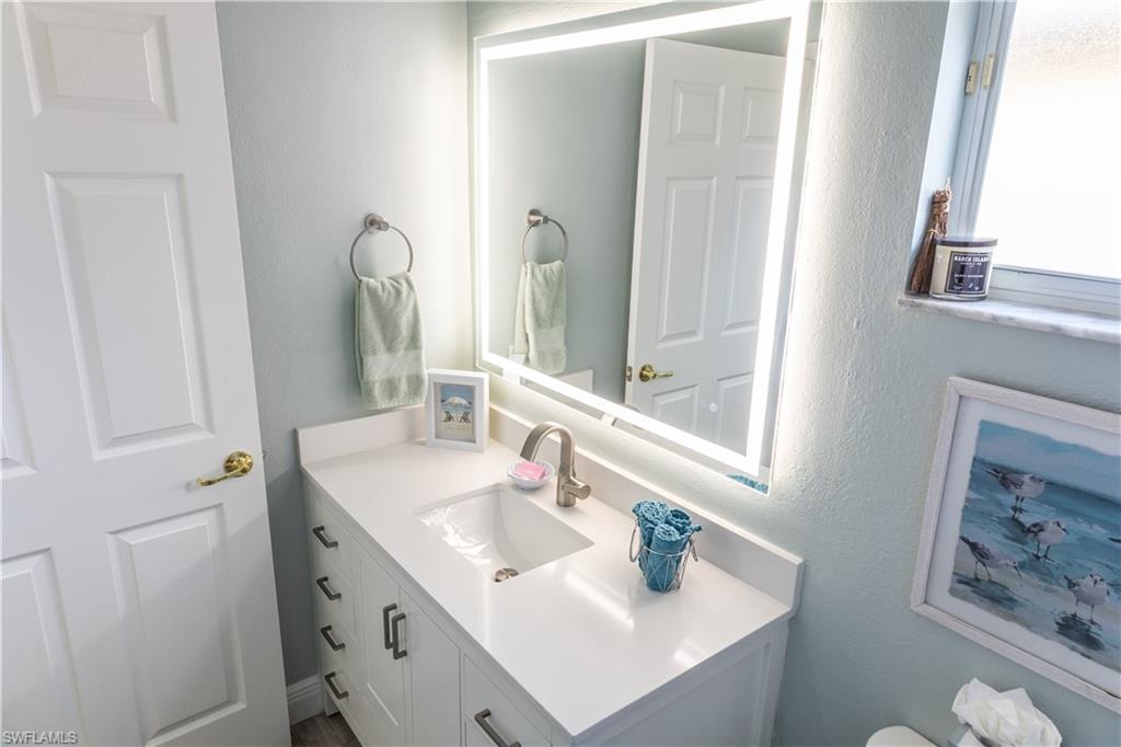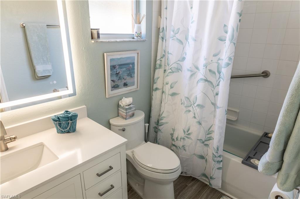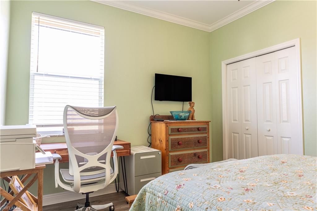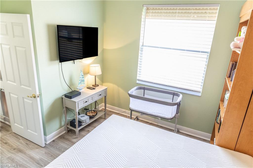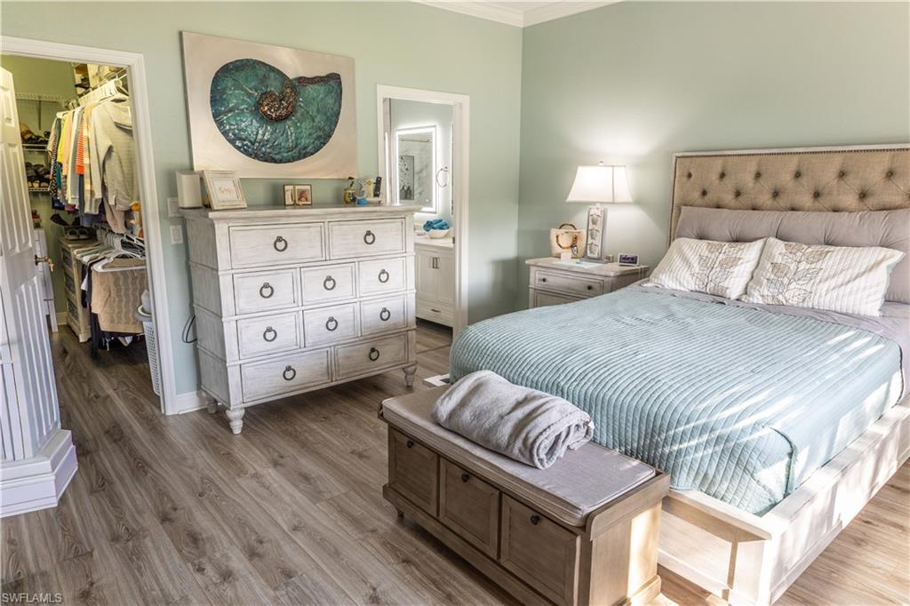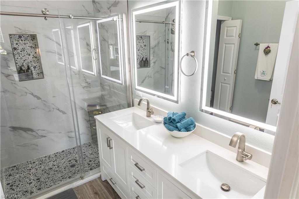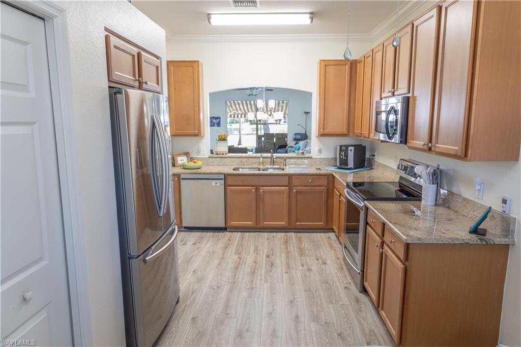 Professional interior pictures coming! Lovely lakefront villa in desirable Reflection Lakes gated community. This home offers beautiful lake views from the spacious screened lanai. Many recent upgrades throughout including AC (2022), brand new luxury vinyl tile flooring (late 2025), gas powered generator, Plantation Shutters on windows, recessed lights, upgraded fixtures, 6 inch crown and baseboard molding, master and guest bathrooms renovated in 2025, new high-quality Penntek concrete coating on garage and lanai floors (lifetime warranty), re-imagined lanai (2024), and whole-house ENVIRO water filtration system with 50-gallon hot water tank. The kitchen offers wood cabinetry, stainless steel appliances, granite counters, a breakfast nook and a pass through to the dining living space. The master bathroom is spacious and the ensuite bath features a frameless glass enclosed walk in shower, upgraded lighting and dual sinks. The additional bedrooms provide plenty of space for friends and family. A built in Murphy bed allows conversion to office or bedroom. All windows have electric hurricane shutters for optimum protection. Low fees and no CDD, Reflection Lakes provides a clubhouse that consists of a state-of-the-art fitness center with locker rooms and showers, rooms for meetings and activities, Library, billiards, ballroom, catering kitchen, outdoor heated pool with splash area, bocce ball, BBQs and pavilion. Reflection Lakes is a short distance from downtown Naples, Marco Island, shopping, and attractions.