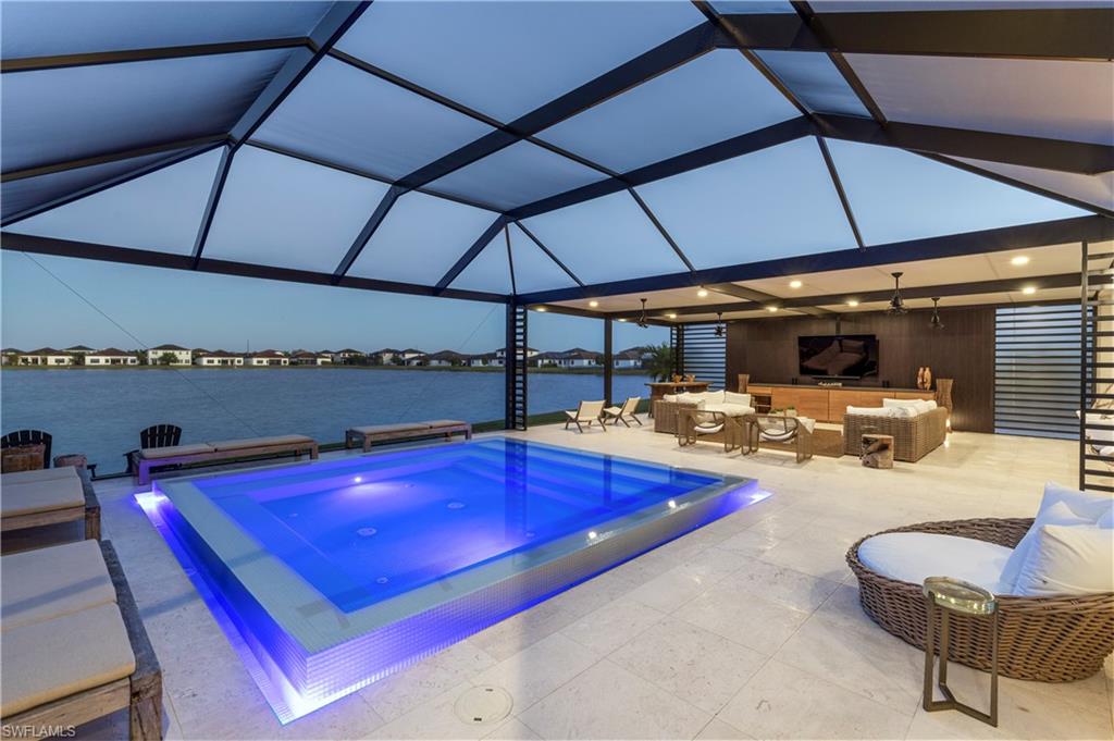 One of one, a showpiece designed for resort-style living 24/7 in one of the only cul de sac in Ave María. Offering 3, 985 sq ft under air | 5, 061 total sq ft | 1, 800 sq ft of backyard living, this 4-bedroom + loft - 3 car garage estate blends tropical elegance with modern luxury. Enter through a covered screened entry and experience seamless indoor-outdoor living with four massive custom impact glass sliding doors opening to a breathtaking 50’ x 30’ covered screened patio with travertine floors. Interior Features: Porcelain tile downstairs, premium luxury 100% waterproof vinyl floors upstairs, custom maple staircase, Chef’s kitchen with Kitchen Aid double oven, an addition secondary oven, induction cooktop & quartz backsplash from counter to ceiling. Massive 10 x 4 island for great entertainment and your gatherings. Custom pantry & laundry built-ins, Designer half bath with floor-to-ceiling statement wallpaper with resemblance of the Ave María Church wall finish. 7” gutters & whole-home, KINETICO water filtration system. Electric Car charger ready. Outdoor Oasis: Insulated covered living area + screened enclosure, Arhaus modular summer kitchen with integrated Hestan BBQ, tropical landscape with christmas palms creating total privacy & ambiance. Casa Bali is truly one of one — semi-custom built, thoughtfully designed, and unlike anything else on the market.