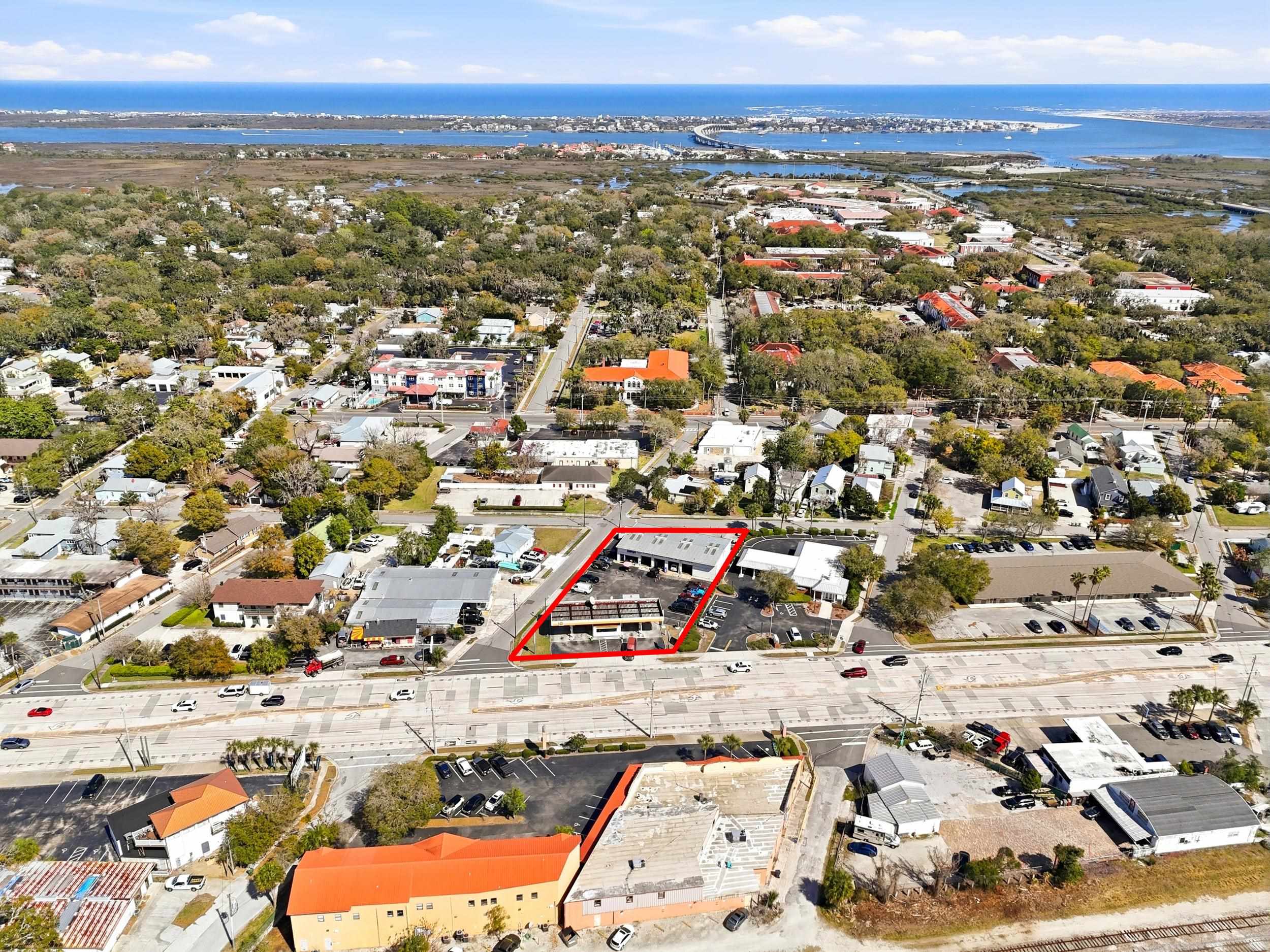 Located at 2350 N Ponce De Leon Blvd in St. Augustine, this highly visible commercial property sits along US-1 / Ponce de Leon Boulevard, one of the primary corridors leading directly into the heart of the city and its historic district. With approximately 125 feet of frontage on US-1, the property benefits from exceptional traffic counts and outstanding exposure. The corner location at Center Street provides additional frontage and visibility along a well-traveled thoroughfare, while the rear of the property extends to Grant Street, offering additional access and parking. The 0. 6-acre parcel (26, 136 sq ft) is zoned CM-2, allowing for a variety of commercial uses. The property currently houses First Coast Tire and BP Inc. and includes a well-established auto service shop built in 1986, totaling 6, 716 square feet. The shop features eight drive-in service bays (4 w/ full lifts & 1 w/ half rack) and approximately 1, 012 square feet of air-conditioned space, which includes two office areas, a reception desk, and a customer seating area. The building includes four restrooms—two for customers and two for employees, including one with a full shower. While the auto shop is primarily a one-story frame structure, two second-floor storage areas are located above the office portion on one end of the building as well as on the opposite end of the building for added space. The service facility can be accessed through the gas station area or directly from the Center Street entrance, which leads to ample customer parking and the main entrance to the shop. Positioned at the front of the property is the gas station and mini mart, which were constructed in 2002. The 780-square-foot convenience store includes Fuel pumps on both sides of the mini mart, allowing efficient traffic flow and easy fueling access from the busy US-1 frontage. The site was upgraded with new underground fuel tanks installed in 2008, featuring a dual-compartment fuel tank system. Additional system details are available in the attached permits. The rear access from Grant Street provides added operational flexibility and additional parking, further enhancing the functionality of the property. The sale includes the auto repair business, business assets, real property, existing lease of the convenience store which is month to month, offering a turnkey opportunity in one of St. Augustine’s busiest commercial corridors. Toolboxes, personal items, and computers are excluded from the sale. With its prime location, strong visibility, and established operations, this property represents a rare opportunity for investors or operators seeking a high-profile commercial presence along US-1. Whether you are looking for turnkey solutions or the perfect location with frontage for redevelopment, the possibilities here are endless.
