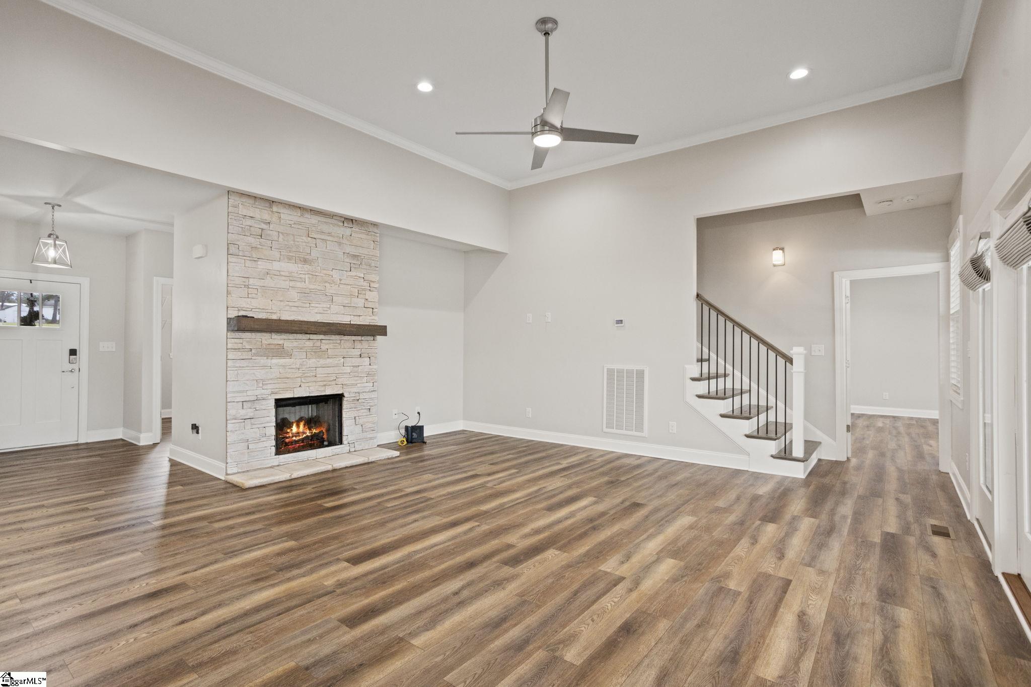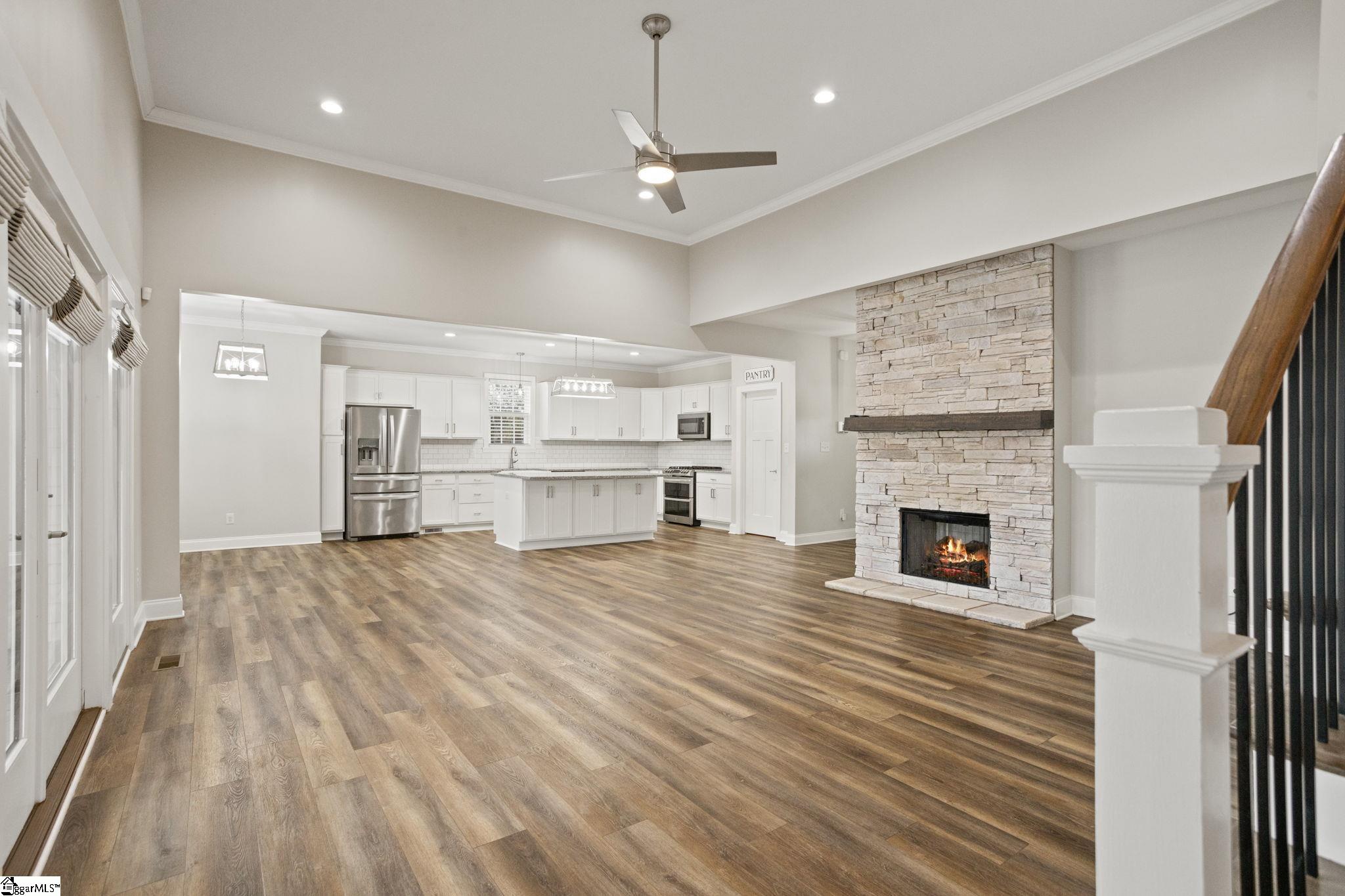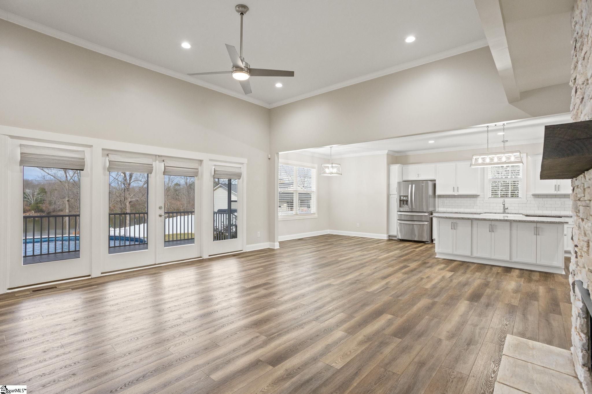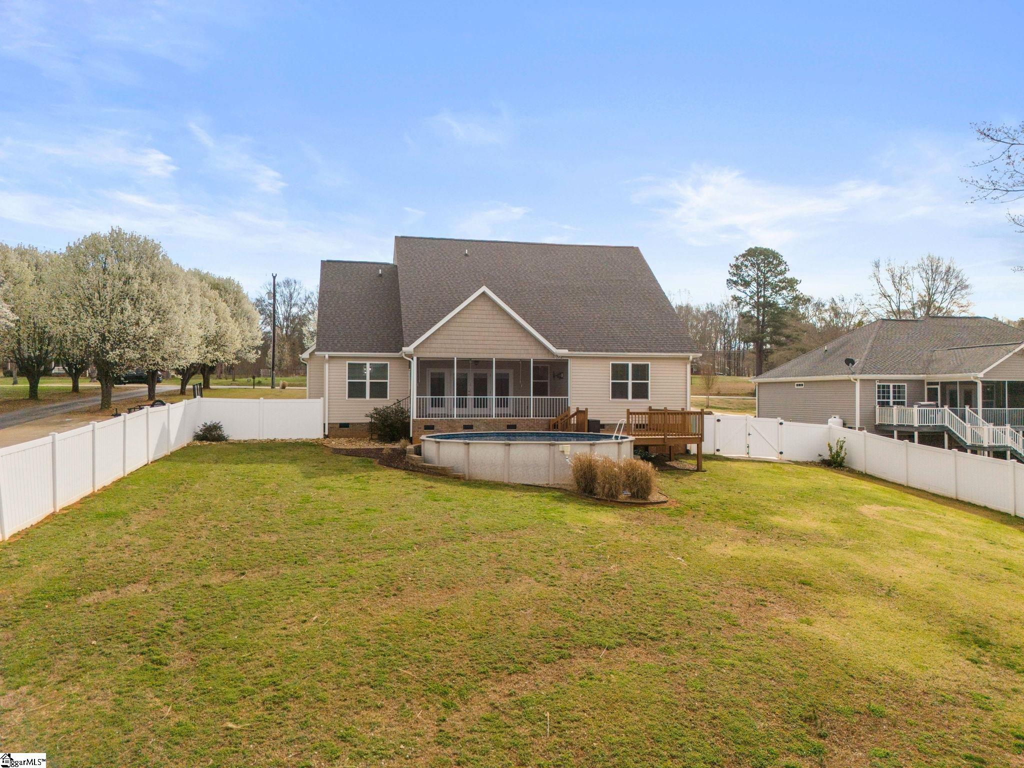 Waterfront living on Lake Blalock! Situated on . 84 acres, this beautiful 5-year-old home offers just under 3, 000 square feet of thoughtfully designed living space with 4 bedrooms, 2. 5 baths, and a spacious rec room. A charming Craftsman-style exterior welcomes you into this custom-built home where the entry foyer opens into a bright eat-in kitchen featuring abundant cabinetry, granite countertops, a walk-in pantry, stainless steel appliances (including the refrigerator), and a generous dining area. The kitchen flows seamlessly into the greatroom highlighted by a gas log fireplace and views of the screened porch, creating a perfect space for everyday living and entertaining. The mudroom/laundry room offers exceptional functionality with a utility sink, ample storage, and space for a convenient drop zone, while the oversized garage provides additional room for storage or workspace. The main-level owner’s suite is a private retreat featuring a spa-like bath with double vanities, garden tub, tile shower, and private water closet. Upstairs you will find three additional bedrooms plus a versatile rec room ideal for a media room, playroom, or home office. Enjoy lake life at its finest with your private dock on Lake Blalock, perfect for boating, fishing, or relaxing by the water, and entertain with ease from the screened porch or the above-ground pool. Additional features include an outbuilding for extra storage, porch TV, and numerous upgrades that remain with the home.