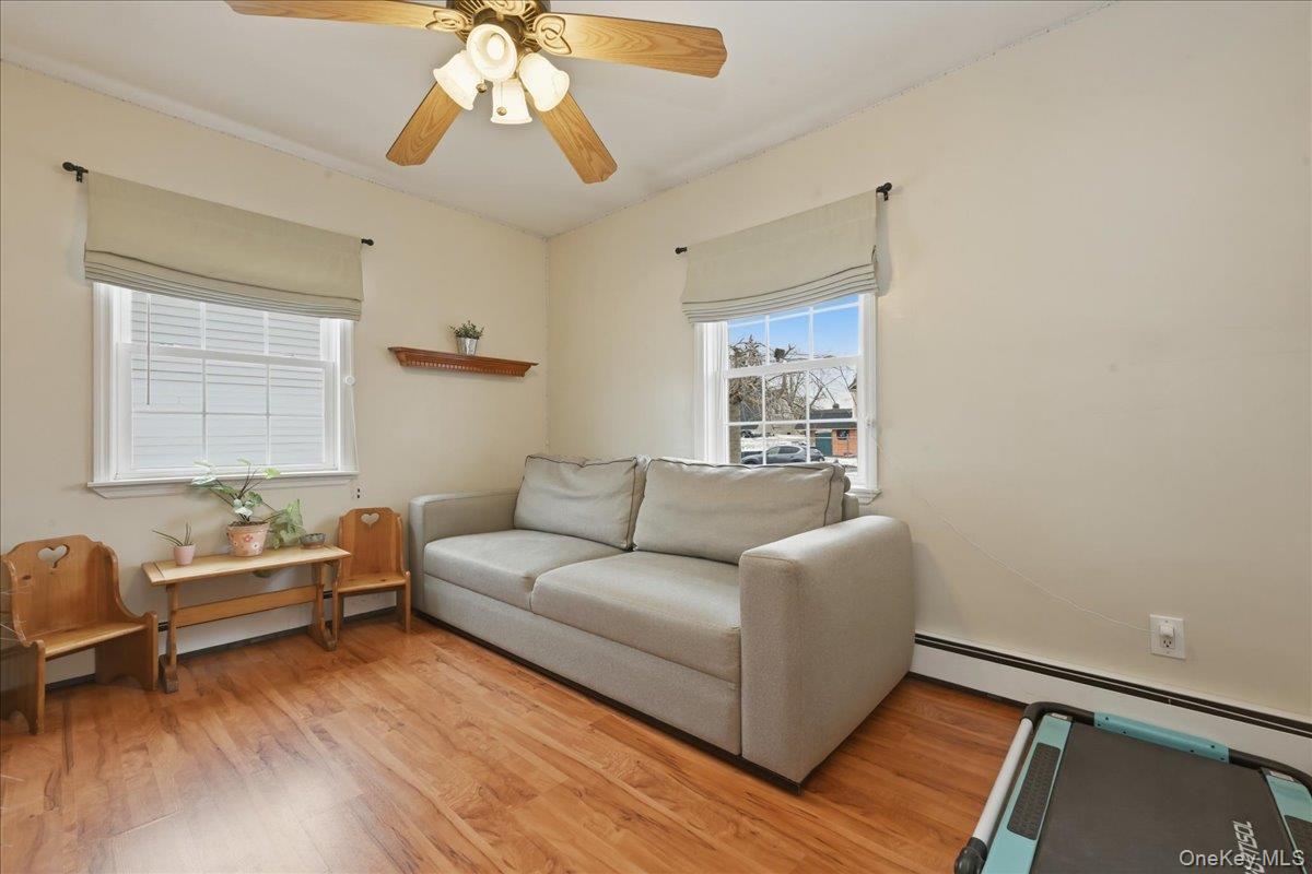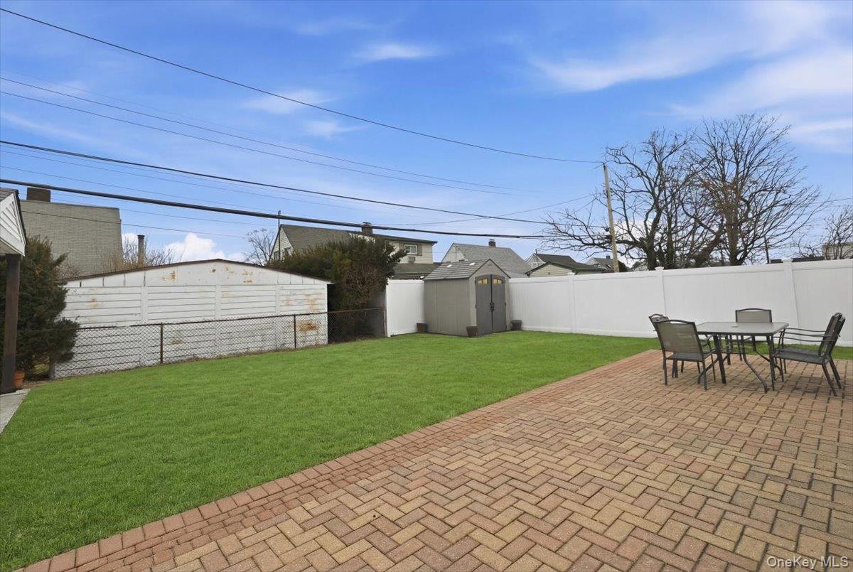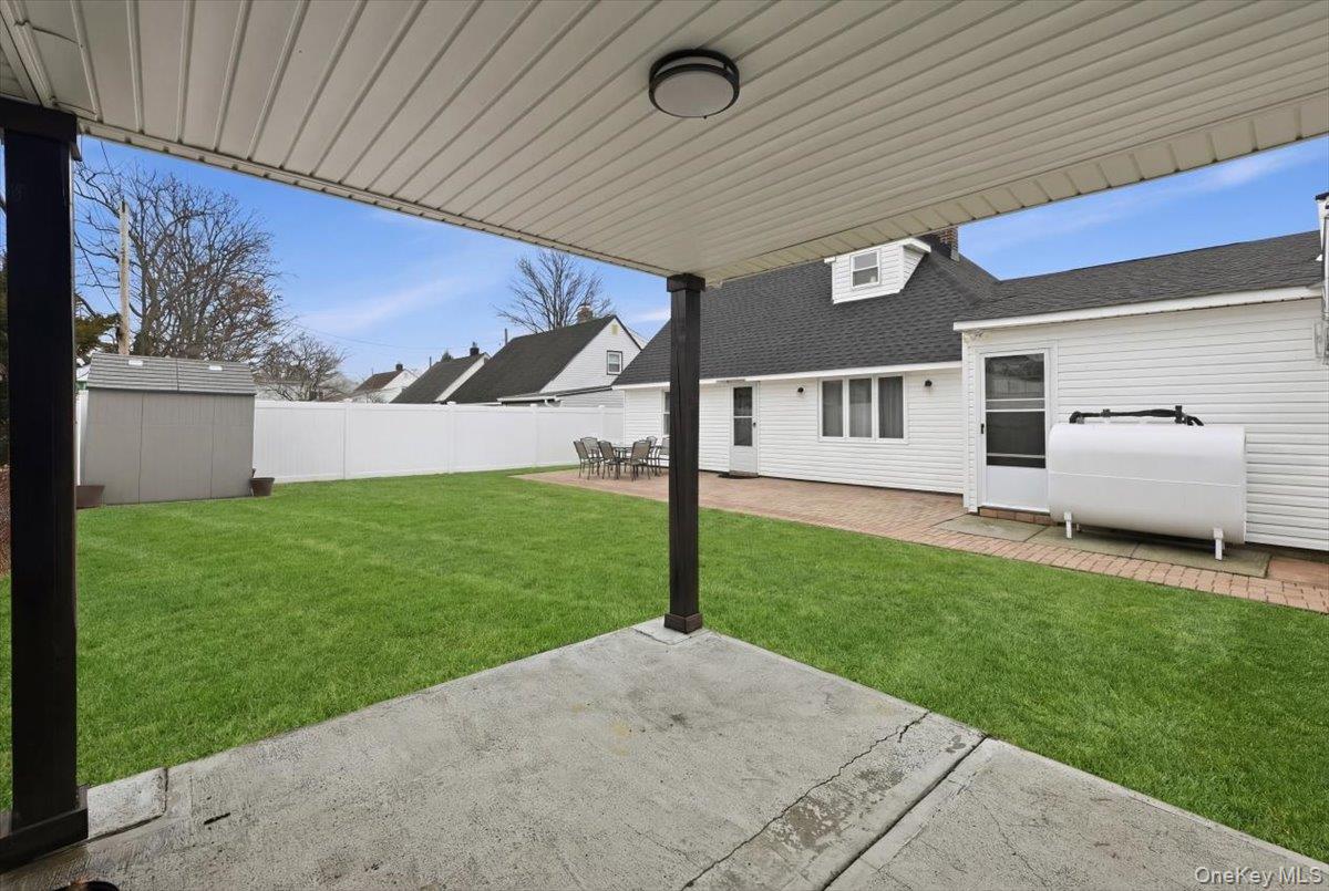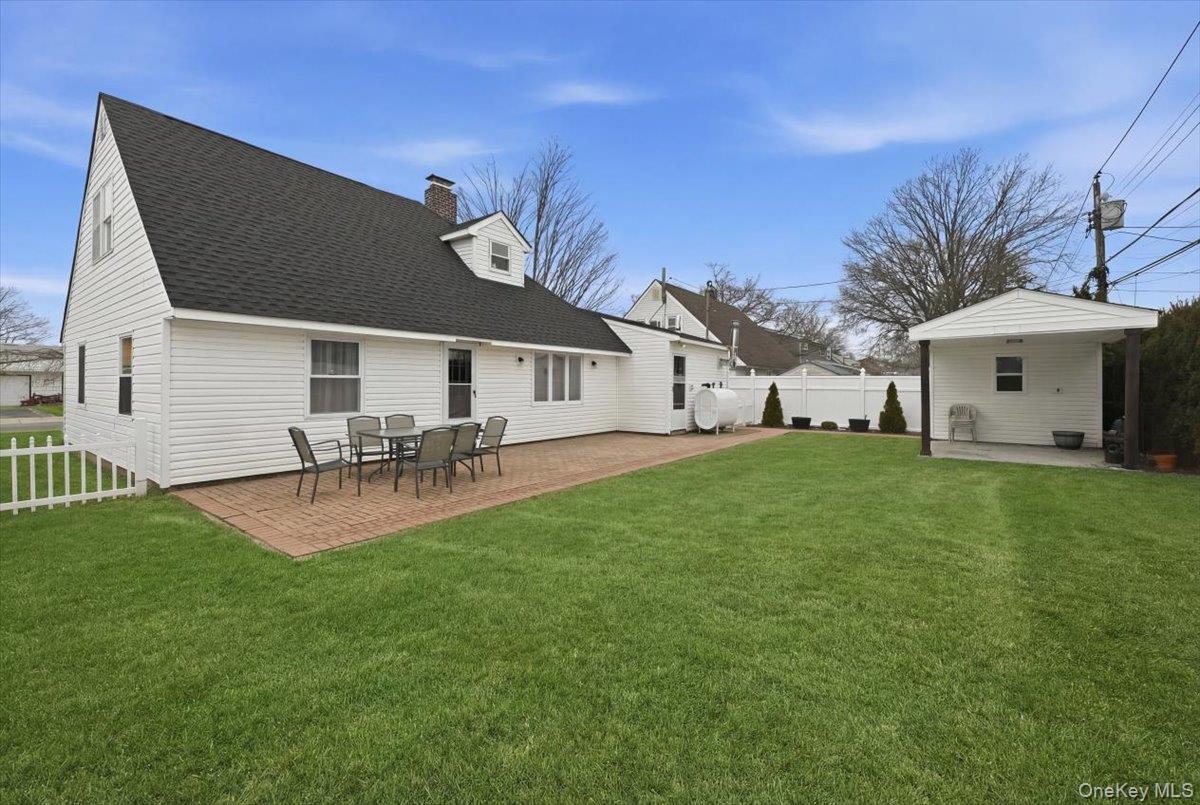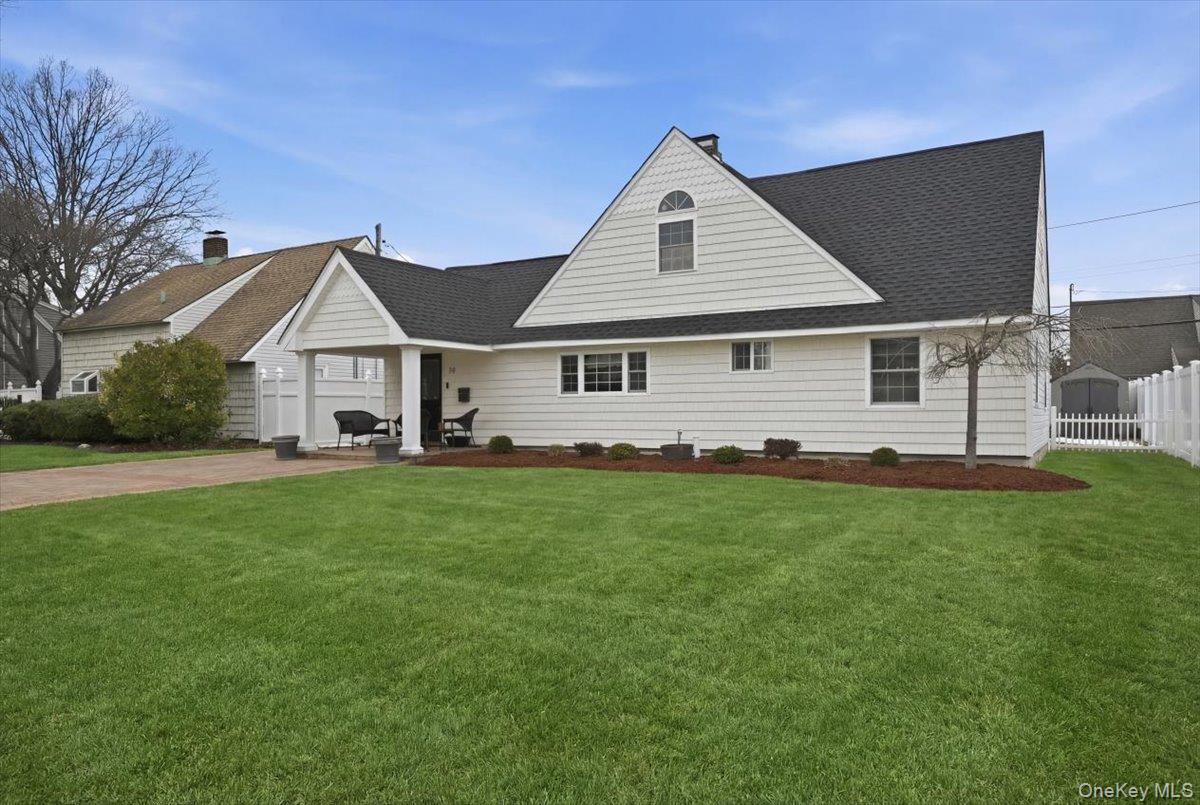 This bright and beautifully updated Cape Cod makes an immediate impression from the moment you arrive. Soft yellow siding paired with a striking black roof creates standout curb appeal, while the paver driveway and welcoming entrance path set the tone for what’s inside. Step into a gracious entry foyer that opens to a grand dining room, perfect for everyday living or entertaining. To the right, the eat-in kitchen features maple wood cabinetry, stainless steel appliances, and double pantry storage, offering both warmth and exceptional functionality. A large open passage from the kitchen leads into the sun-filled living room, highlighted by an inviting brick-finished fireplace and direct access to the beautifully manicured backyard—ideal for indoor-outdoor living. This level also provides access to the upper floor, where you’ll find two generously sized bedrooms and a full bathroom. A hallway off the kitchen leads to a fully updated bathroom, the primary bedroom, and an additional bedroom, offering a flexible and well-thought-out layout. Unlike the typical Cape Cod, the utility room has been relocated to the rear mudroom, freeing up valuable living space and enhancing the home’s partially open floor plan and larger-than-expected rooms—a rare and desirable feature. Located in the Island Trees School District, this home is conveniently close to restaurants, shopping, and everyday amenities. Taxes under $10, 000 add even more appeal.