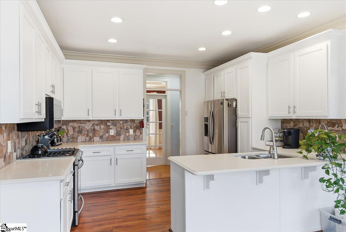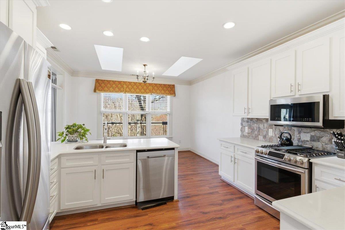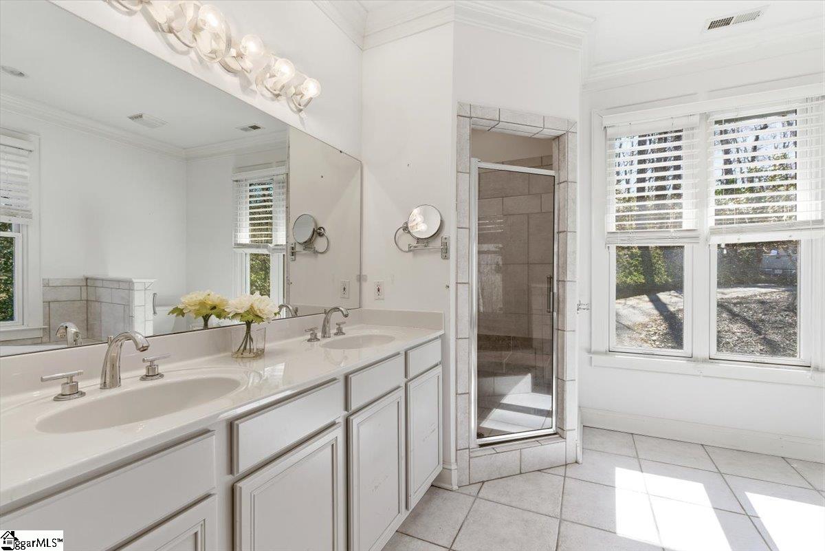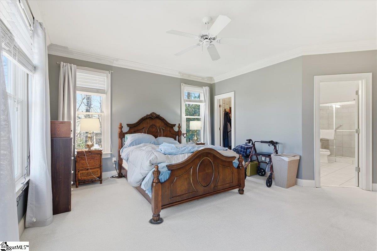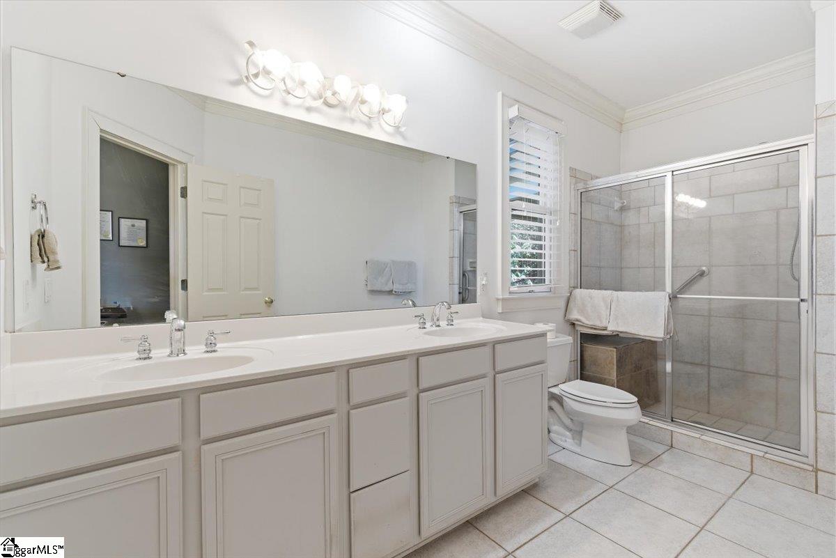 Located in the gated community of The Cliffs at Glassy, this mountain home at 3 Rustic Court provides scenic surroundings and spacious living on approximately 0. 80 acres atop Glassy Mountain. The setting places you within walking distance of the clubhouse, mountaintop golf course, church, and community amenities while maintaining privacy and natural beauty. The main level features a large living room with vaulted ceilings and a dramatic floor-to-ceiling stacked stone fireplace, creating a warm focal point for gathering. The eat-in kitchen includes white cabinetry and quartz countertops, and the formal dining room features tray ceilings. Two primary suites are located on the main level, each with private baths, including one with a jetted tub. A walk-in laundry room with sink adds convenience. The finished walk-out basement provides additional flexibility with a spacious living and dining area, full kitchen, second laundry, two large bedrooms, and two full baths. Separate exterior access makes this level well suited for guest quarters or multi-generational living. Outdoor living spaces include a front porch and an expansive double-decker deck overlooking the surrounding mountains. Additional features include two fireplaces, a two-car attached garage, and approximately 3, 977 square feet of living space built in 1999. Community amenities include golf, clubhouse, fitness center, walking trails, pool, and gated security, creating a distinctive mountain lifestyle just a short drive from downtown Landrum and the Upstate region.
