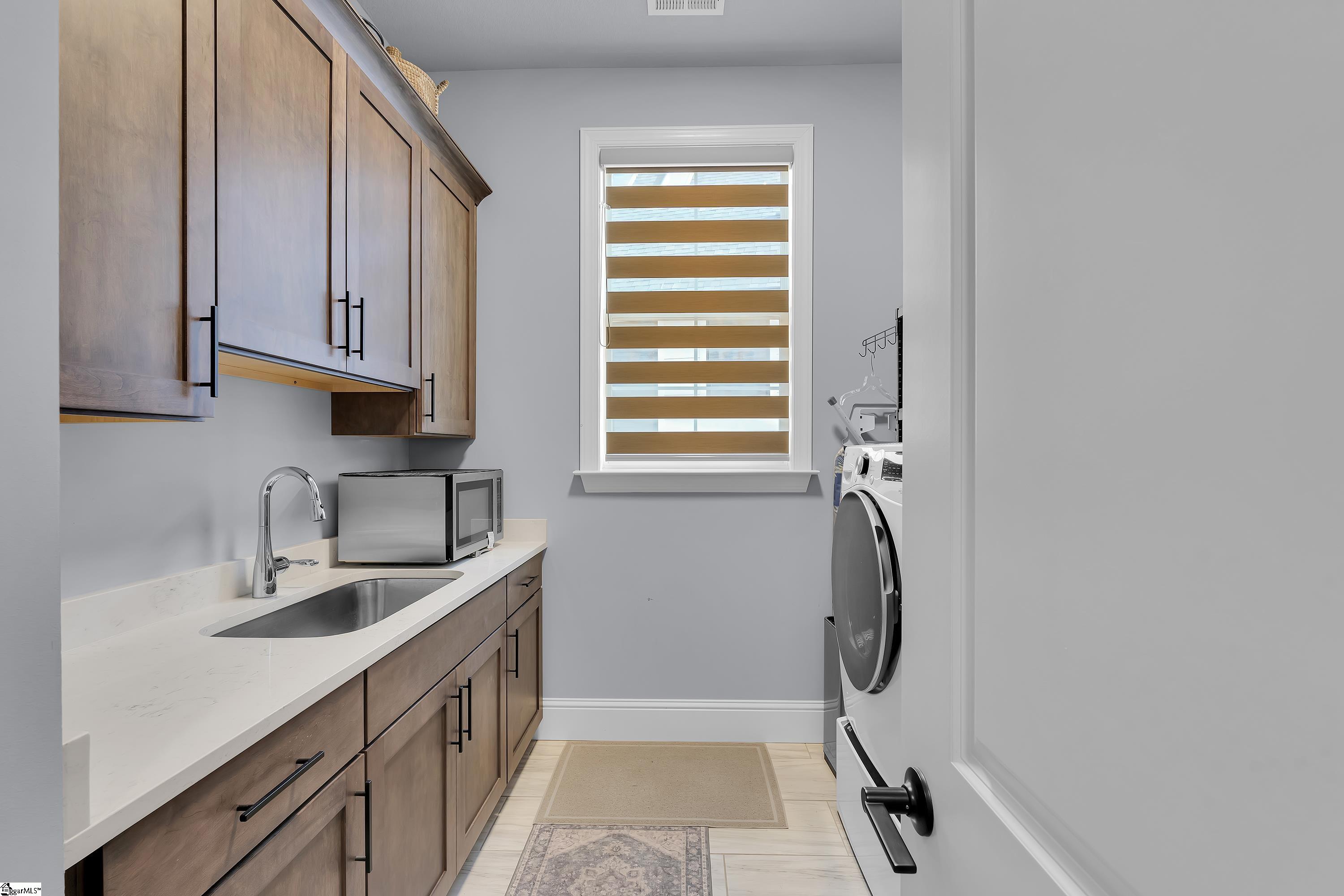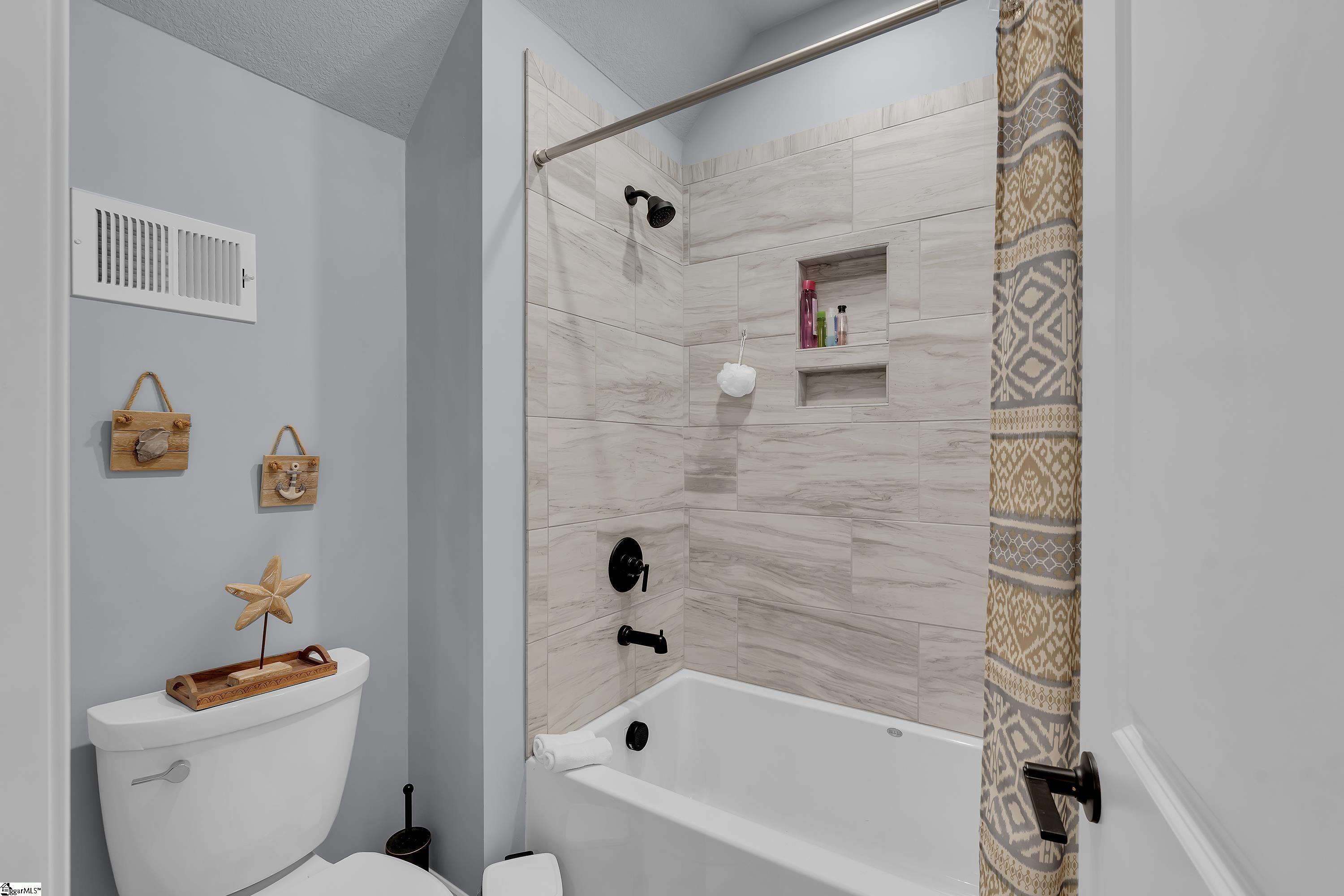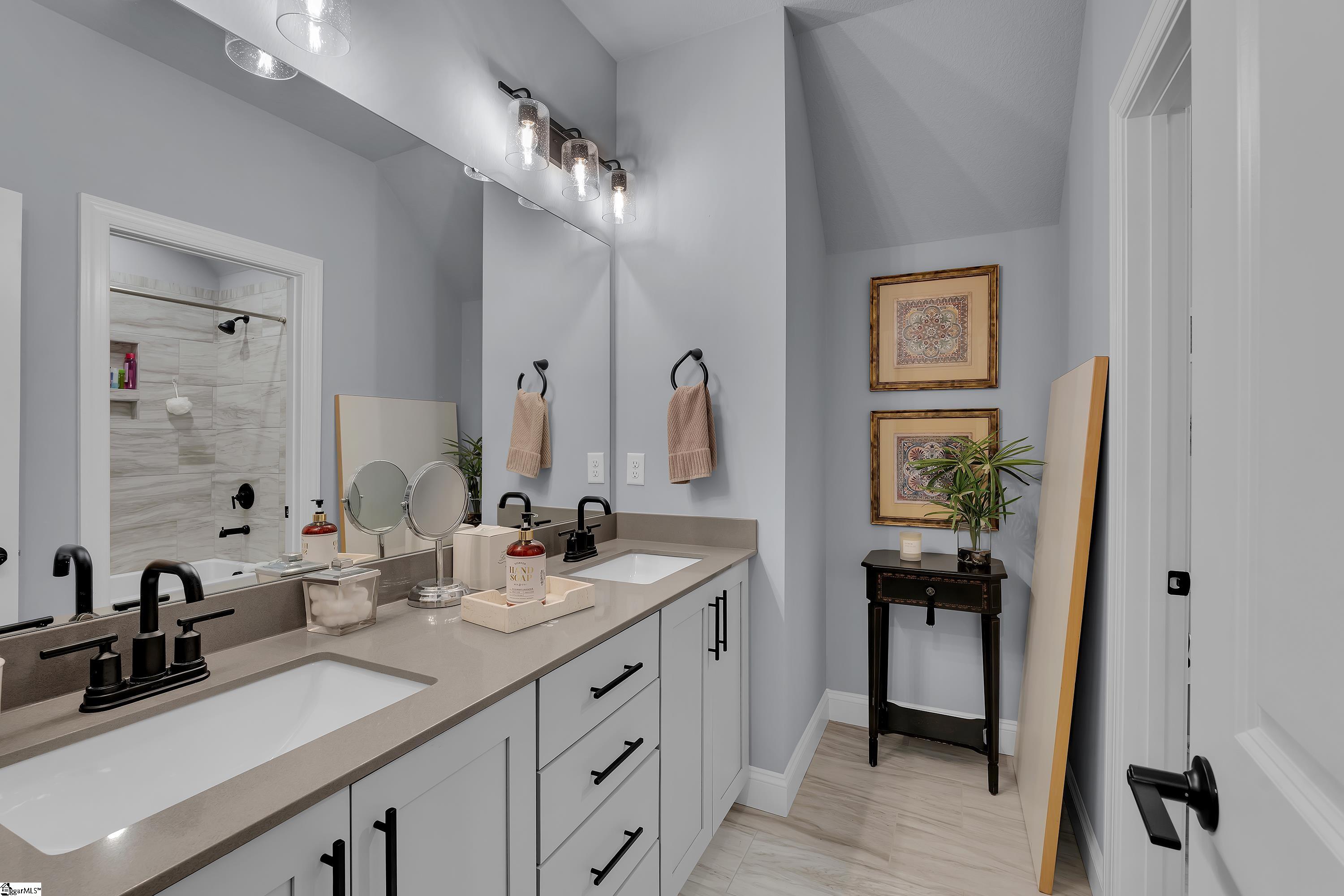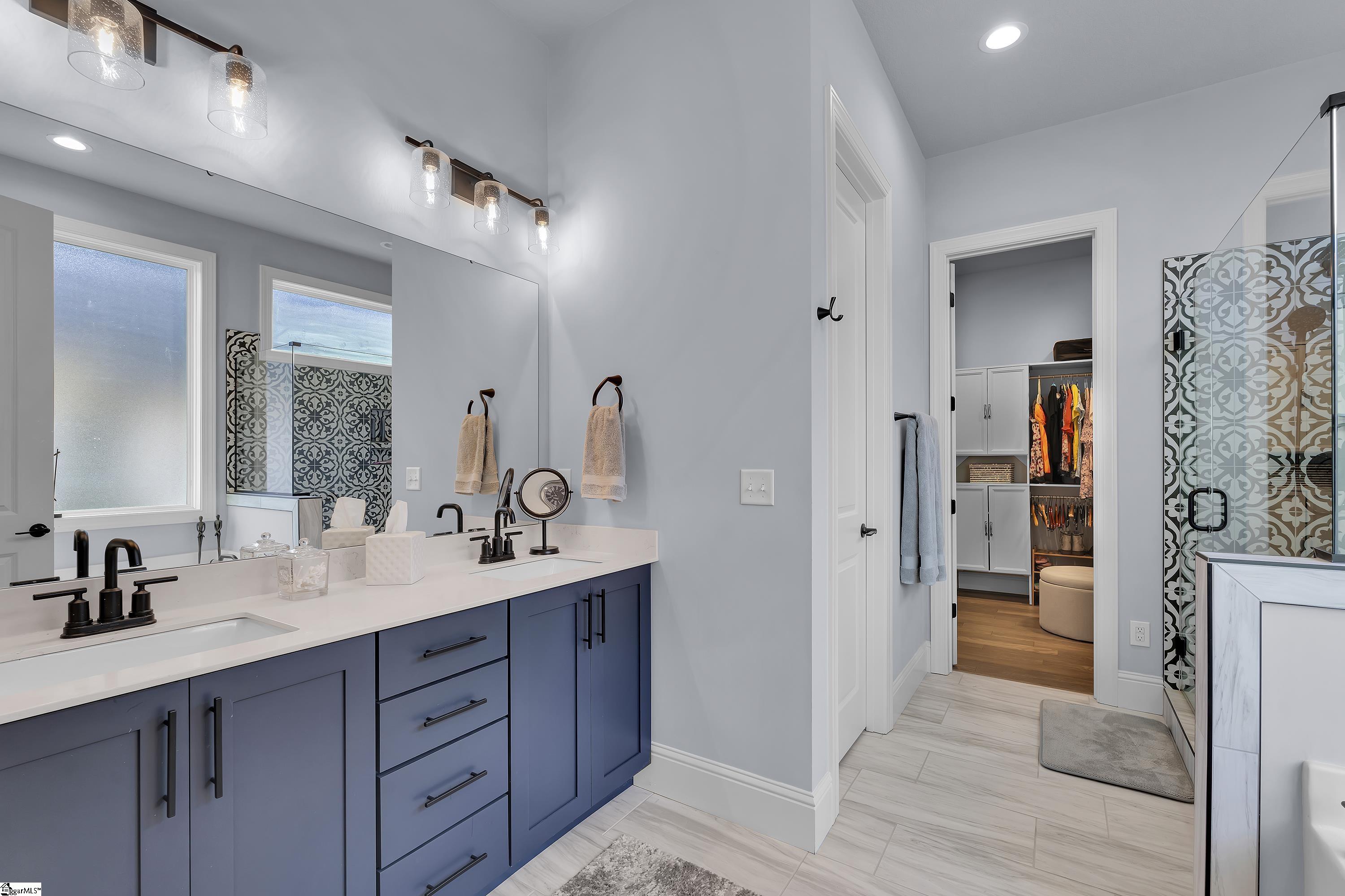 This beautifully appointed former model home showcases exceptional upgrades and a thoughtfully designed open floor plan. Featuring 4 bedrooms and 2. 5 baths, the layout includes a primary suite and guest bedroom conveniently located on the main level, with two additional bedrooms and a spacious loft upstairs. The inviting family room features a cozy fireplace with gas logs that opens through to the charming screened porch, creating the perfect indoor-outdoor living experience. Enjoy relaxing or entertaining on the screen porch with tongue-and-groove ceiling overlooking the fenced backyard and patio. The chef’s kitchen is truly a dream, complete with quartz countertops, a large island, stainless appliances, a walk-in pantry, and a premium Miele electric oven with dual steam capability. A reverse osmosis water system is conveniently installed under the kitchen sink. The luxurious primary suite offers a custom walk-in closet and spa-like bath featuring a soaking tub, large separate shower, and double sinks. Additional highlights include: Hardwood floors throughout the main level, laundry room with abundant cabinetry and utility sink, custom shades throughout the home - many with remote control, two-car garage with workstation and ceiling storage rack, and LeafFilter gutter protection system. Perfectly located in the desirable Five Forks area, this home is just minutes from shopping, dining, and everyday conveniences.
