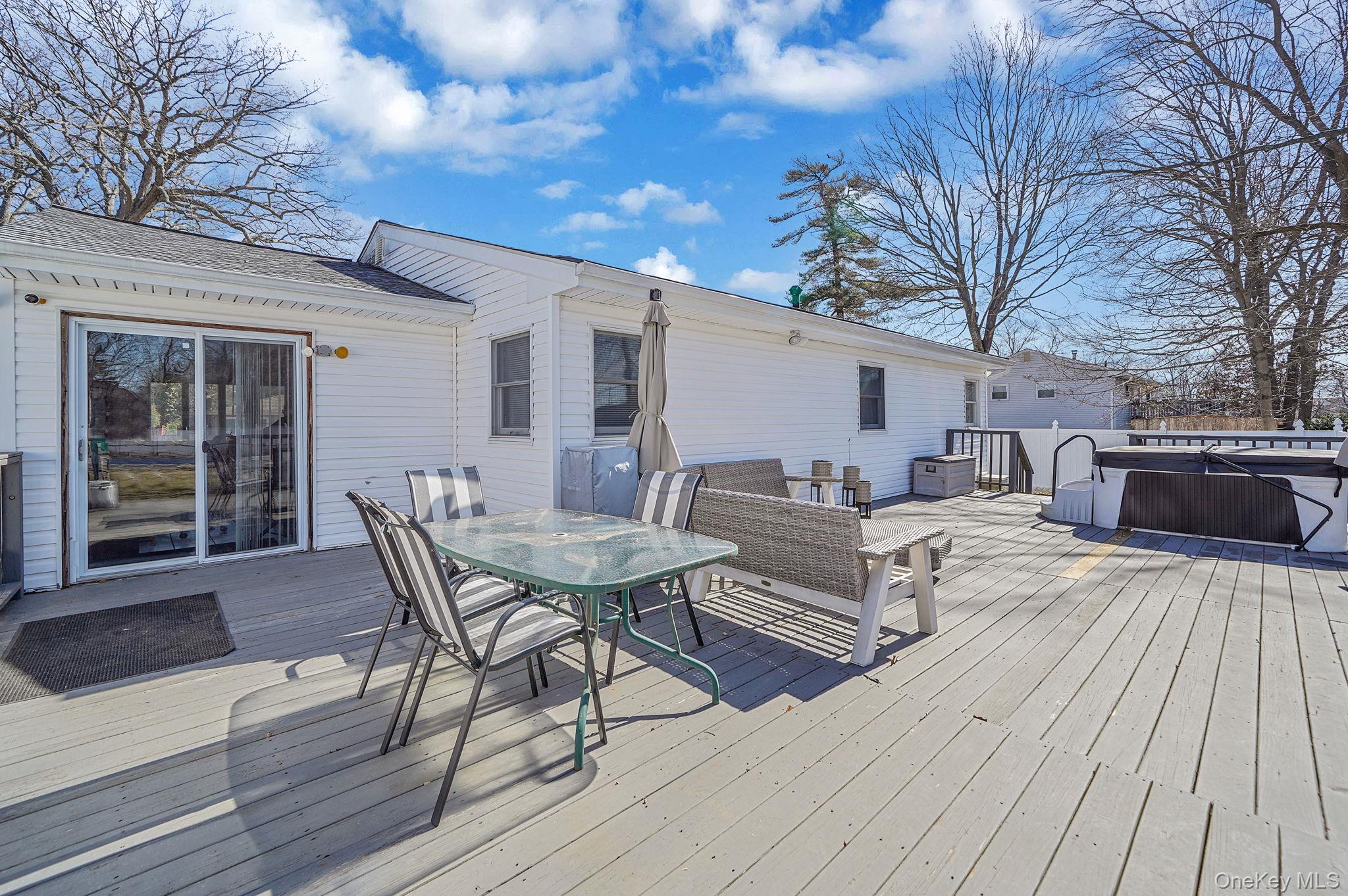 Welcome to 8 Sunset Avenue, located in the highly sought-after Half Hollow Hills School District! Situated on a beautifully maintained . 40-acre property, this home offers the ease of true one-level living paired with a resort-style outdoor retreat designed for unforgettable summers. Inside, you'll find an open layout with a formal dining room, formal living room, a large den with sliders leading to your backyard oasis, 2/3 bedrooms and 2 full baths! The full basement provides incredible additional space for recreation, storage, living area, or future customization. Step outside and get ready to fall in love with your private backyard paradise! The expansive yard features a stunning 20x40 in-ground heated pool, a hot tub, an outdoor bar, a large deck, and 6-zone IGS—perfect for hosting and summer celebrations. This home has been meticulously maintained with extensive recent upgrades, allowing the next owner to truly move right in, unpack, and enjoy! Roof (2021), PVC Fencing (2022), Pool Liner (2023), Pool Cover, Hot Tub & Basement Updates (2024), Washer, Stove, Refrigerator, Hot Water Heater & Generator (2025). With its unbeatable location, thoughtful updates, and backyard built for making memories, 8 Sunset Ave is the perfect place to enjoy your best Long Island summer yet in one of LI's top rated school districts!