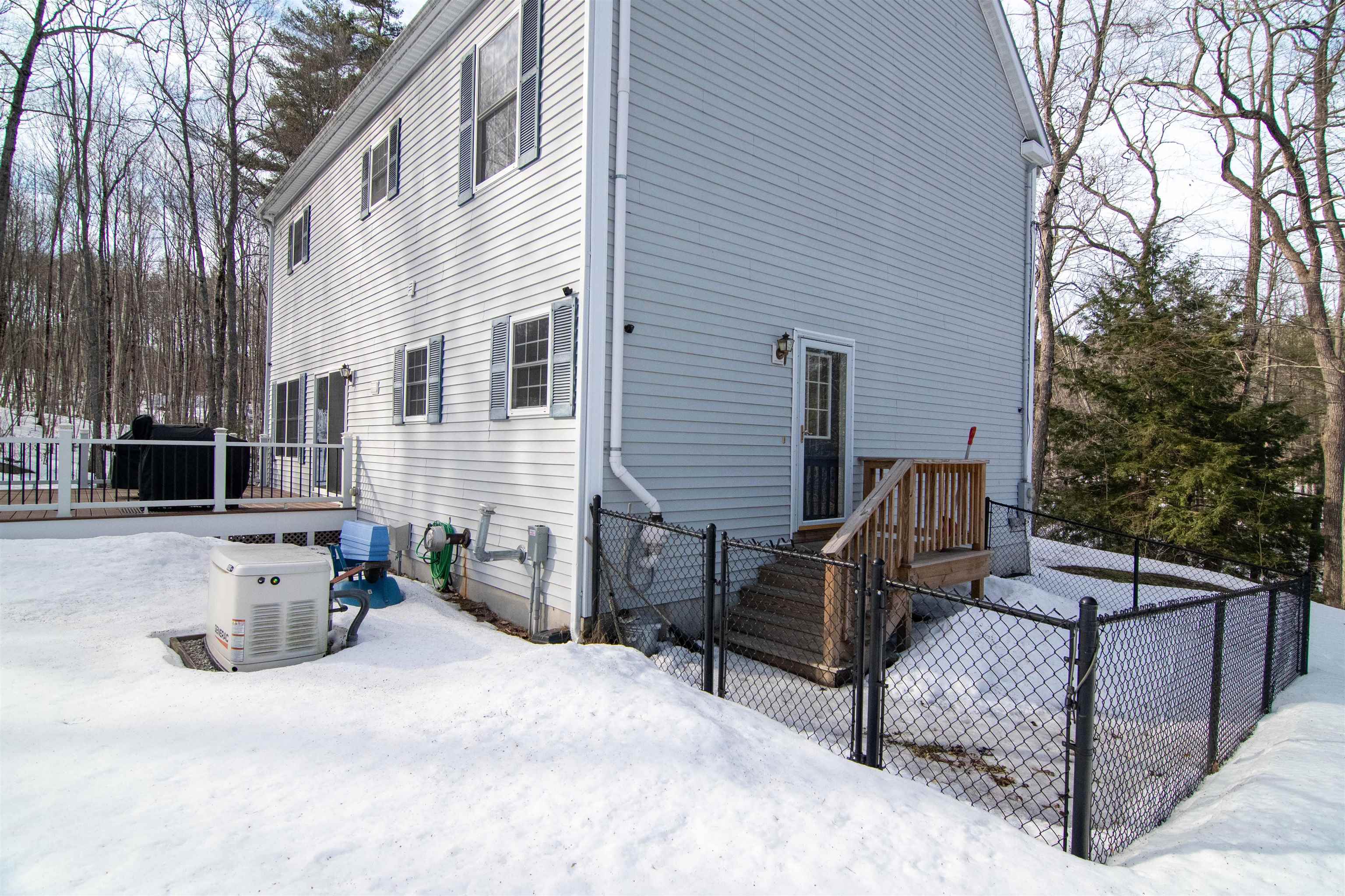 This well-maintained colonial home sits on a private, quiet wooded lot, on a dead-end street. This move-in ready home features plenty of natural light and direct access to every room. The kitchen features ample counter and cabinet space, stainless appliances, and a gas stove perfect for meal preparation and entertainment. Beautiful hardwood floors complete the dining, kitchen, and family room areas. An attractive foyer and gorgeous hardwood staircase leading to second level bedrooms & bathrooms. A large walk-in closet in the primary bedroom provides plenty of storage along with the fabulous primary bathroom with a glass shower and soaking tub provides relaxation and serenity. Unwind on your spacious outdoor deck overlooking your wooded backyard during the spring, summer and fall seasons. The outdoor surroundings include beautiful hardscape, an updated maintenance free deck, fenced in dog area, and whole house generator. A well designed and perfectly located shed is ideal for seasonal storage of items. This home is conveniently located to local Onway and Pawtuckaway Lakes and the Rockingham Trails. Easy access to Manchester, Seacoast, and Boston areas.