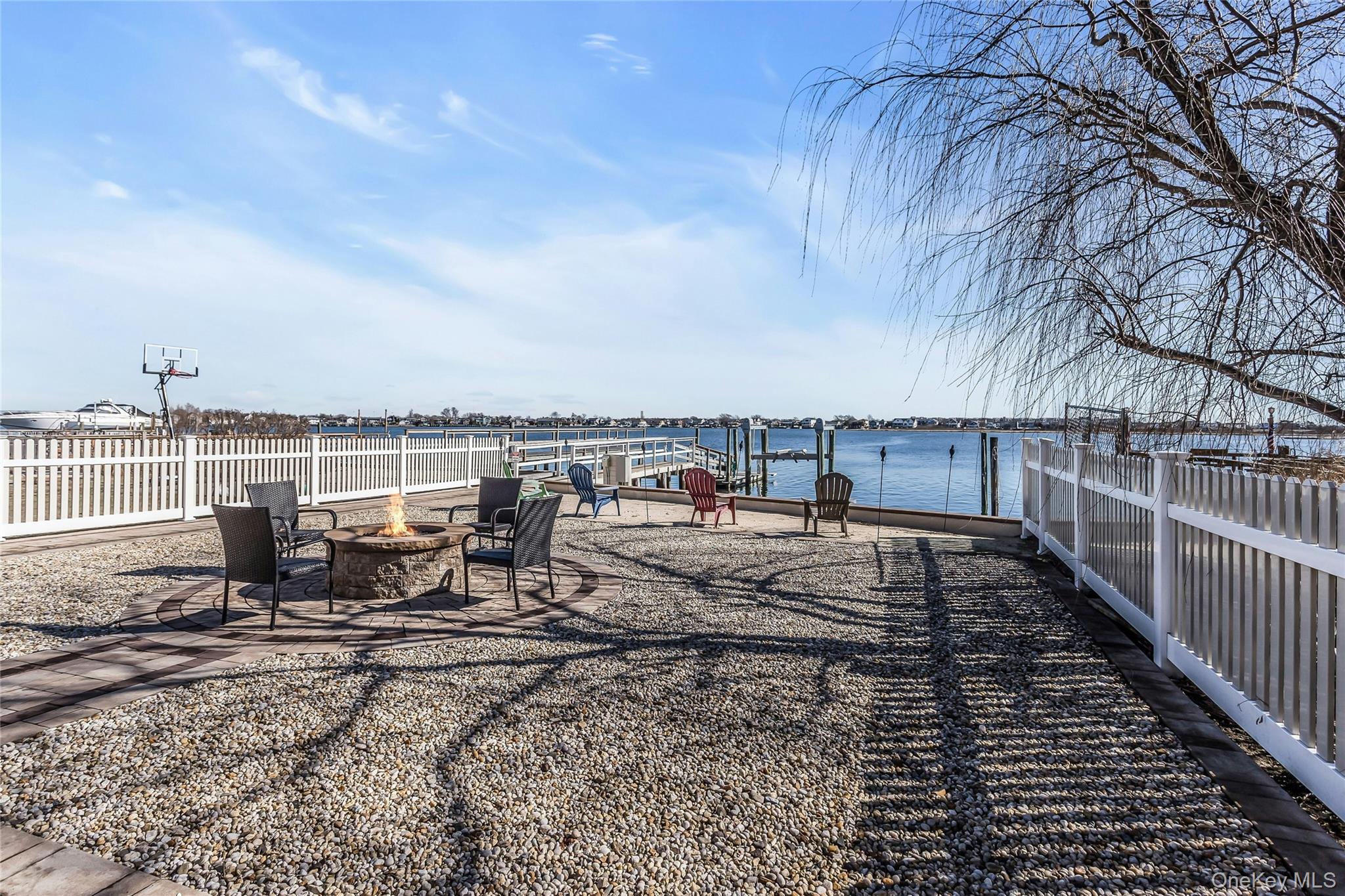 Panoramic Million Dollar Views…Located in the Bay Colony Section of Baldwin Harbor. This Ranch Features Open Concept Waterfront Living! The house includes - living room w/wood burning fireplace, dining room, eat-in-kitchen with granite counters and gas cooking. Also included is a Primary Bedroom with water views - full bath & walk in closet. 2 additional bedrooms, full bath & den. Also access to walk up attic which is storage galore and the garage. Step outside to enjoy the maintenance-free beautiful outdoor space including a Nicolock Driveway, Walkways and Gas Firepit! Boating enthusiasts will love the private boat dock with boat lift. Other features include – Radiant heated living room & kitchen floors, central air, Navien heating system, 200 amp electric. Direct gas line to barbecue, firepit & patio table!! Whether you’re enjoying peaceful days by the water or entertaining guests with the stunning backdrop of the bay, this exceptional property offers the perfect blend of relaxation and lifestyle. A true must see!!