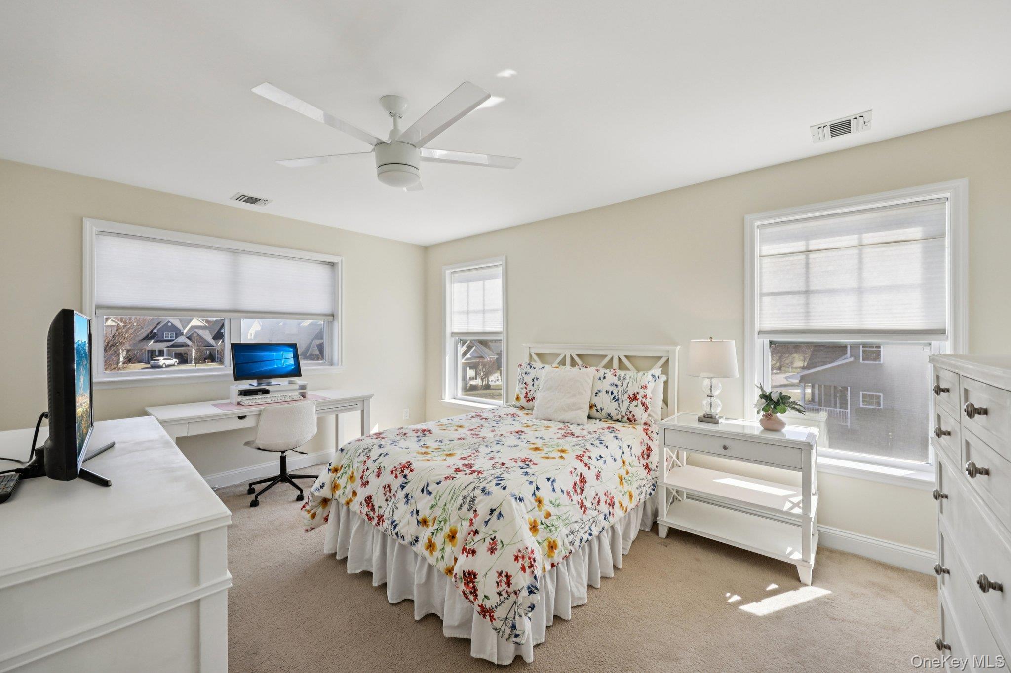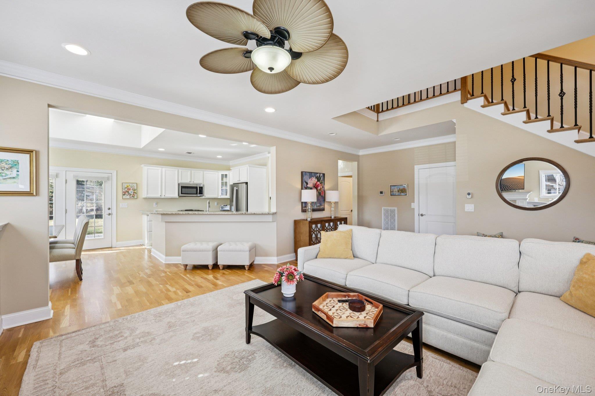 Welcome to this rare 3-bedroom, 3 full bathroom Aspen Unit in Stoneleigh Woods , a beautiful two-story Immaculate condo featuring an open and inviting floor plan with soaring cathedral ceilings and abundant natural light. As a desirable End unit, this home offers added privacy along with extra windows that fill the space with light. The spacious living room with a cozy gas fireplace also features custom built-in shelving, perfect for displaying decor, books, or treasures. The open-concept kitchen and dining area provide ample cabinetry and plenty of space for gatherings. The first floor offers two bedrooms, including the primary suite with a private full bathroom and an additional bedroom or office, along with first-floor laundry, providing flexibility for guests or multi-generational living. Upstairs, you’ll find another bedroom with its own full bathroom and generous storage throughout. Enjoy outdoor living with a welcoming front porch and private back patio, ideal for morning coffee or evening relaxation. Additional highlights include a one-car attached garage and ample guest parking. Located in a desirable Gated 55+ community residents enjoy fantastic amenities including a clubhouse and pool, offering the perfect blend of comfort, convenience, and an active lifestyle.