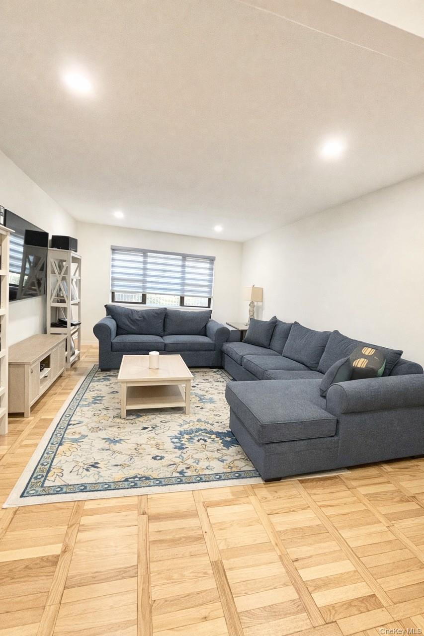 Move right into this beautifully renovated first-floor 2-bedroom, 2-bath co-op located in the desirable Gardentown community in Hewlett within School District #14. This spacious unit offers convenient first-floor access, ideal for easy living and wheelchair accessibility. The apartment features a large living room and formal dining room with hardwood floors and direct access to an oversized private terrace overlooking Hewlett Bay Park - perfect for relaxing or entertaining. The updated kitchen includes quartz countertops and stainless steel appliances. The primary bedroom offers a walk-in closet and an updated en-suite full bath, while the second bedroom features built-ins and easy access to the second updated full bathroom. Additional highlights include central air conditioning, recessed lighting, abundant closet space, and a private washer and dryer in the unit. Gardentown is set on beautifully landscaped grounds with beautiful courtyards and seating areas throughout the property. Monthly maintenance fee of $2580 includes heat, water, and taxes as well as maintenance of common areas. Two garage parking spaces are available for $50 per month each, and additional free parking is available in the public lot. Cats permitted. Conveniently located just one block from the LIRR and close to shopping, restaurants, buses, and houses of worship.