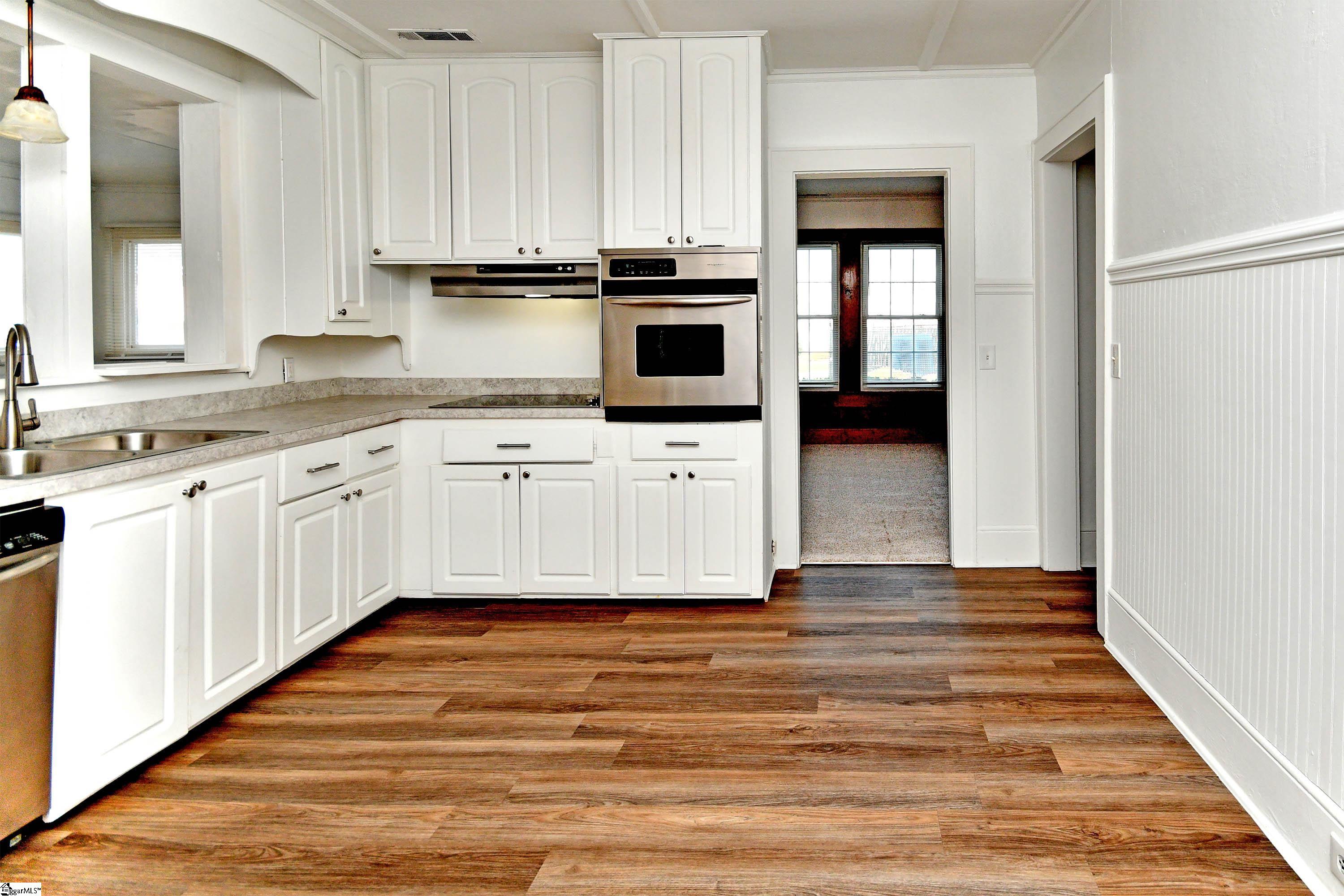 Charming renovated farmhouse full of character! This 3 bedroom, 2 bath home offers wonderful space and warmth throughout. Recent updates include new carpet, luxury vinyl flooring, and a newer roof and gutters. The den and family room feature beautiful knotty pine walls and a cozy fireplace (sold as is), creating the perfect place to relax. The large eat-in kitchen offers an abundance of cabinet space along with a walk-in pantry complete with shelving and vegetable bins. All appliances convey. A spacious walk-in laundry room filled with natural light includes an adjoining office or mudroom area for added convenience. All bedrooms are generously sized, with a Jack and Jill bath between two bedrooms, while the primary bedroom features two closets. Step out onto the back deck and enjoy the quiet, private fenced area—perfect for relaxing or entertaining. Excellent location that is very convenient to shopping, schools, and medical facilities, with Pope Field Park and J. B. Owens Park just minutes away.